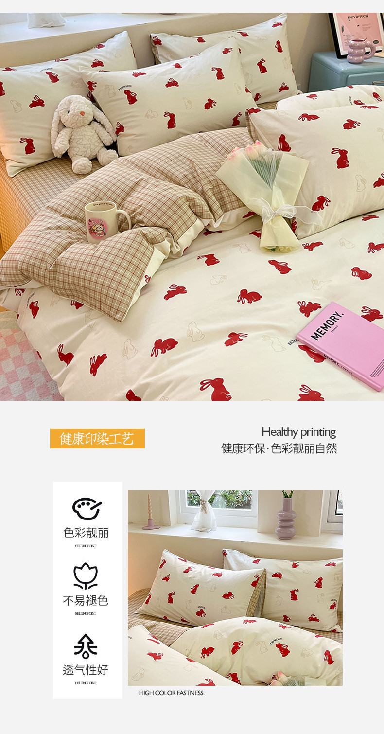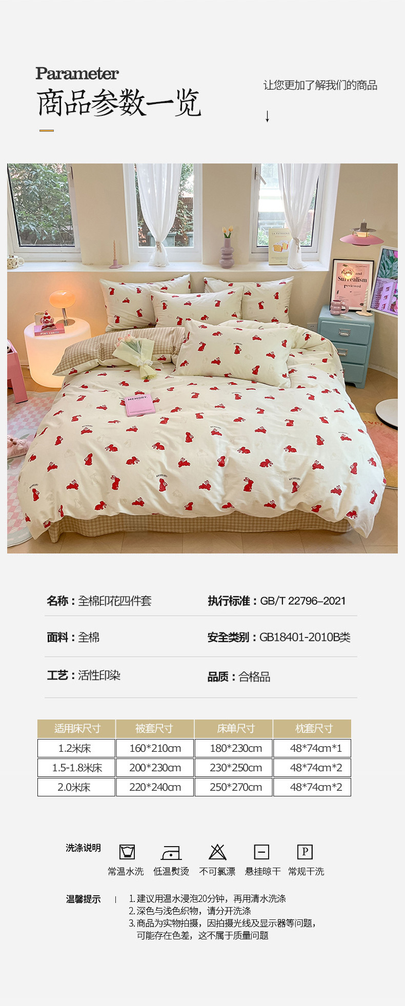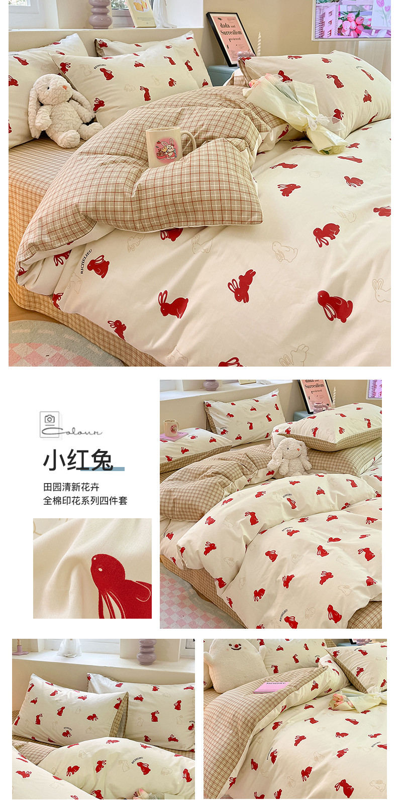 商品名称:沐棉 2023新款全棉13372小清新印花四件套 小红兔