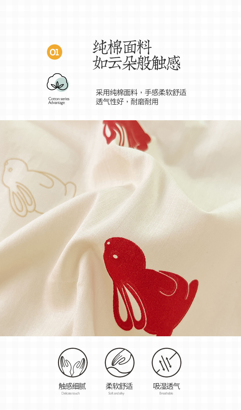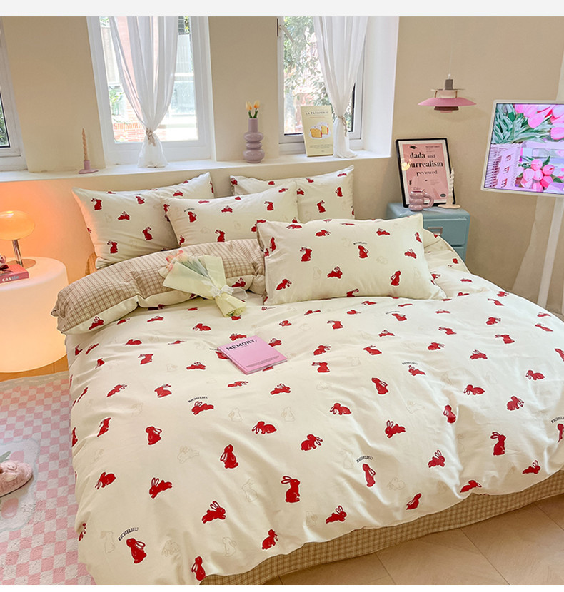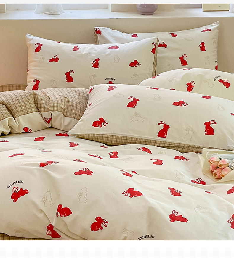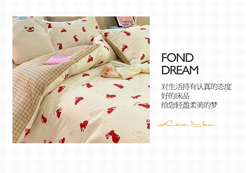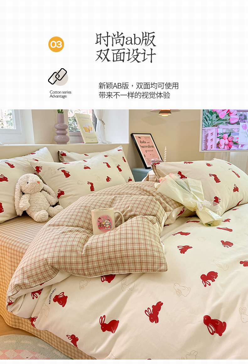 商品名称:沐棉 2023新款全棉13372小清新印花四件套 小红兔