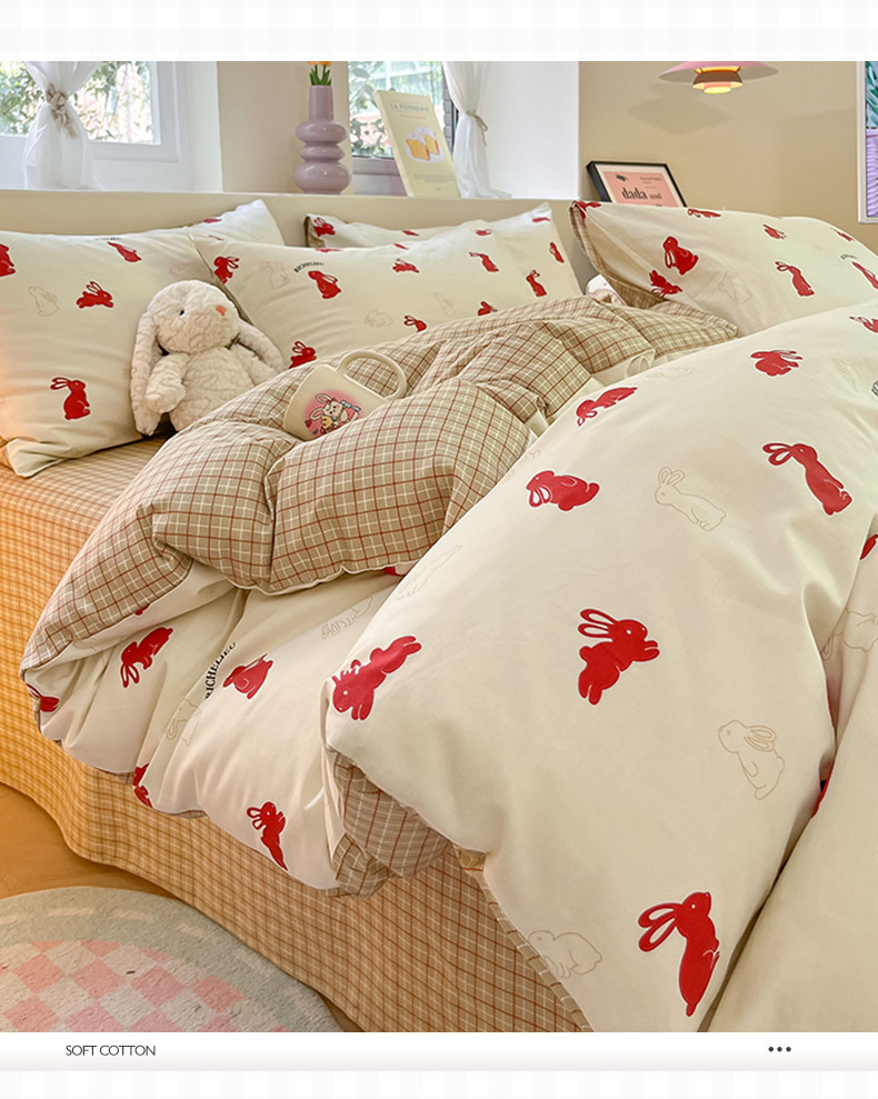 沐棉 2023新款全棉13372小清新印花四件套 小红兔