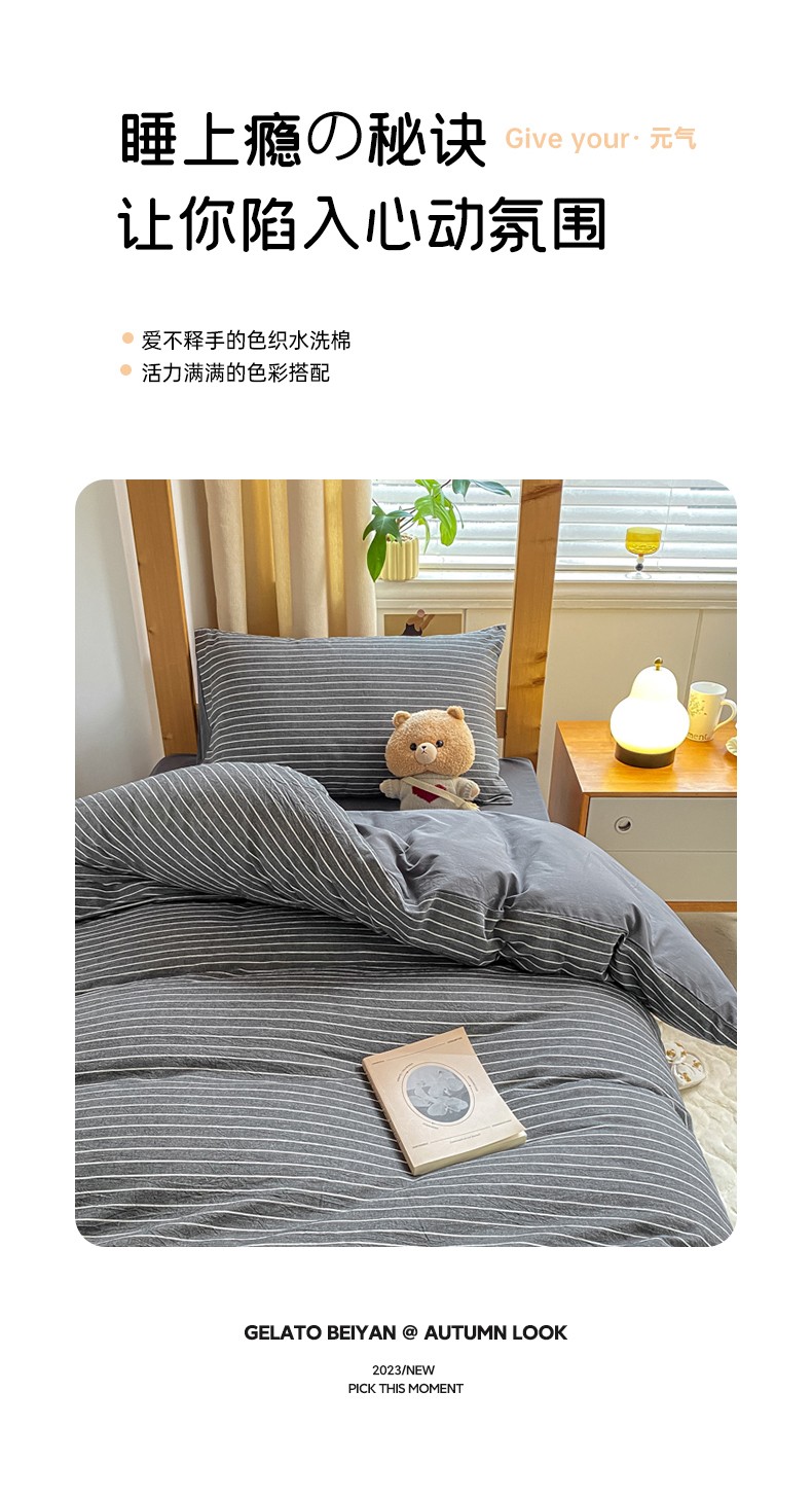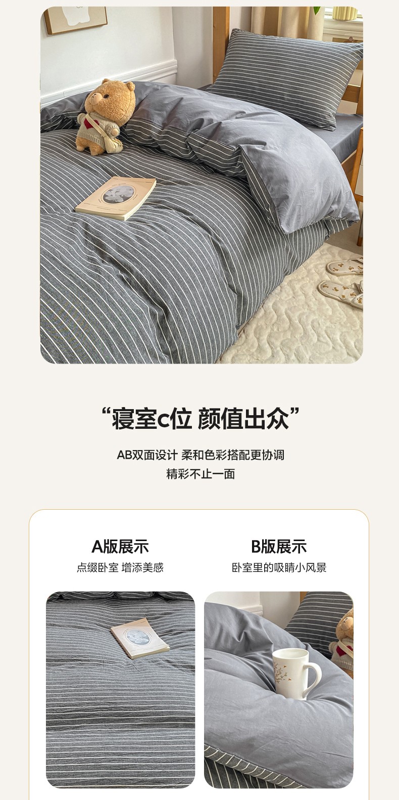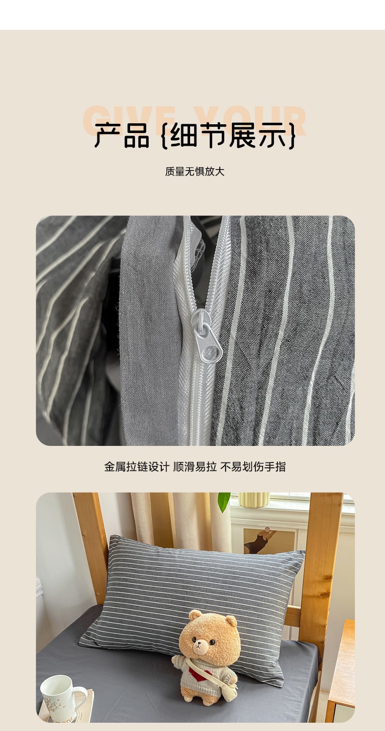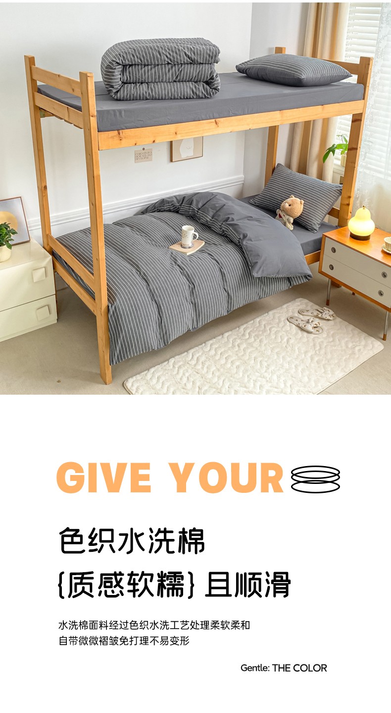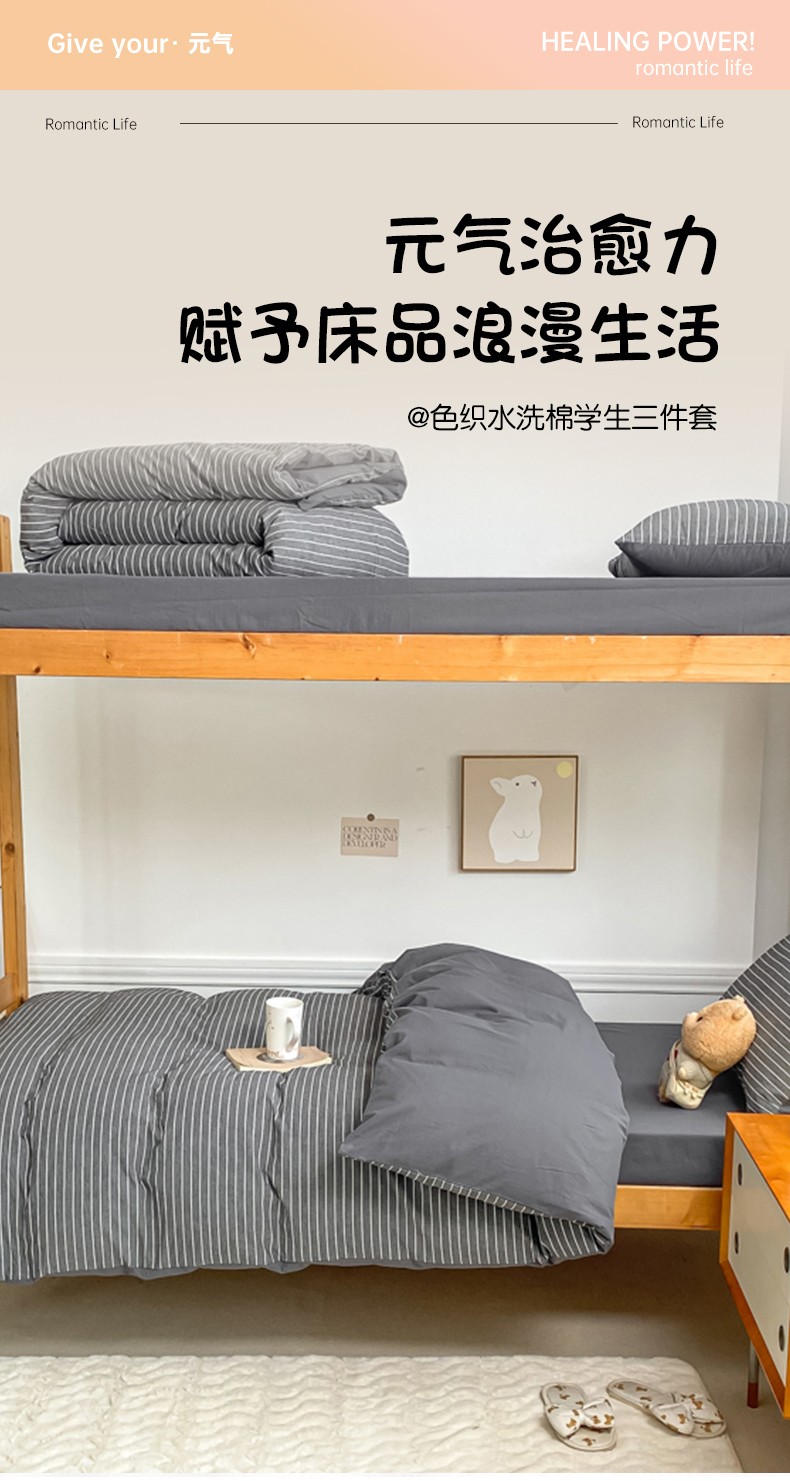 商品名称:吉象 2025新款色织学生水洗棉上下铺三件套 拿铁