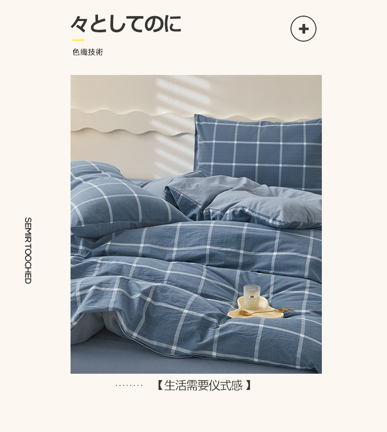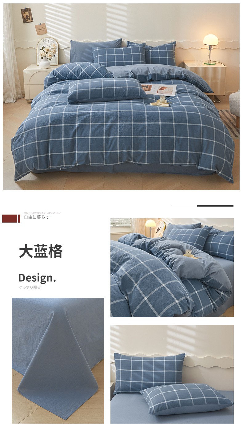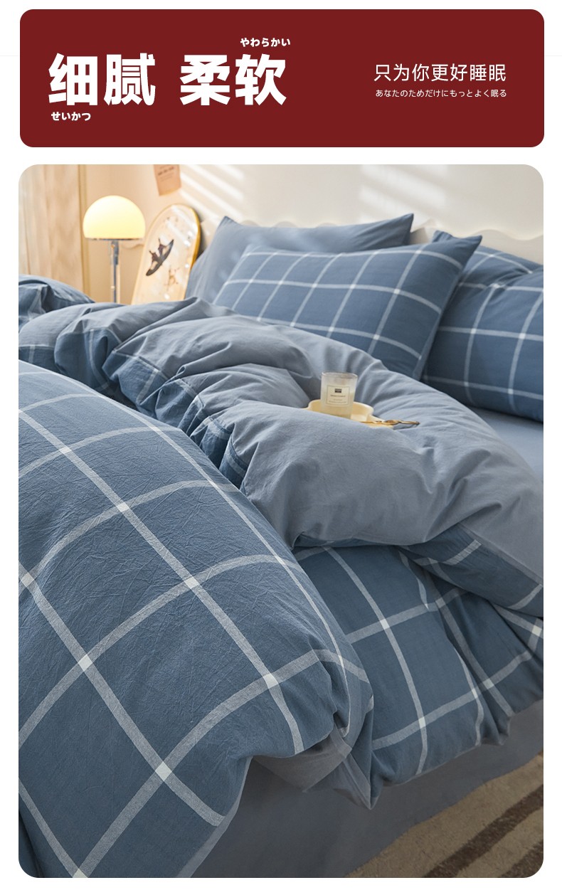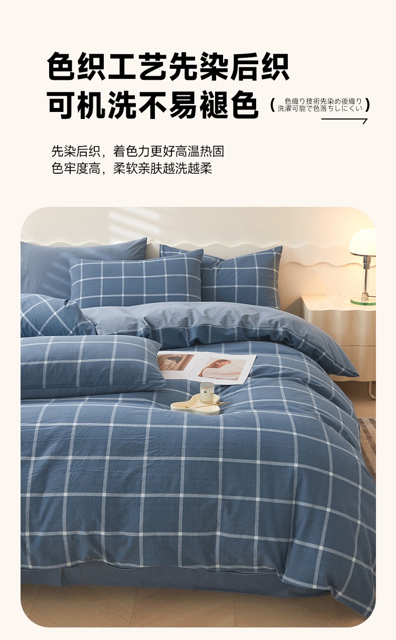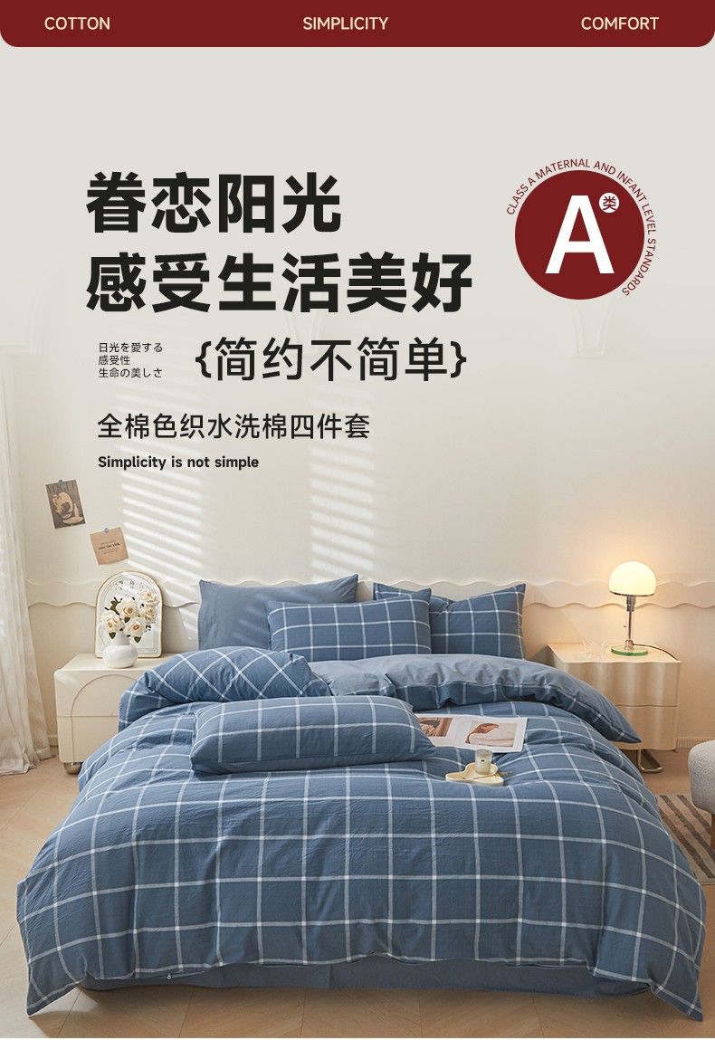 吉象 2023新款全棉色织水洗棉四件套 大蓝格