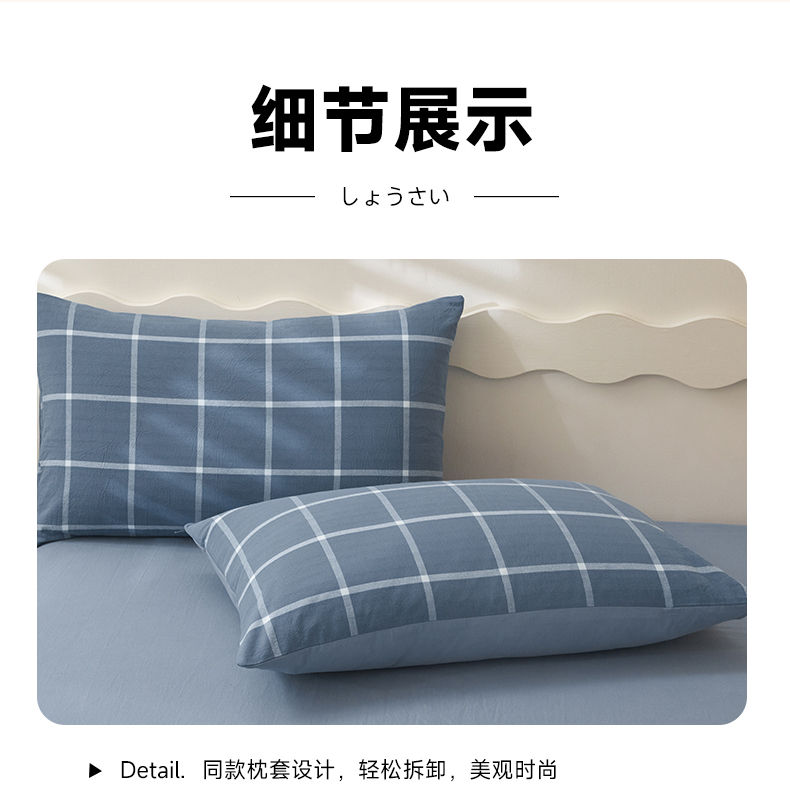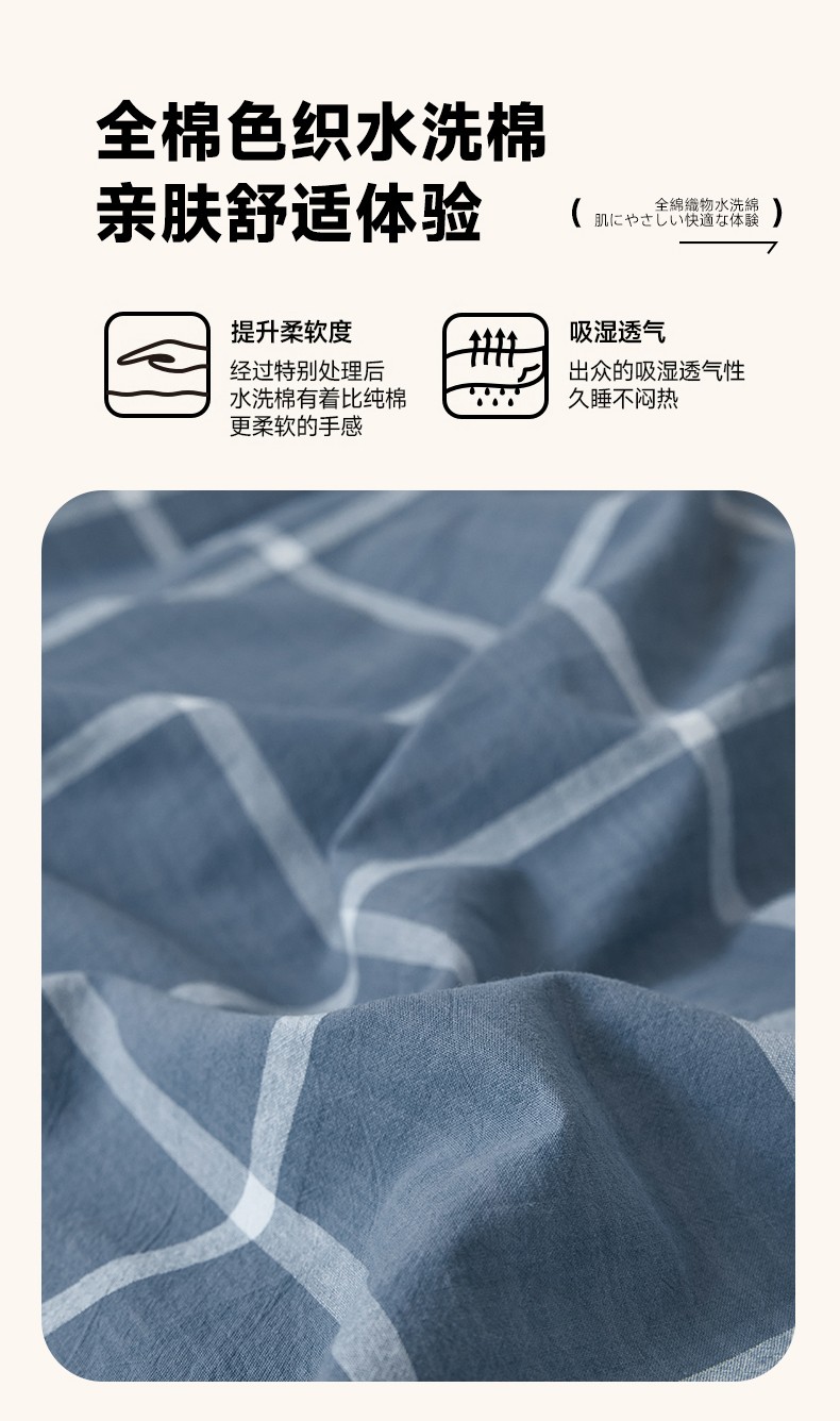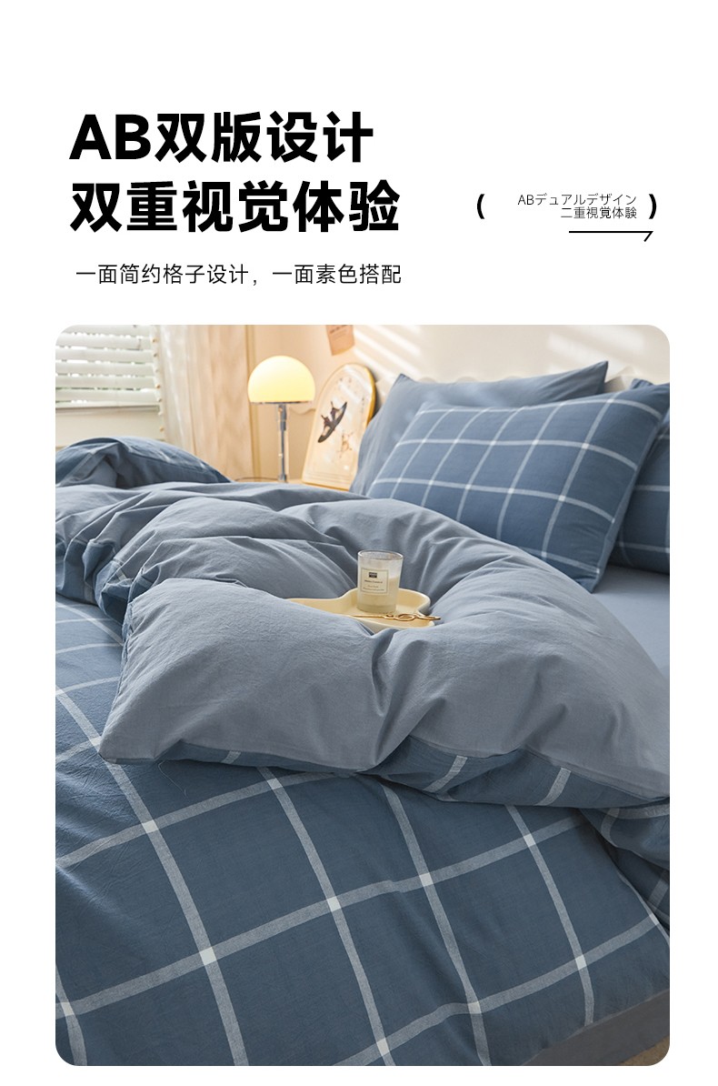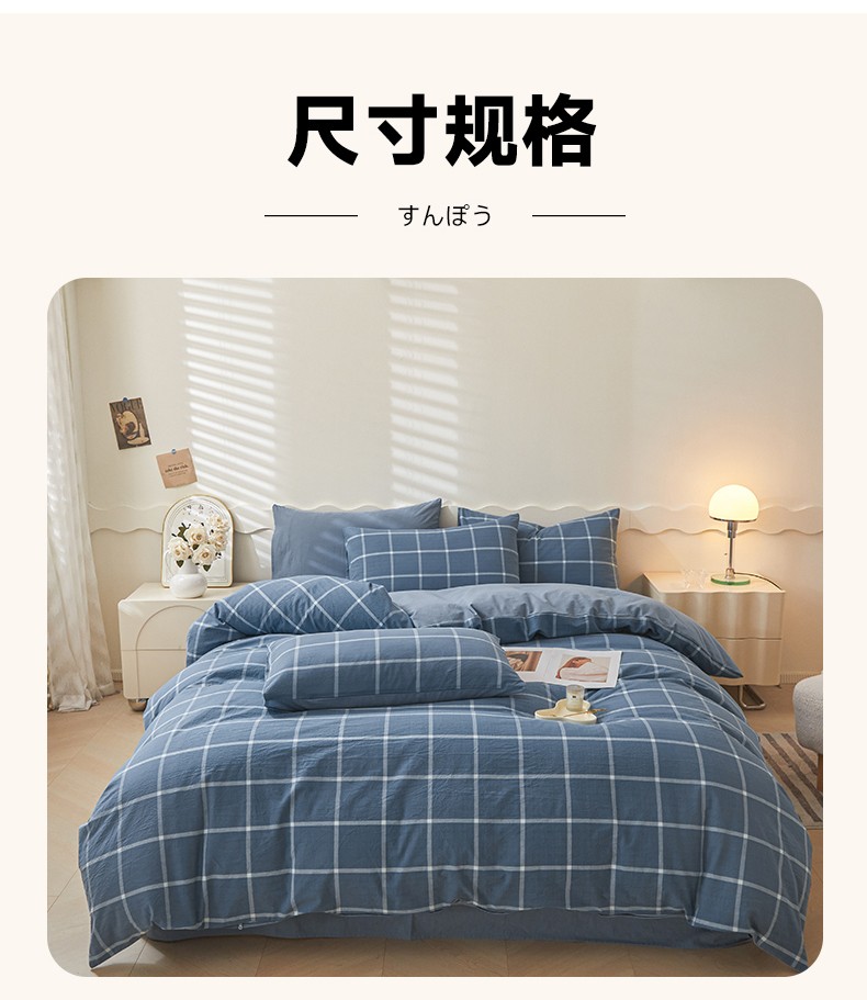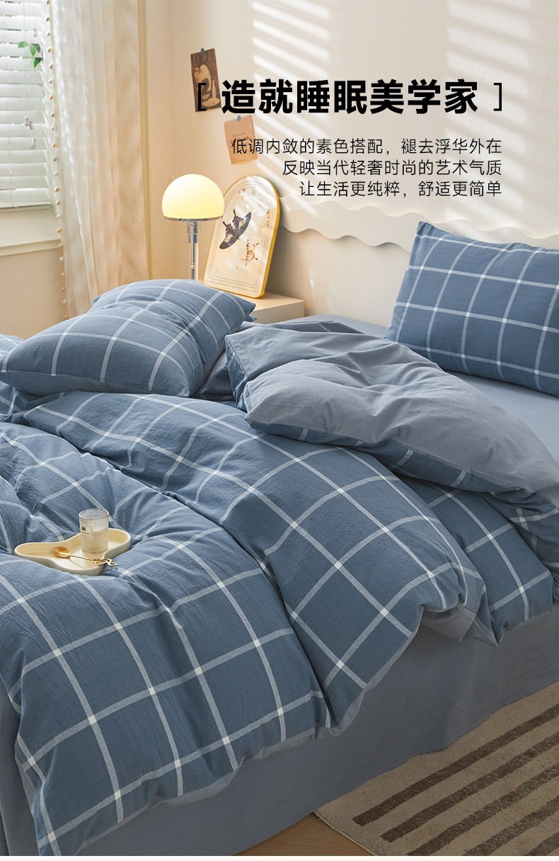 商品名称:吉象 2023新款全棉色织水洗棉四件套 大蓝格