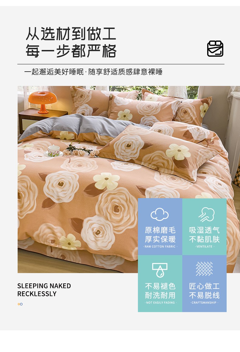 商品名称:金丝鸟 2023新款原棉磨毛四件套小清新系列 云梦