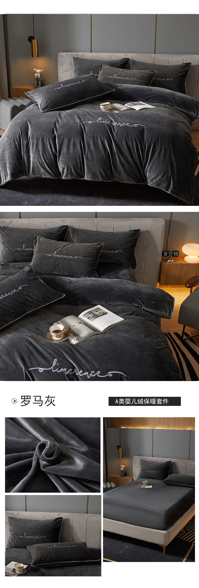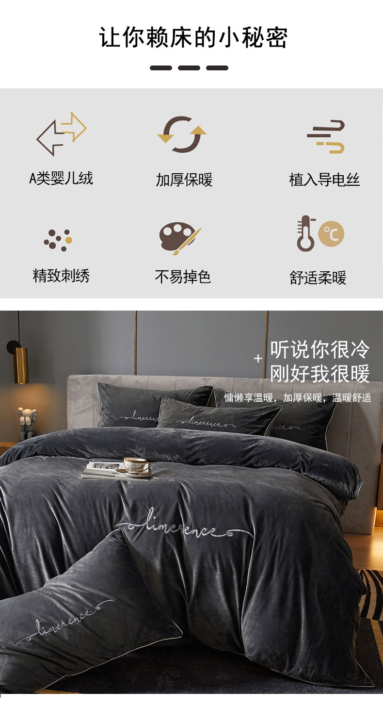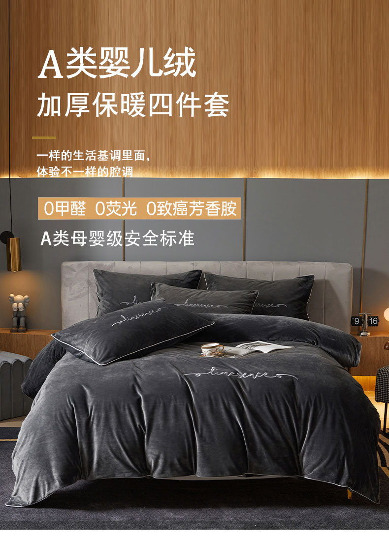 当前位置: 91家纺网 > 商品网购 > 床品套件 > 四件套 > 宝宝绒四件套 > 瑞驰家纺 2023新款A类婴儿绒加厚保暖四件套 罗马灰