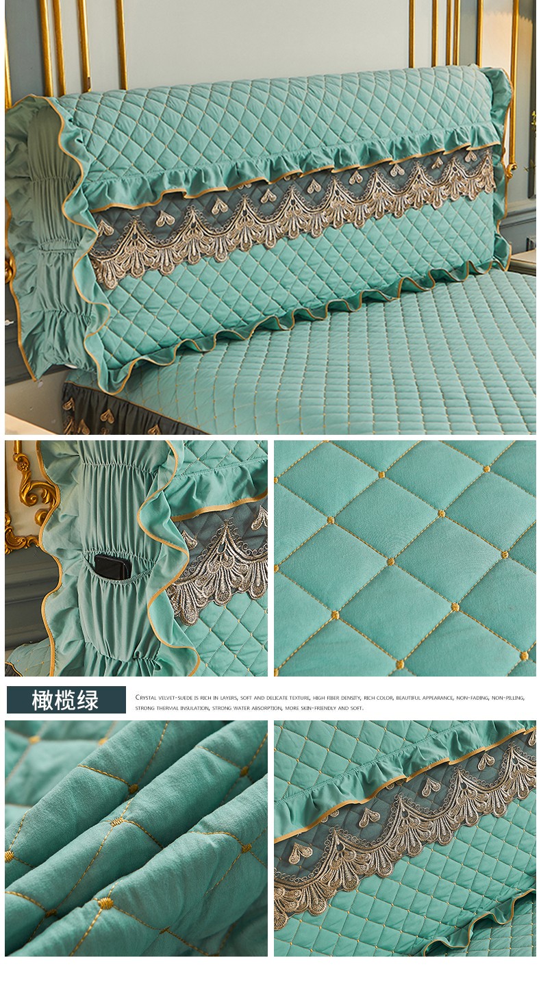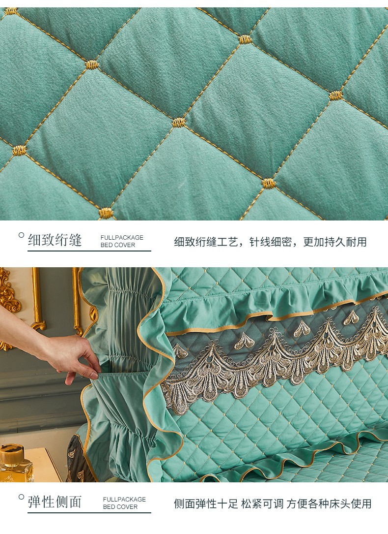 (总)屹成家纺2025新款水晶绒夹棉绗缝蕾丝床裙三件套(塞纳河畔)床裙单件起售价不低于105元,大红,豆沙,翡翠绿,粉玉,橄榄绿,蔚蓝,银灰