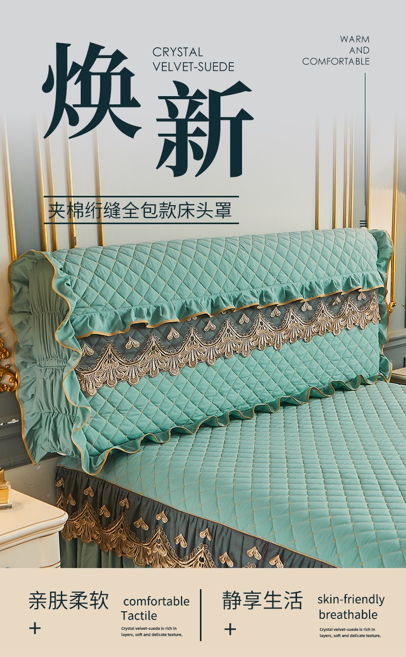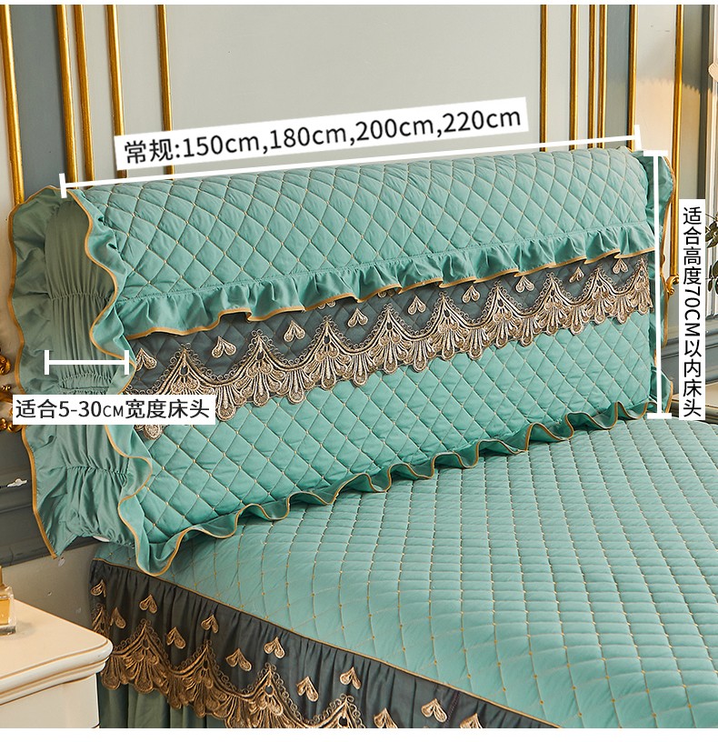屹成 2024新款水洗棉蕾丝四季款床笠床裙单品套件-床头罩 橄榄绿