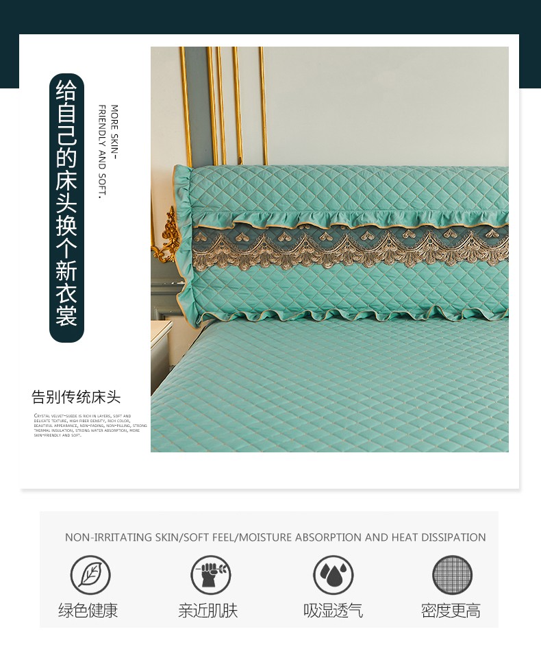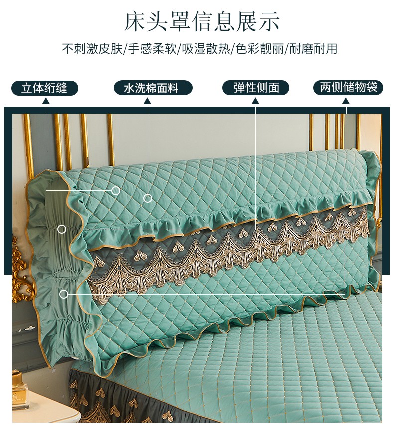 商品名称:屹成 2024新款水洗棉蕾丝四季款床笠床裙单品套件-床头罩 橄榄绿