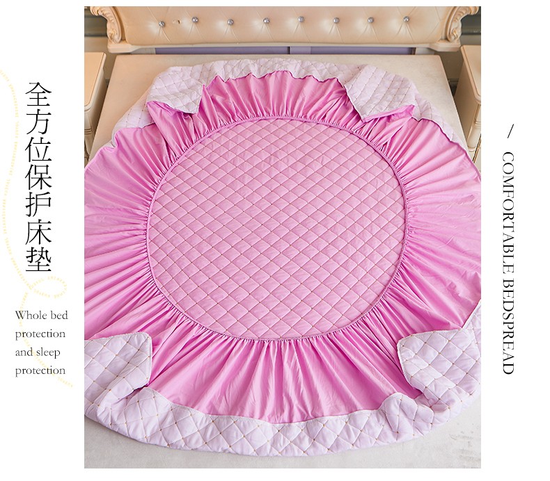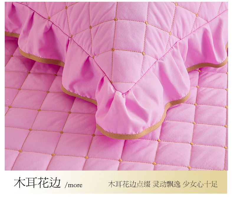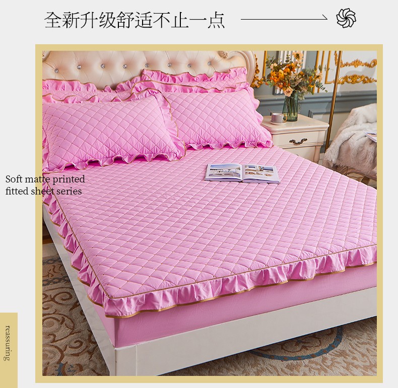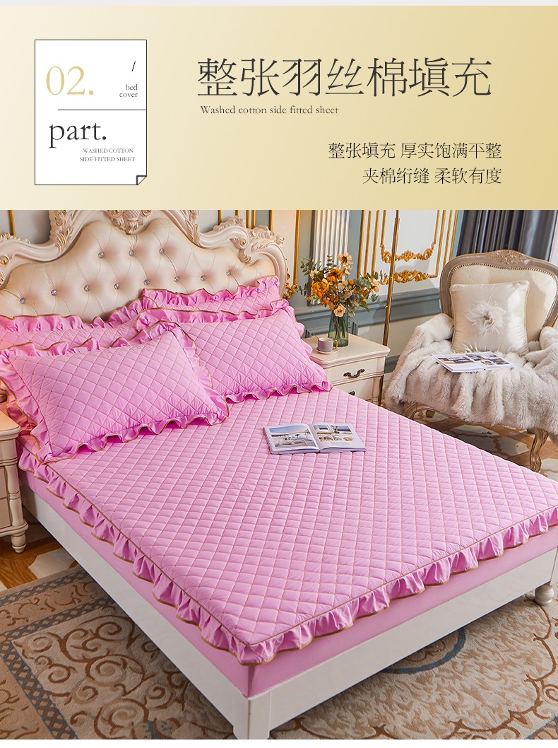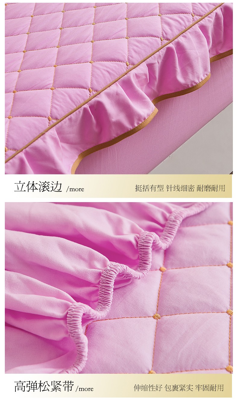 (总)屹成家纺2025新款水晶绒夹棉绗缝蕾丝床裙三件套(塞纳河畔)床裙单件起售价不低于105元,大红,豆沙,翡翠绿,粉玉,橄榄绿,蔚蓝,银灰
