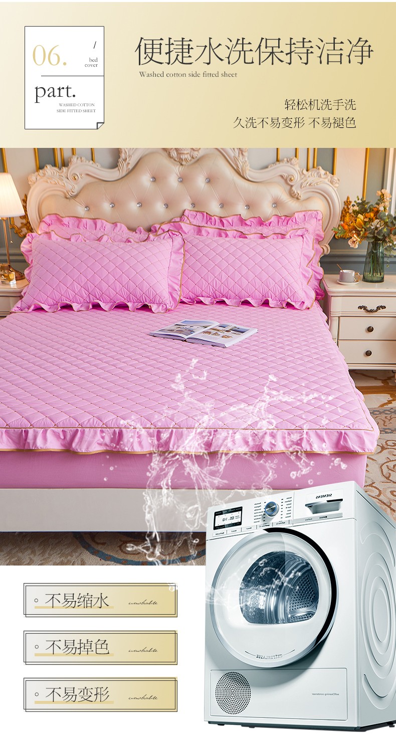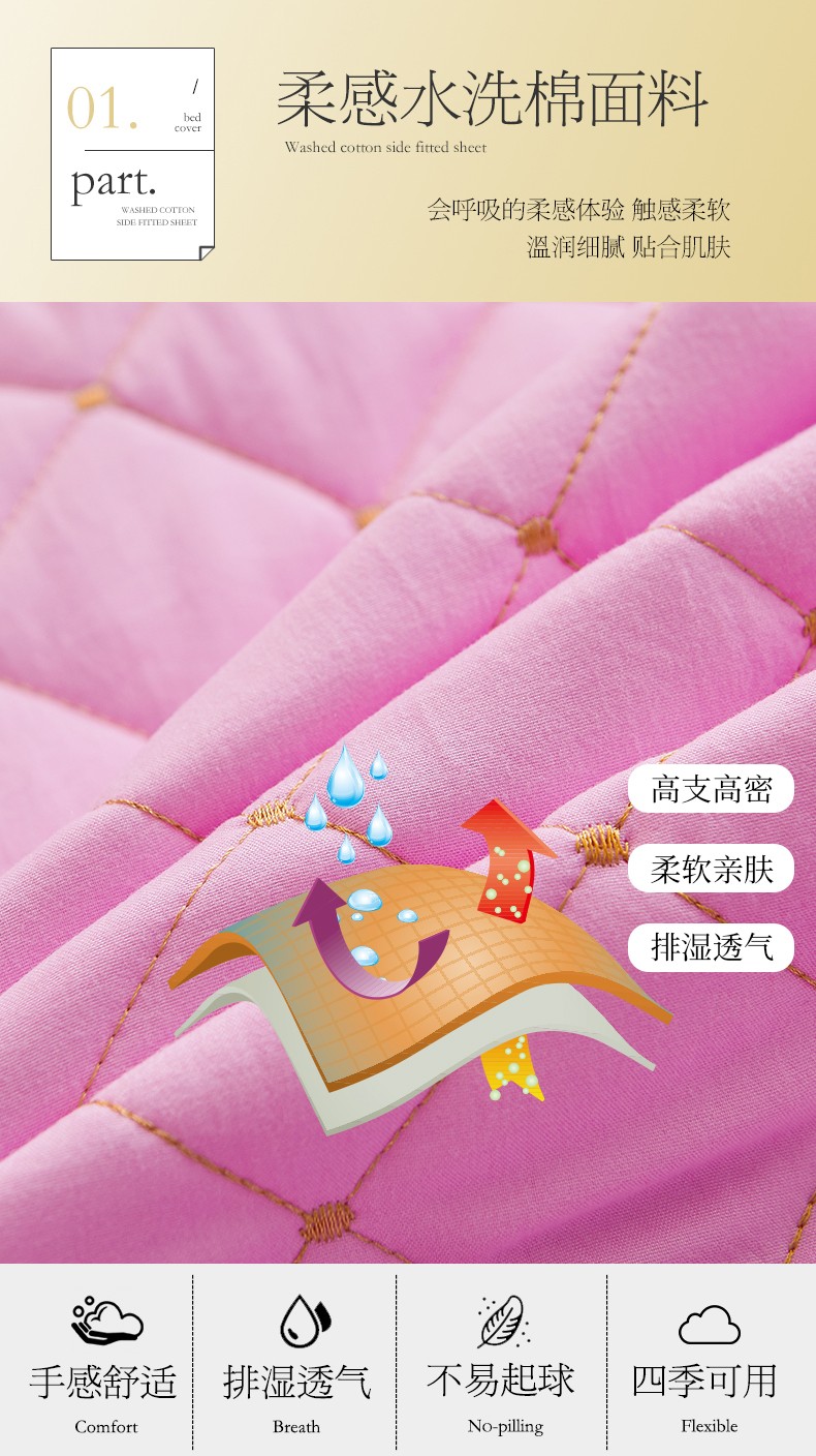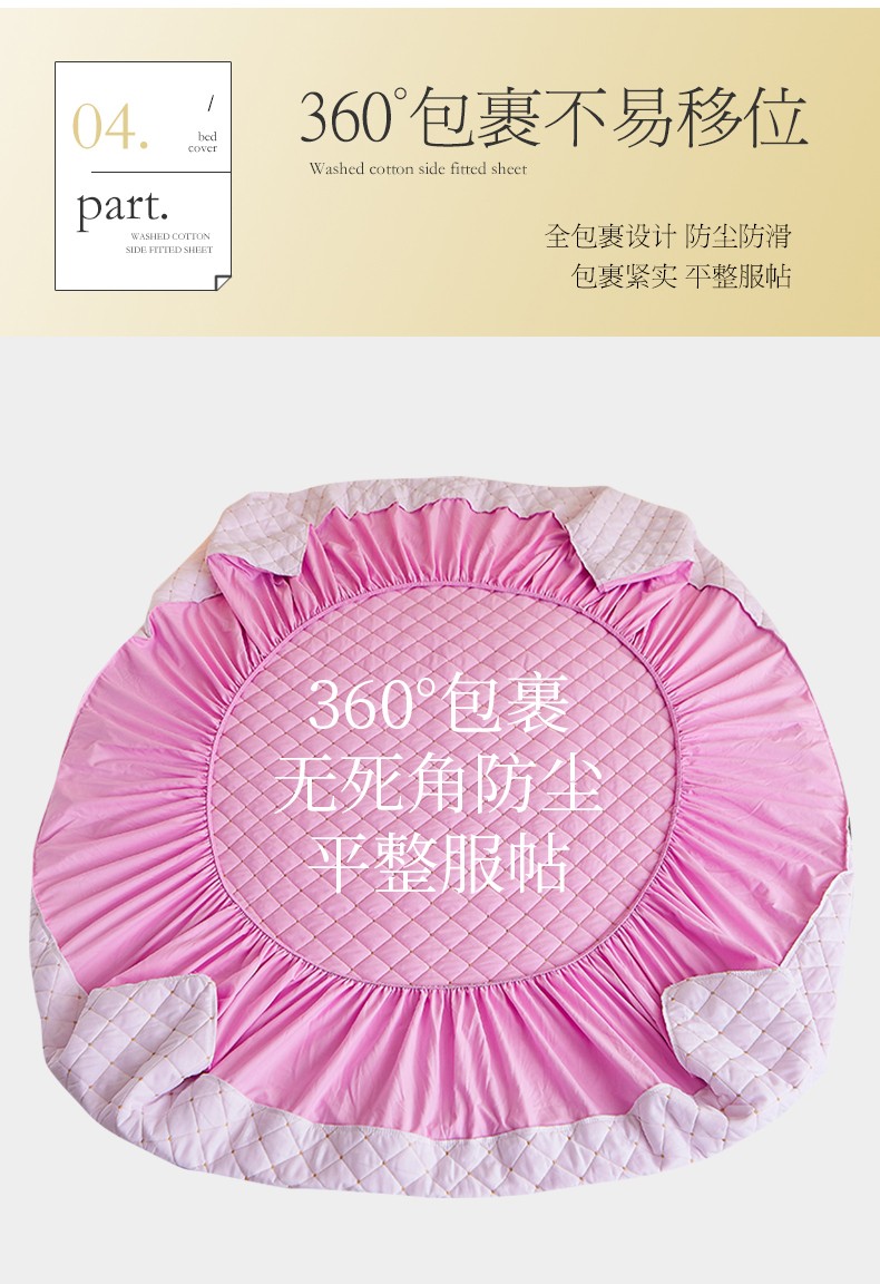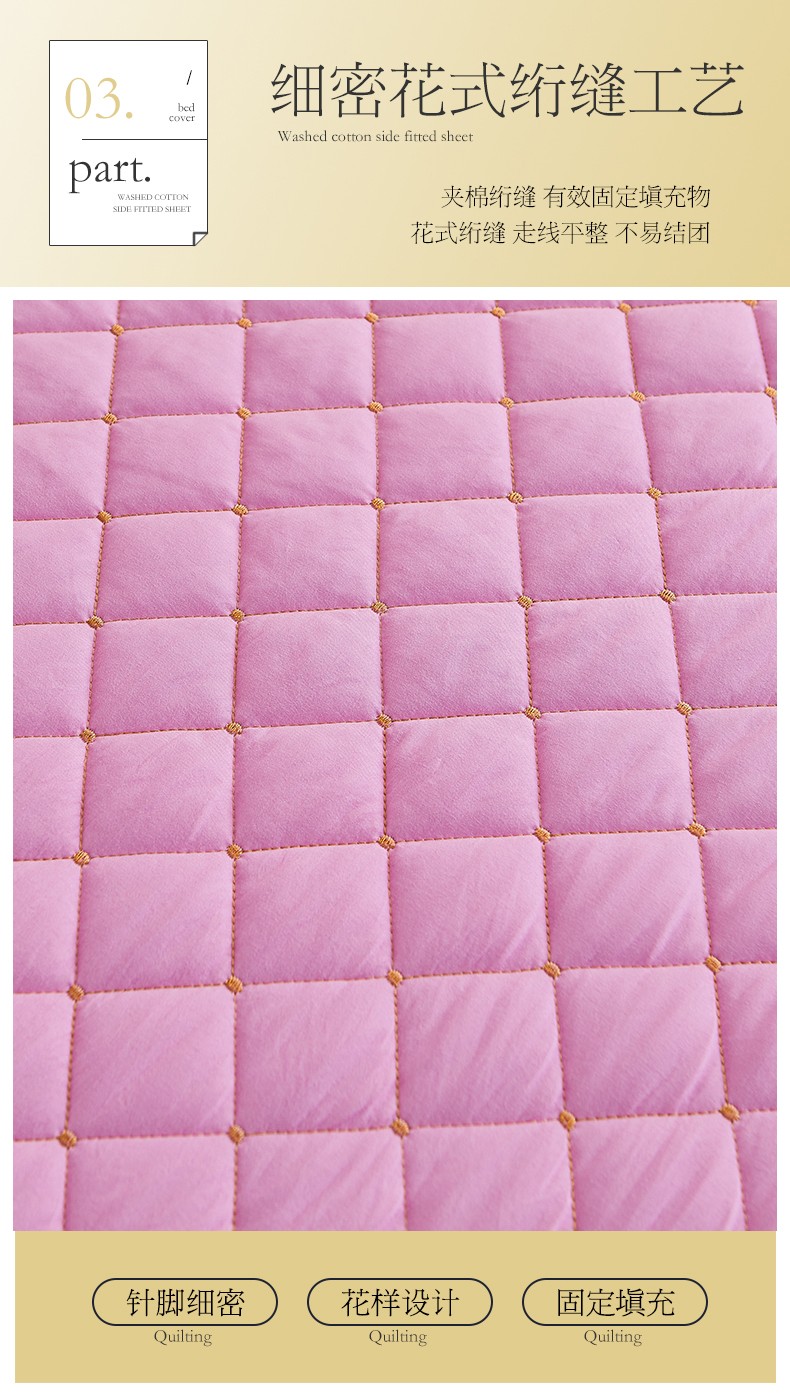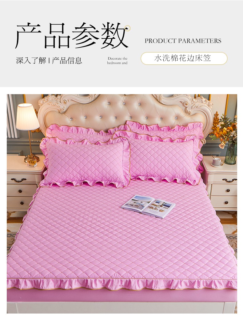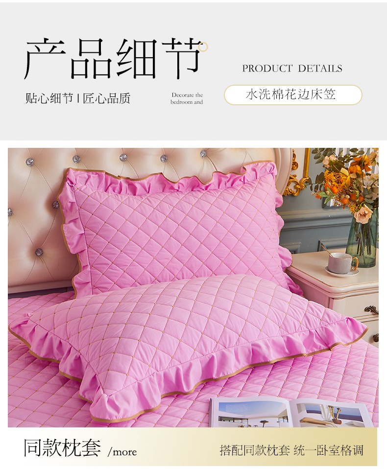 屹成 2024新款水洗棉蕾丝四季款床笠床裙单品套件-床笠三件套 粉红