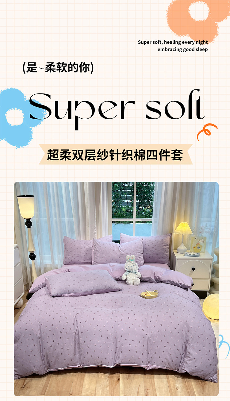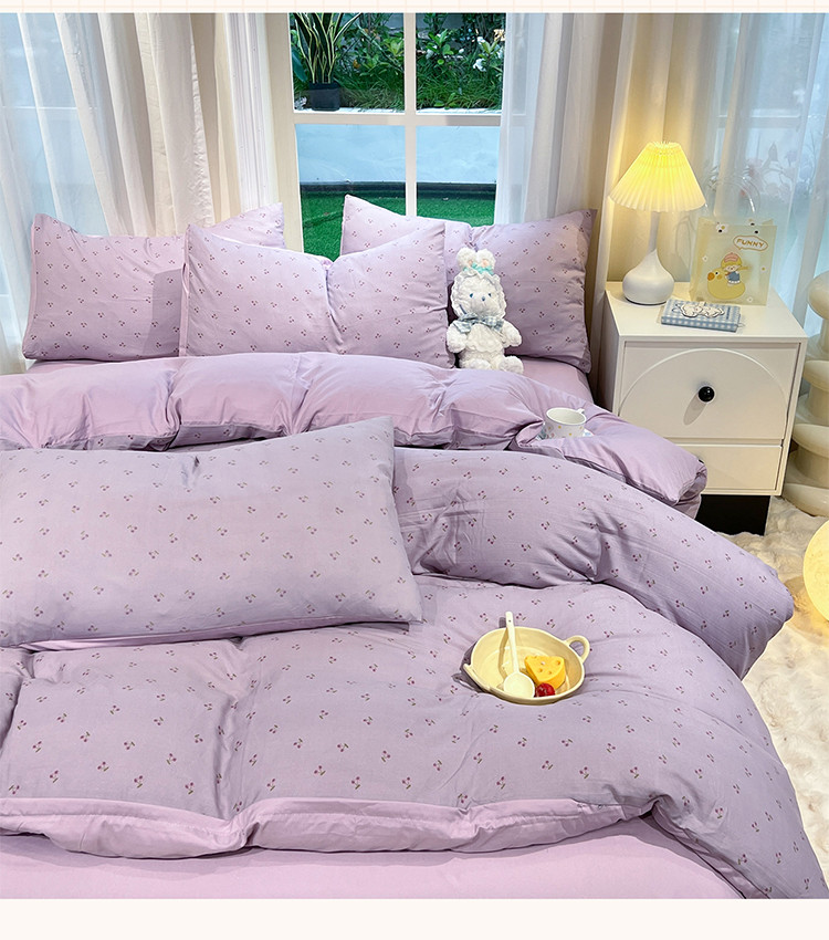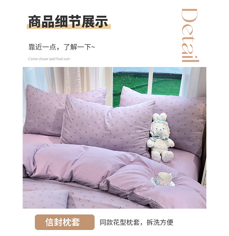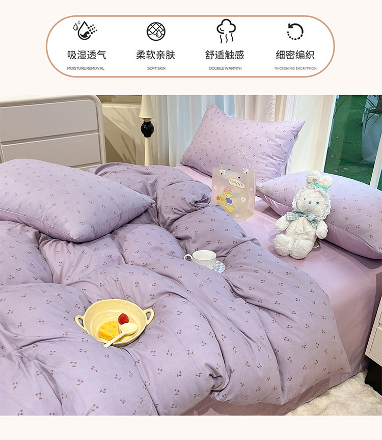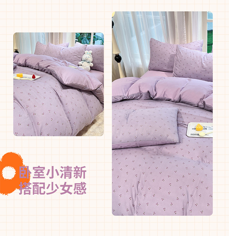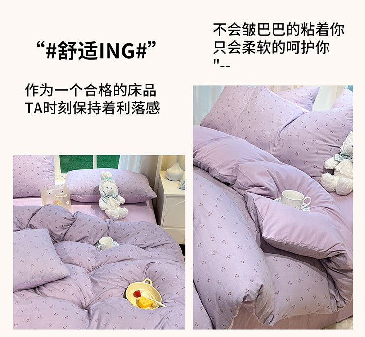 当前位置: 91家纺网 > 商品网购 > 床品套件 > 四件套 > 水洗棉四件套 > 妖妖家纺 2024新款超柔软糯水洗云朵棉印花四季款四件套小樱桃