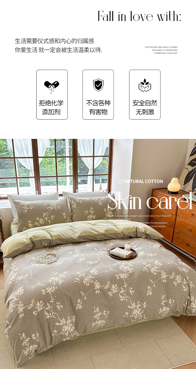 (总)优彩 2025新款全棉双层纱四件套,采花兔,彩蘑菇,初暖,粉小花,花栖,恋花小径,萝蔓,落山秋,南瓜派,清然,瑞莎,小熊派,紫葡萄,花栖-咖