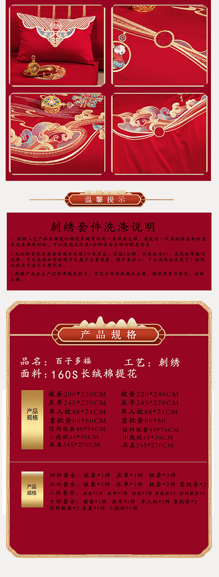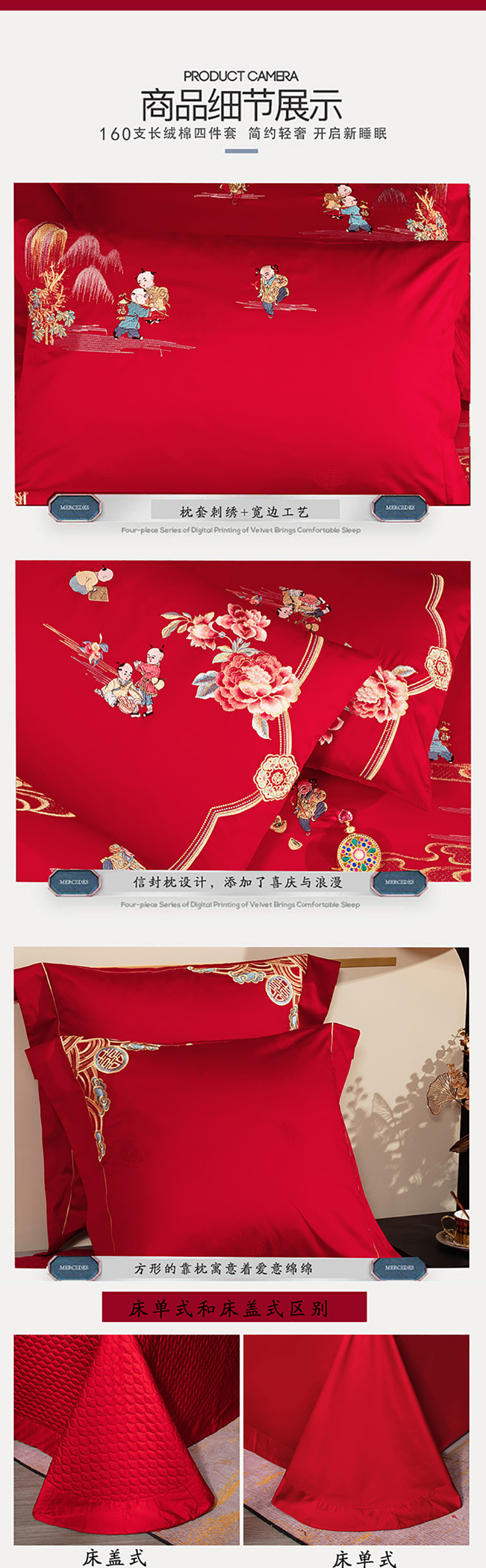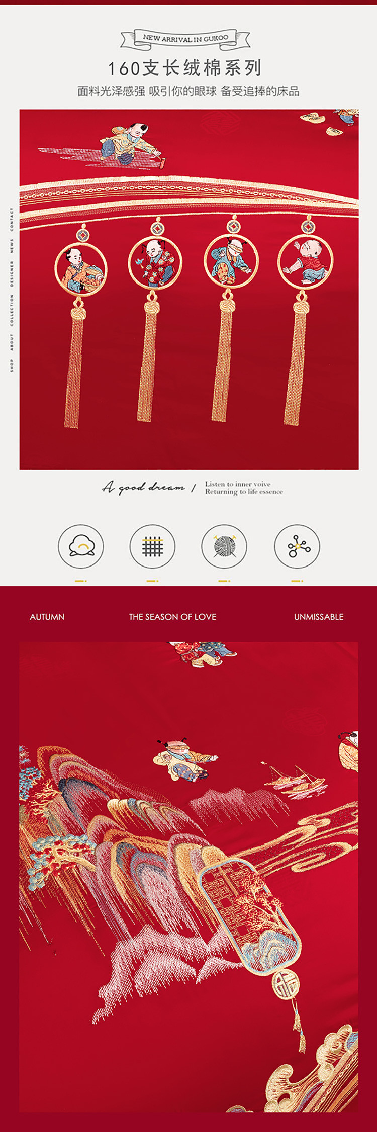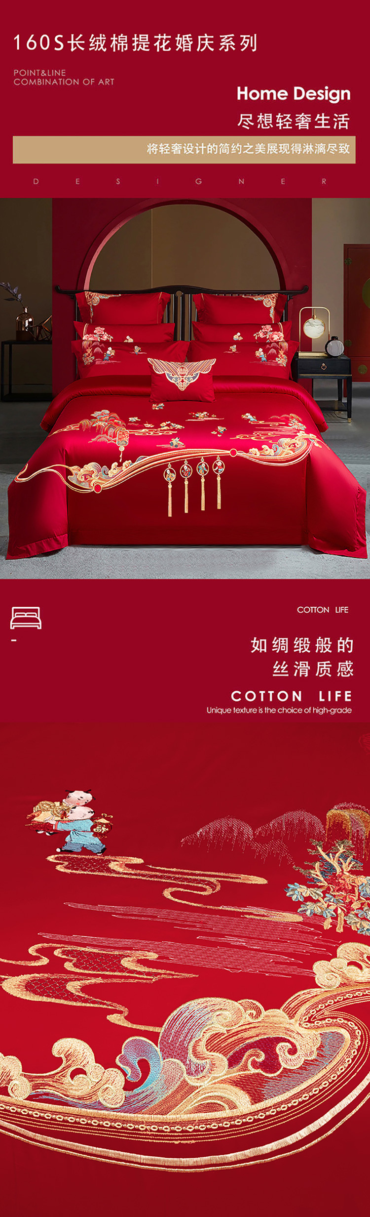 当前位置: 91家纺网 > 商品网购 > 床品套件 > 四件套 > 婚庆四件套 > 柏拉图 2023新款100s贡缎提花长绒棉轻奢简约婚庆四件套 百子多福