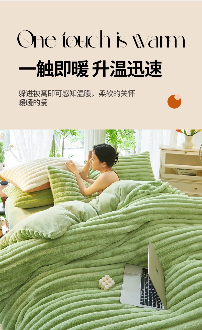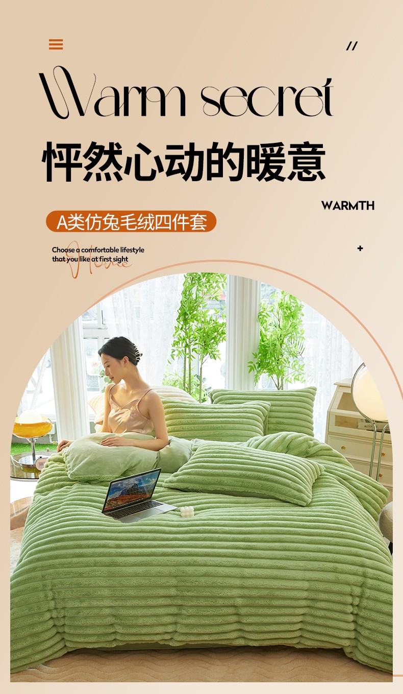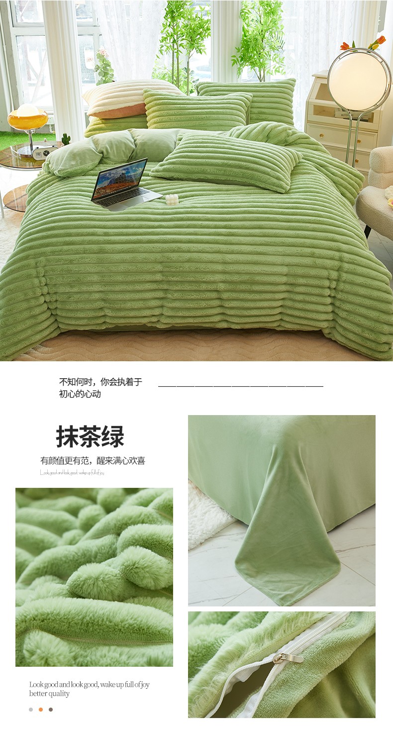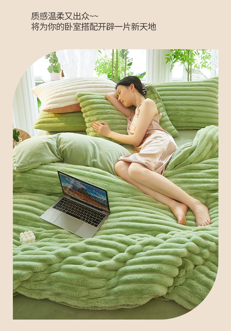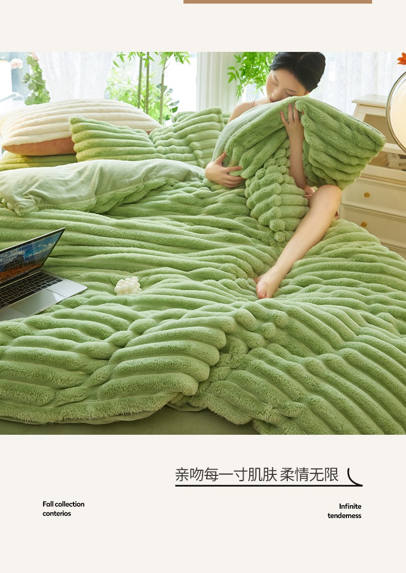 商品名称:澳洲羽 2024新款高克重牛奶绒兔兔绒四件套 苹果绿