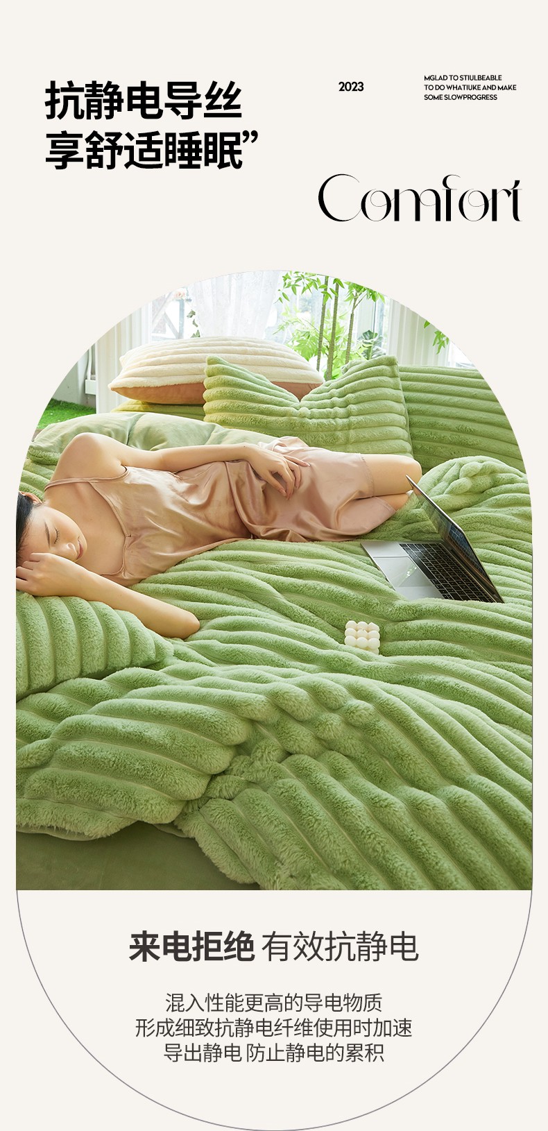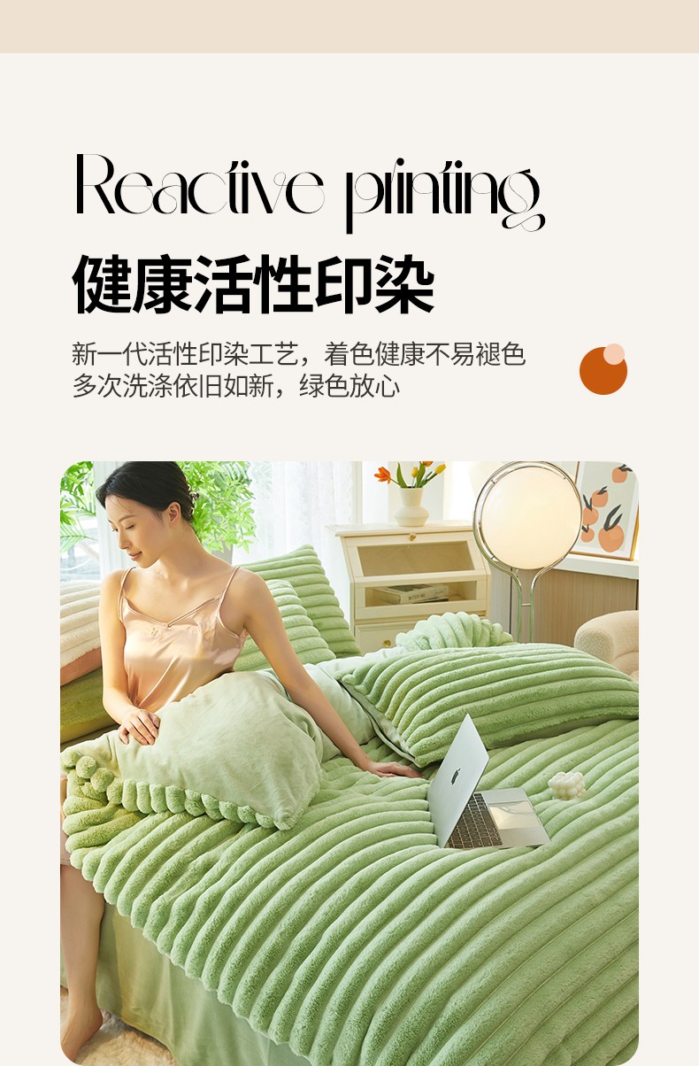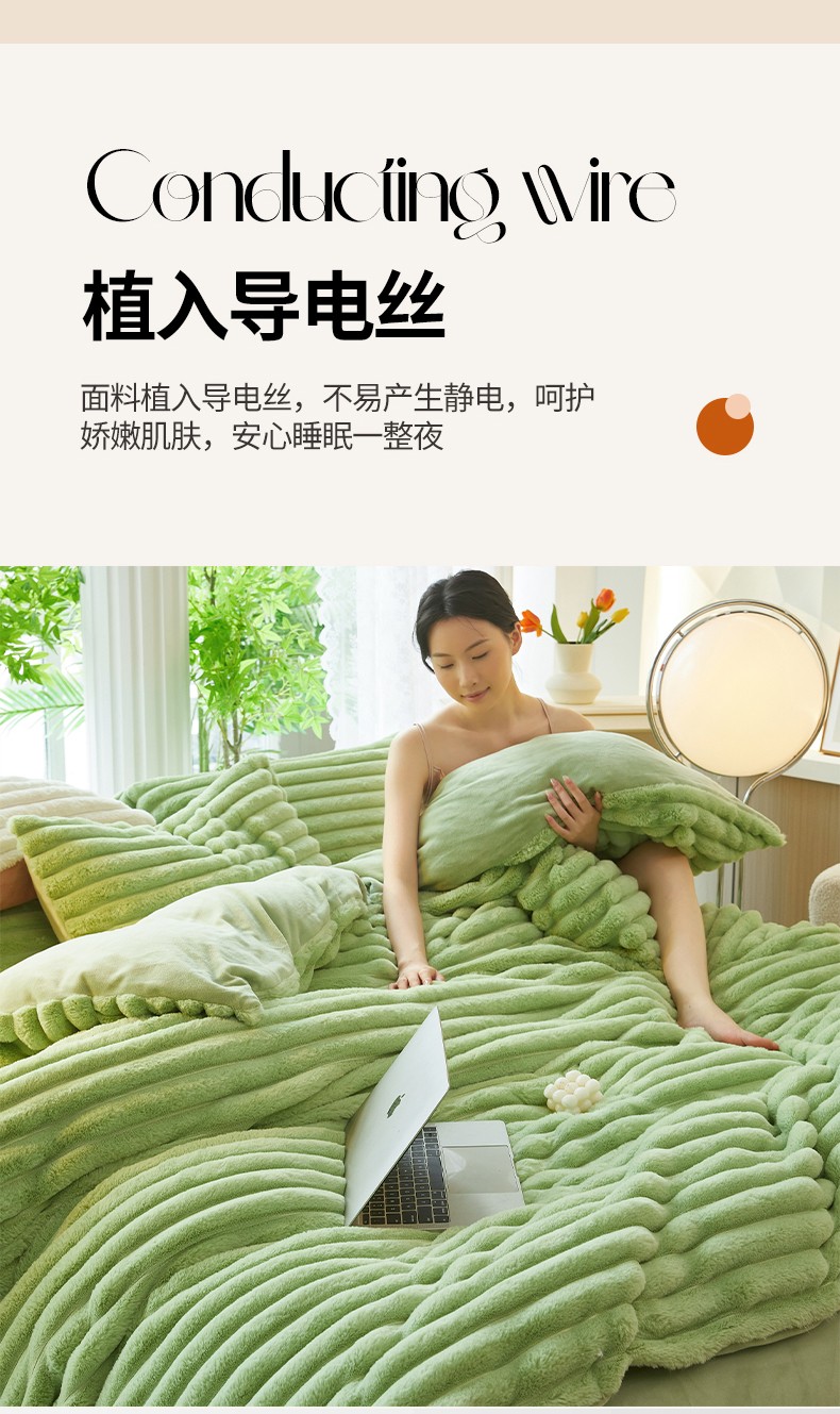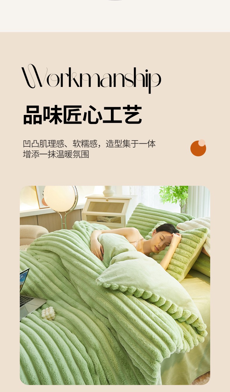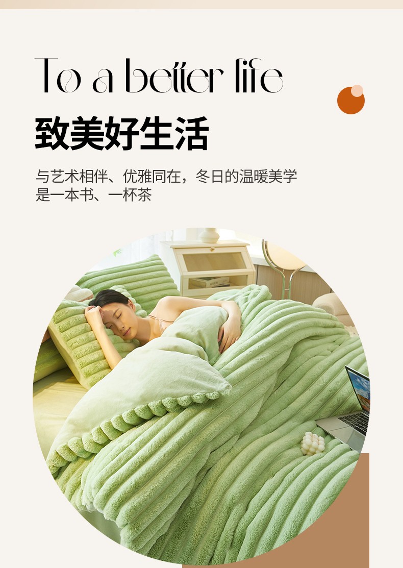 商品名称:澳洲羽 2024新款高克重牛奶绒兔兔绒四件套 苹果绿