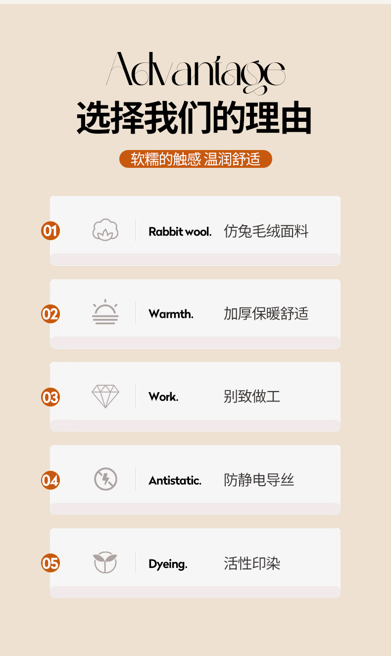 被里材质: 涤纶 毛绒