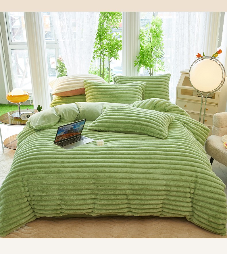 澳洲羽 2024新款高克重牛奶绒兔兔绒四件套 苹果绿