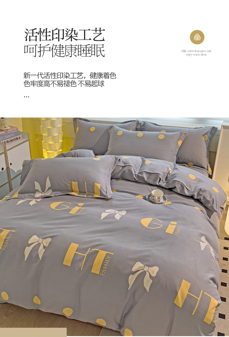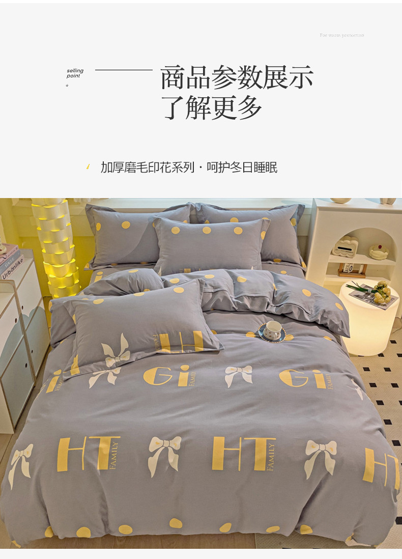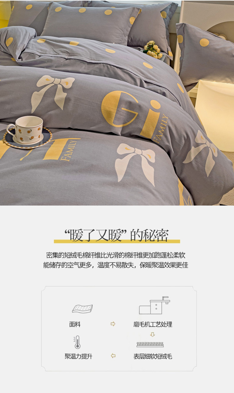 当前位置: 91家纺网 > 商品网购 > 床品套件 > 四件套 > 全棉普通四件套 > 品乐家纺 2023新款全棉喷气磨毛印花四件套 情意结-灰