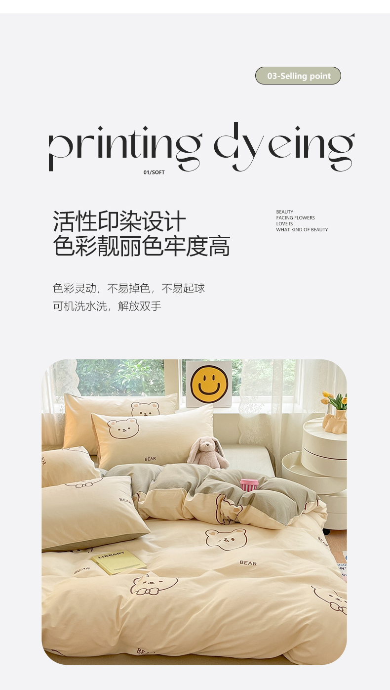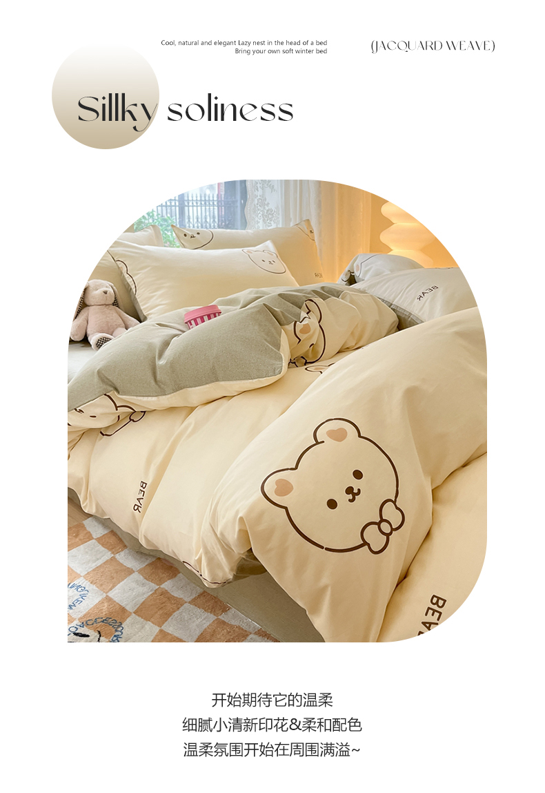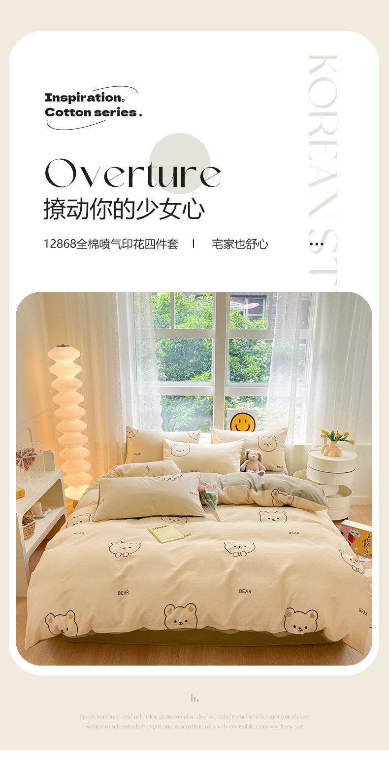 当前位置: 91家纺网 > 商品网购 > 床品套件 > 四件套 > 全棉普通四件套 > 集布 2023新款12868全棉喷气印花四件套 绅士熊