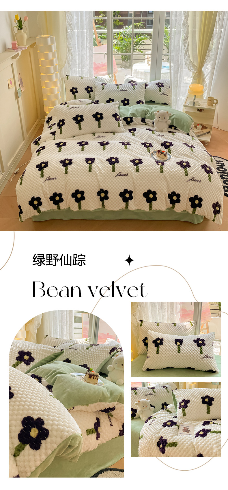 商品名称:莱米 2023新款高克重豆豆绒四件套 绿野仙踪