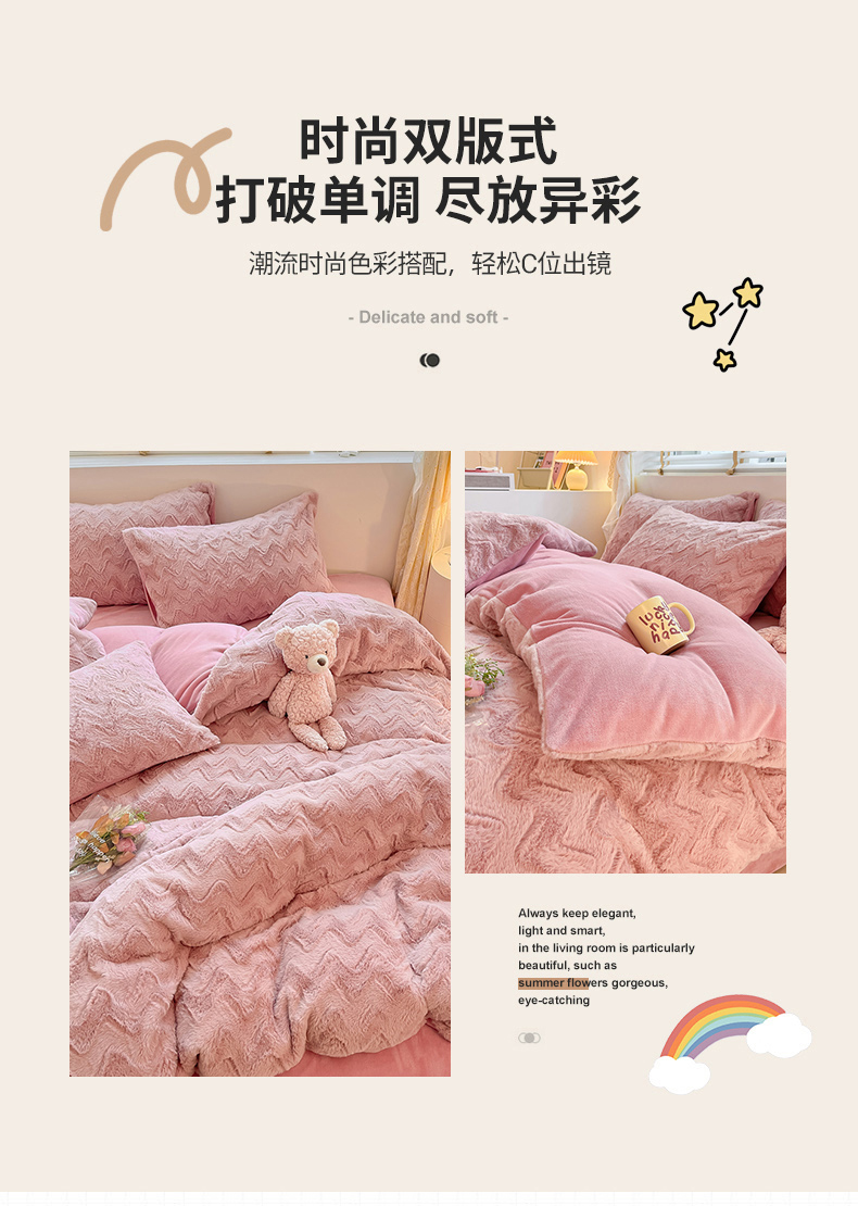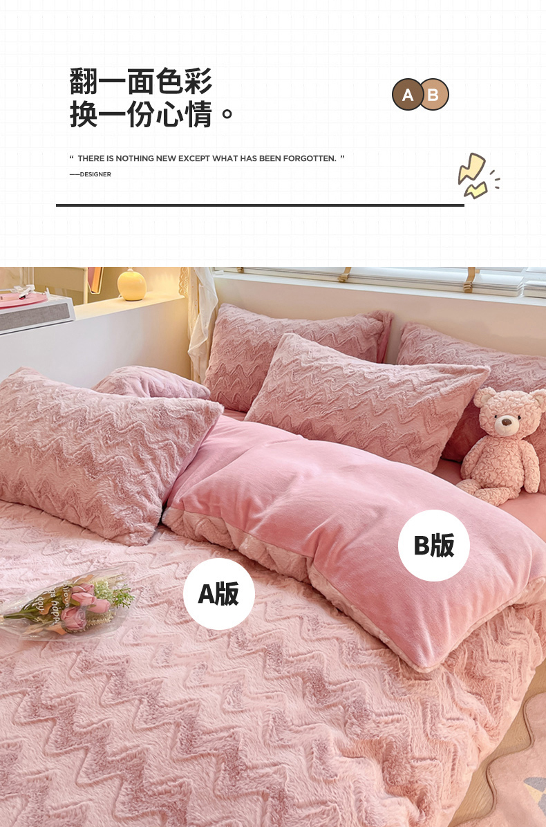 (总)莱米 2023新款直播爆款牛奶绒豆豆绒四件套高克重豆豆绒四件套,爱心小熊,缤纷花语,纯色—白+粉,纯色—白+卡其,纯色—深灰,纯色—樱花粉,花海,花样年华,浪漫小兔,绿野仙踪,萌萌兔,秘密花园,浅夏,兔兔乐园,银杏叶,字母小狗