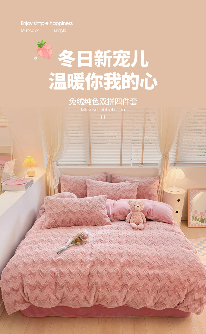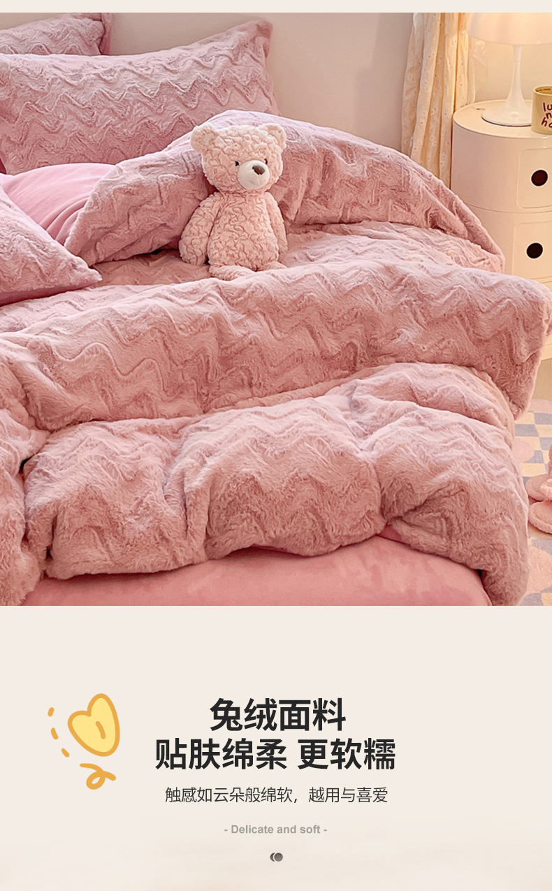 商品名称:莱米 2023新款兔绒四件套 甜蜜蜜--豆沙
