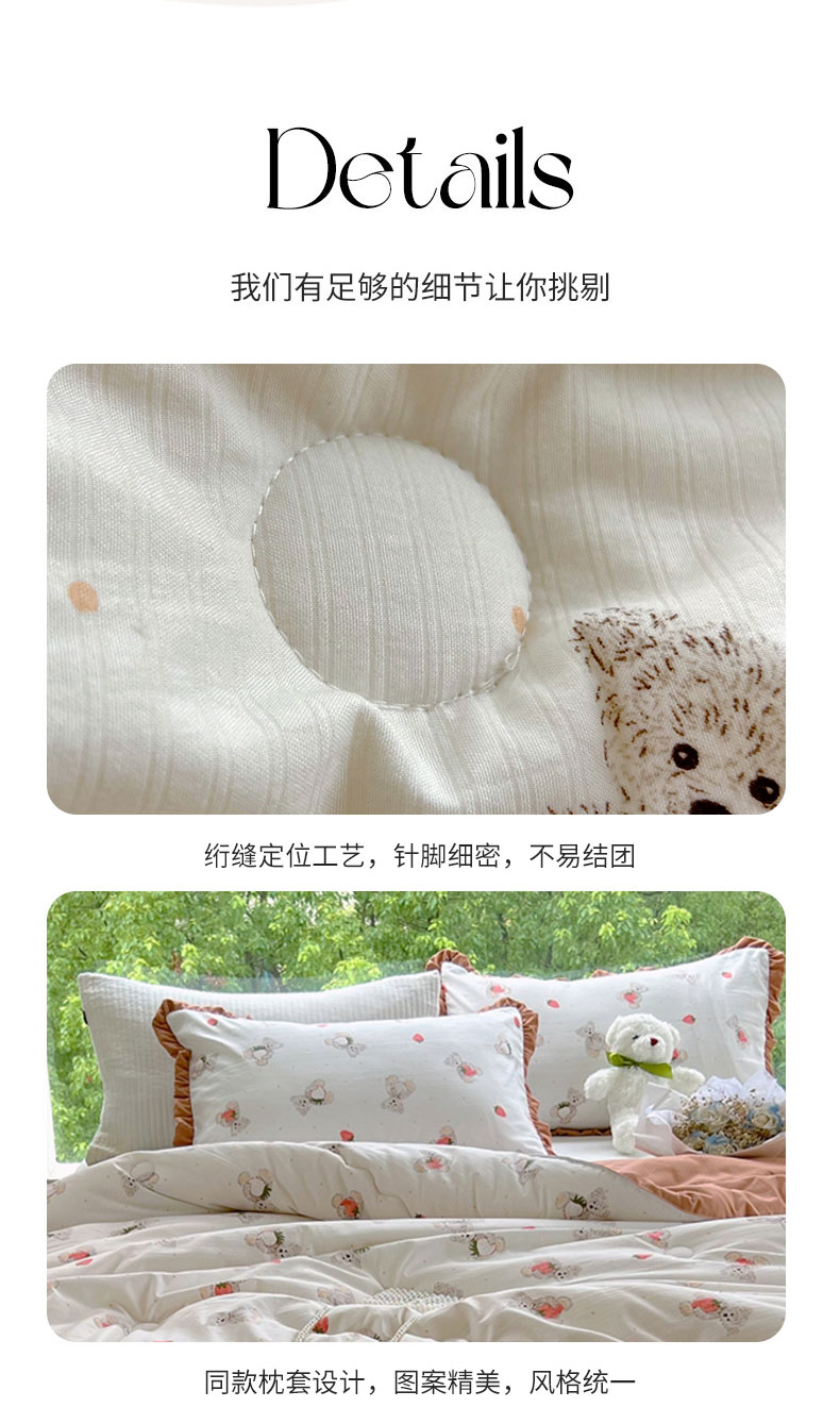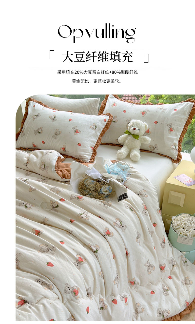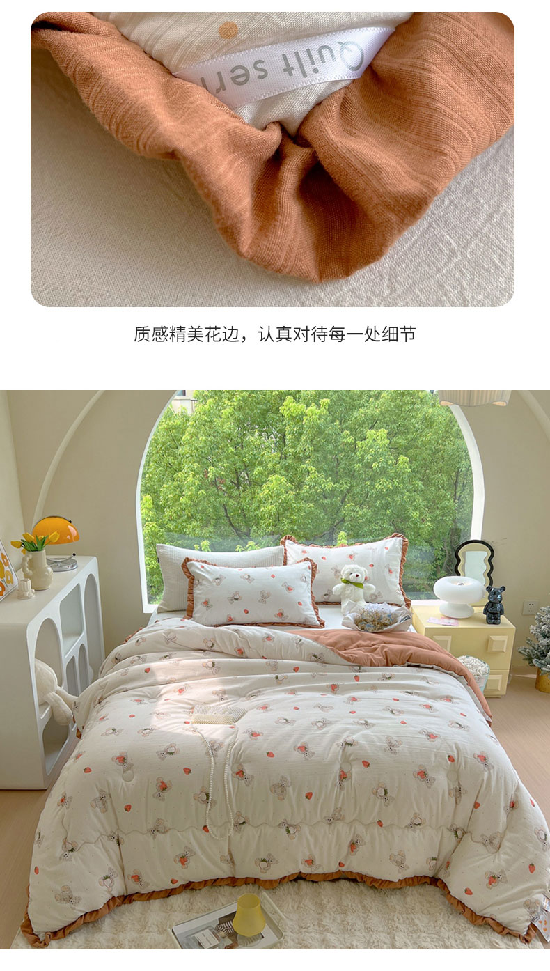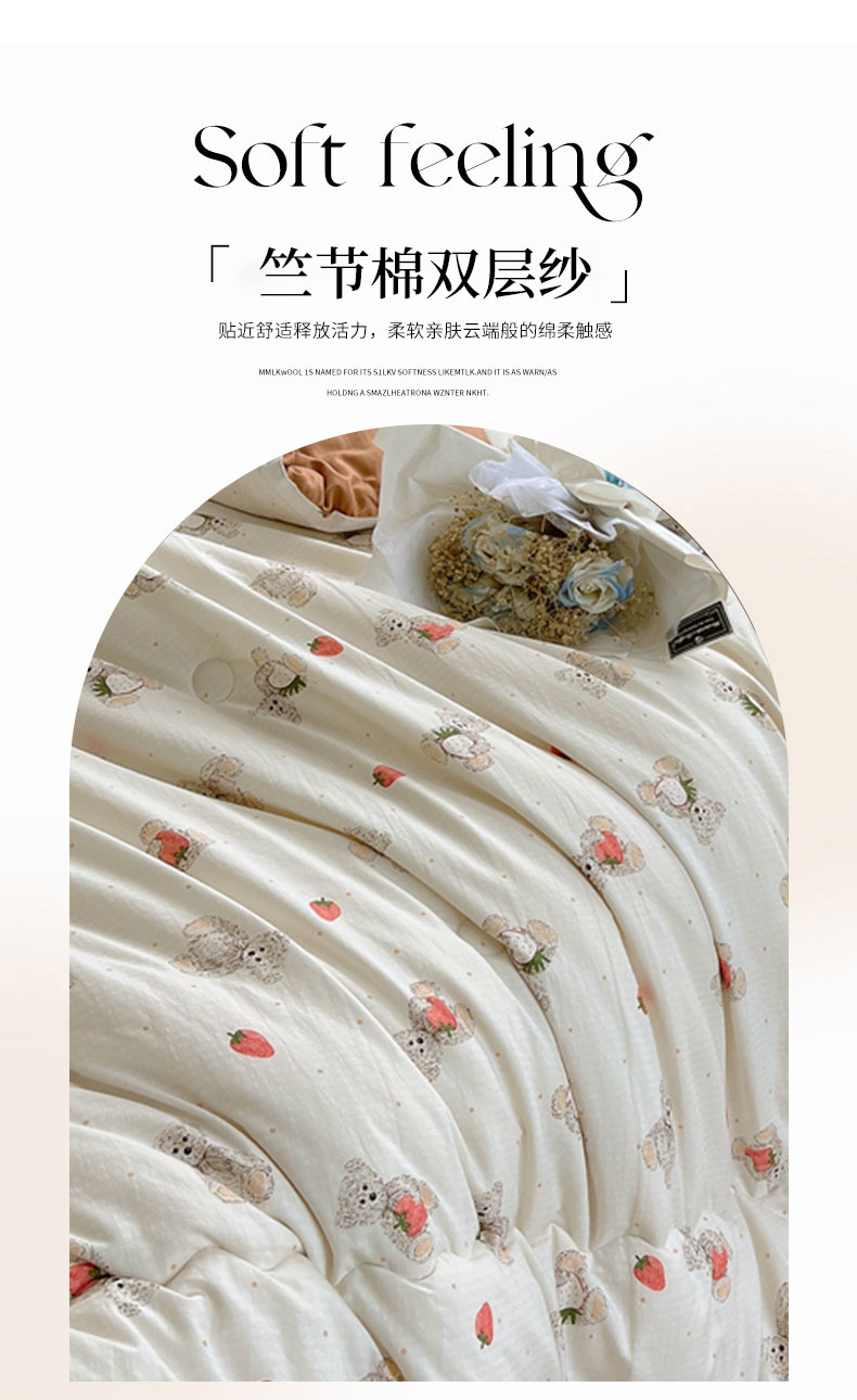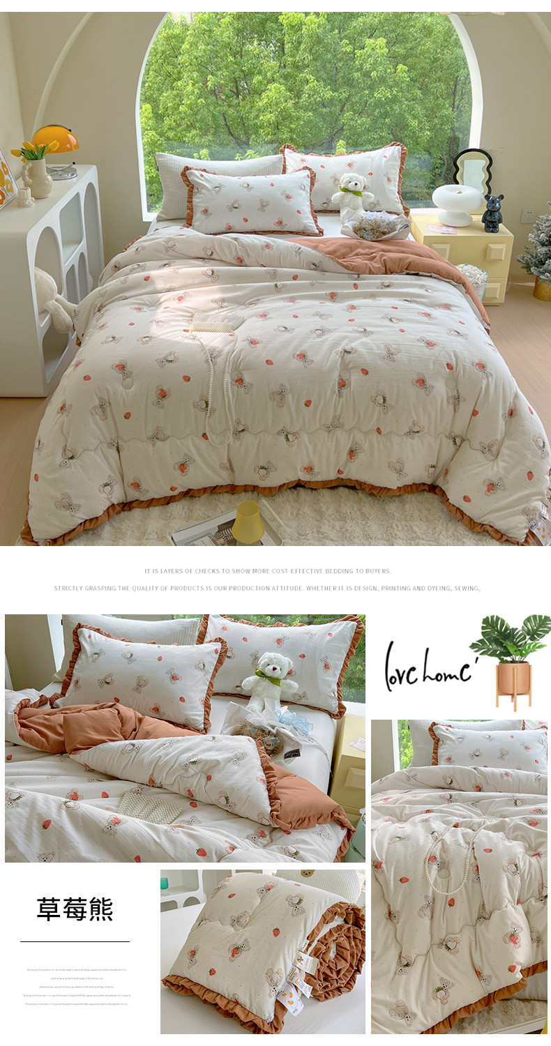 商品名称:典冠 2024新款有氧提花竺节棉双层纱大豆被春秋被冬被 草莓熊