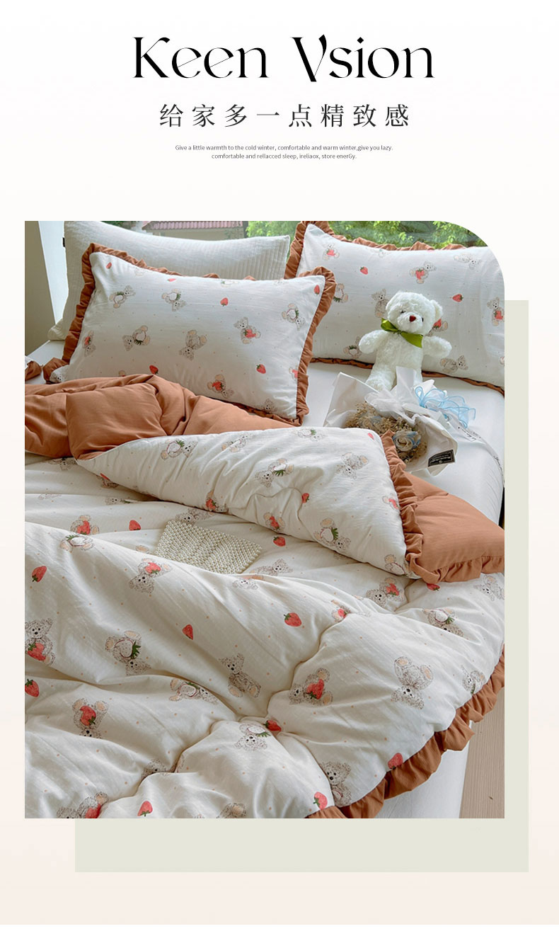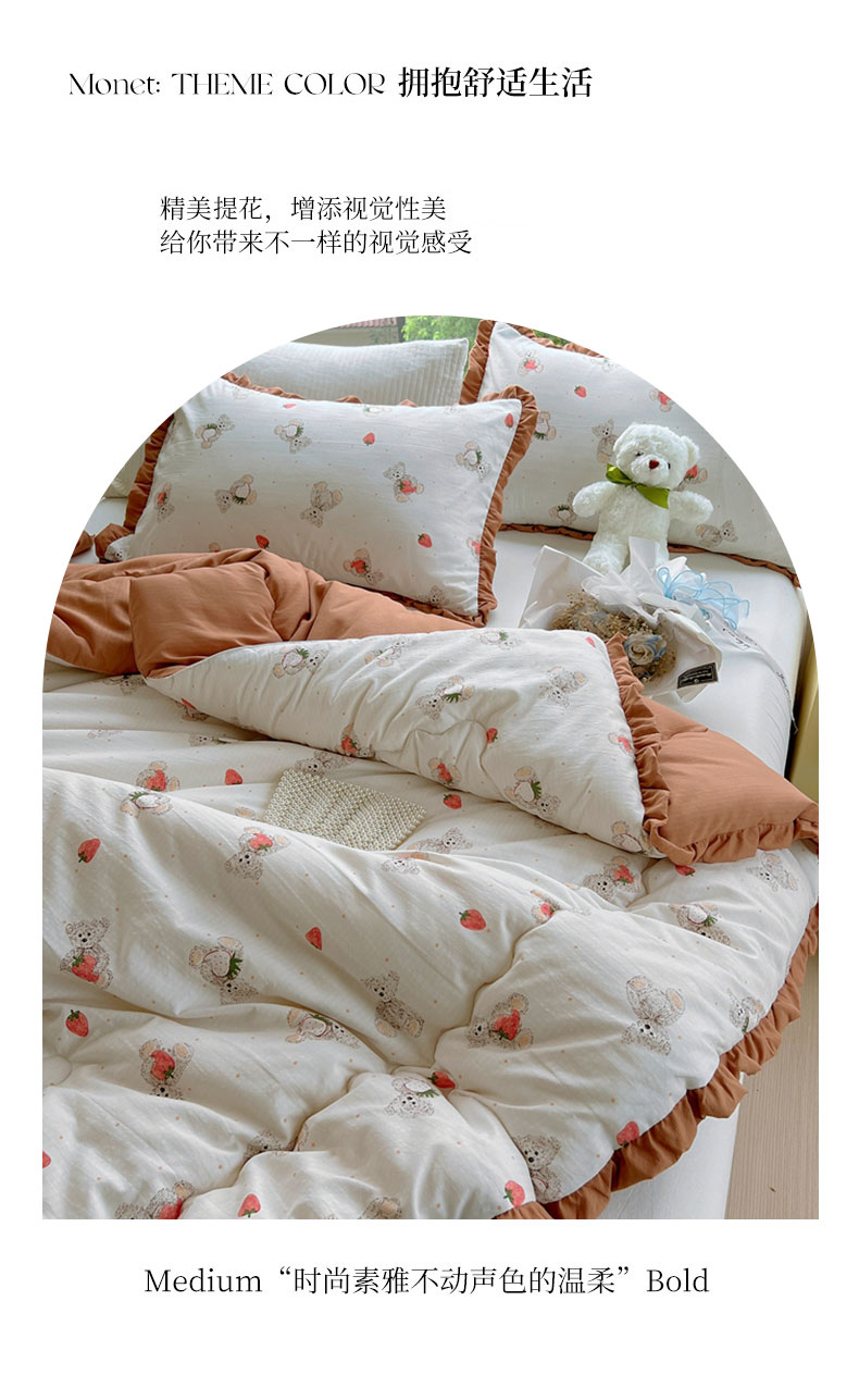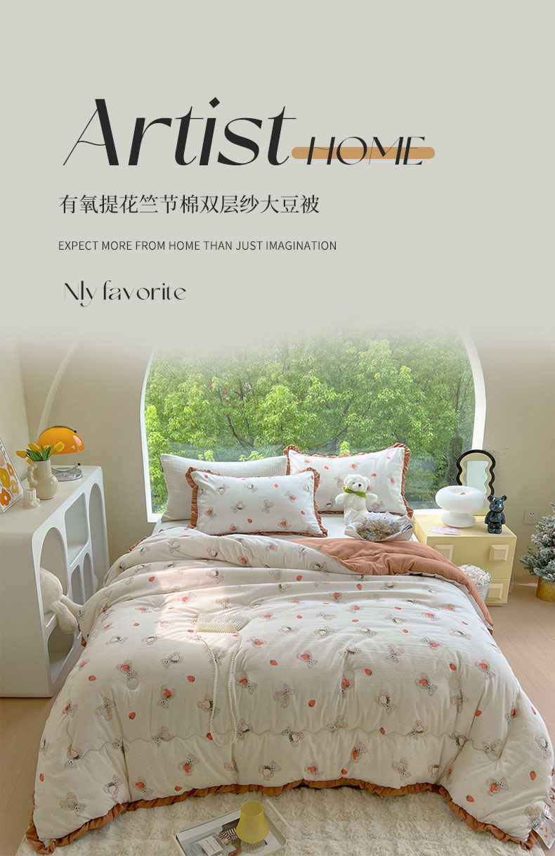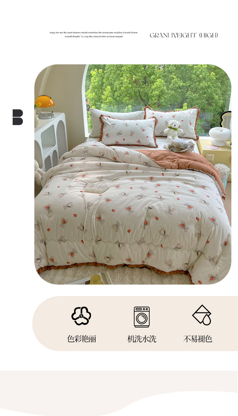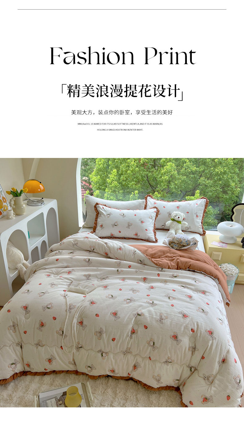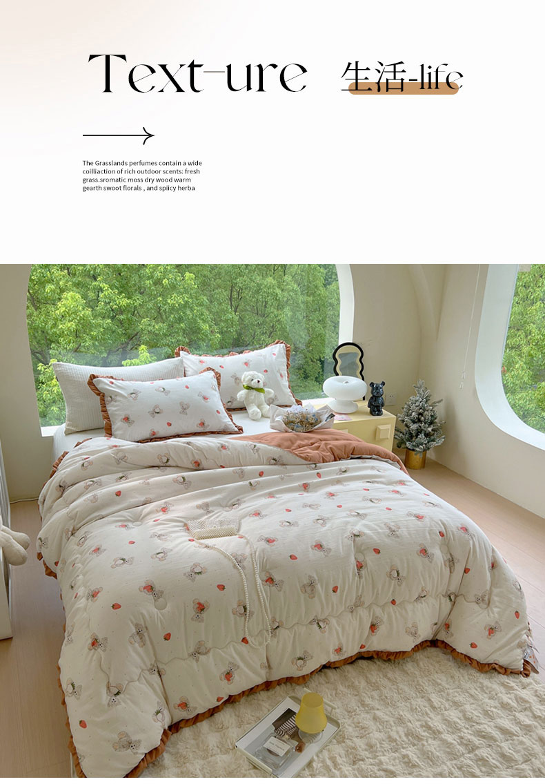 商品名称:典冠 2024新款有氧提花竺节棉双层纱大豆被春秋被冬被 草莓熊