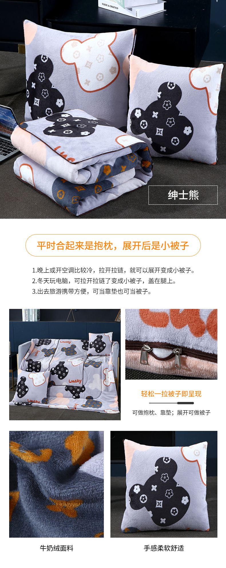 商品名称:伊可爱抱枕被 2023新款多功能牛奶绒印花抱枕被 绅士熊