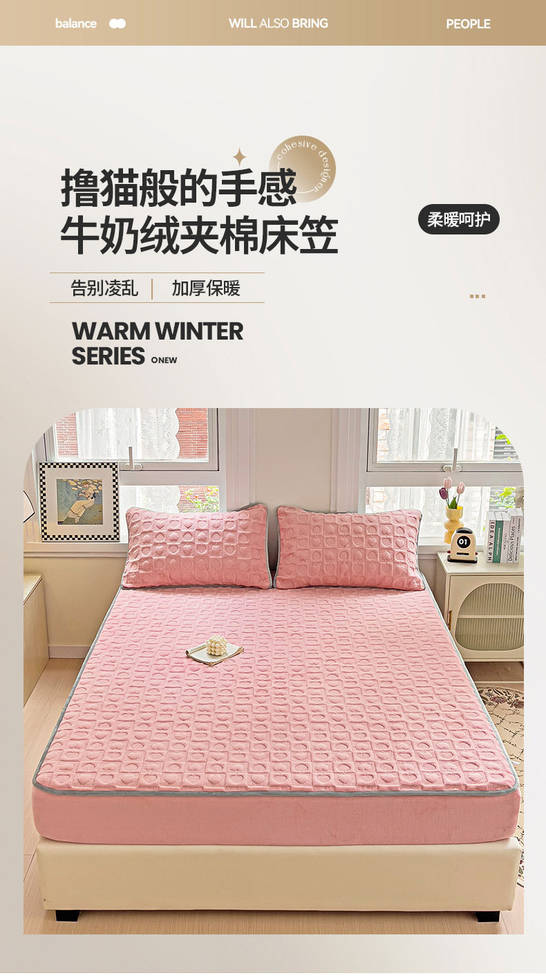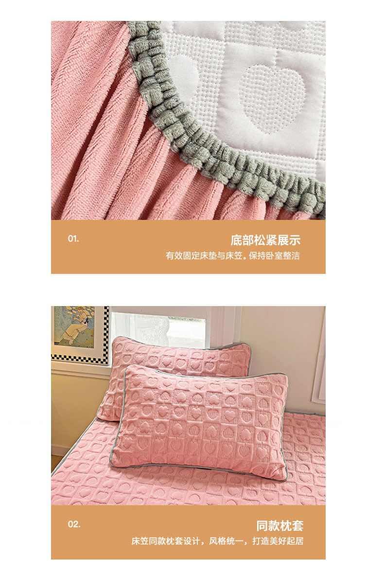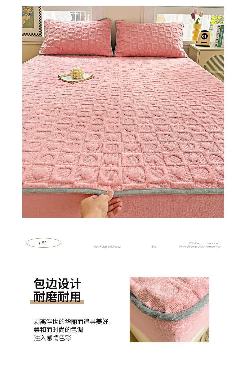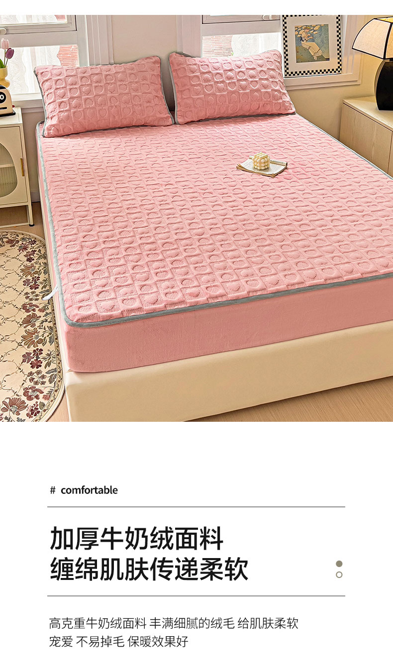 • 91家纺网 家纺一手货源 找家纺 法澳 2024新款爱心牛奶绒夹棉床笠可搭配被套 藕粉