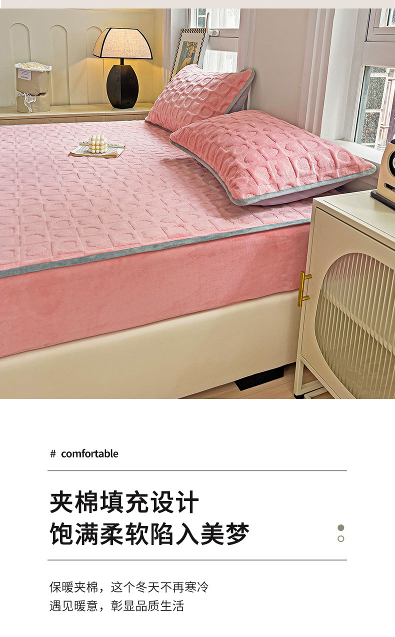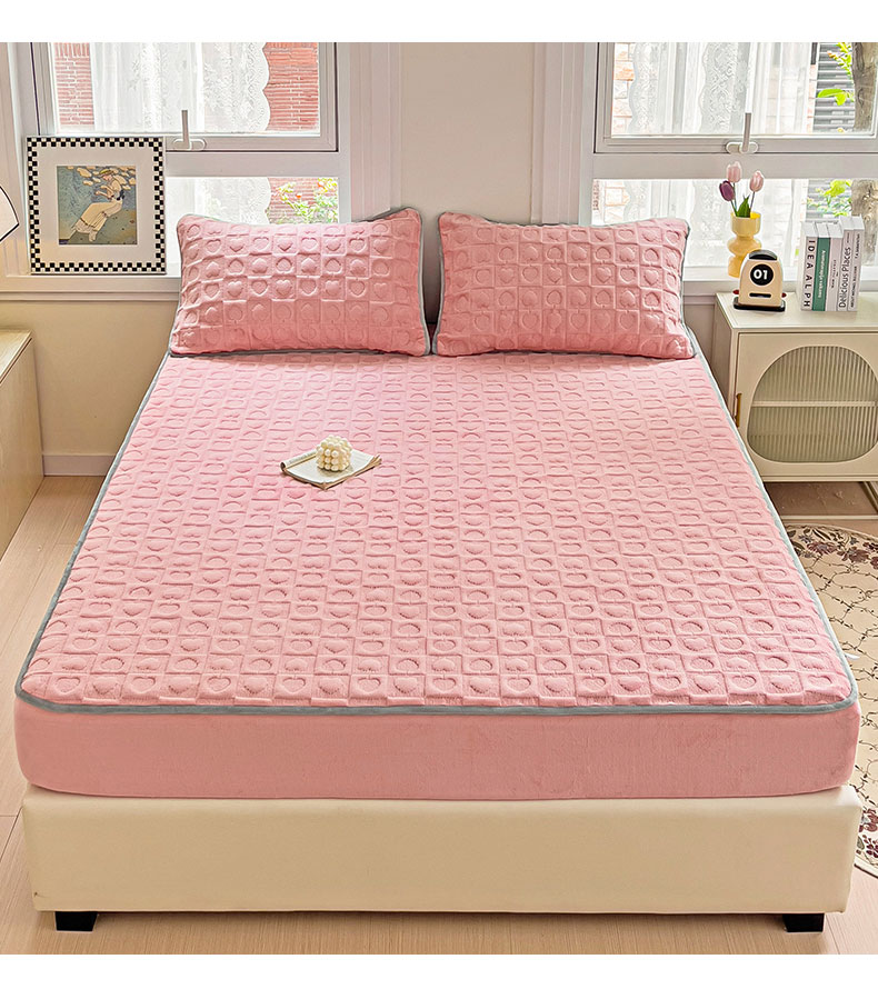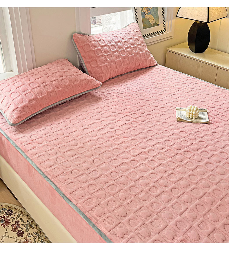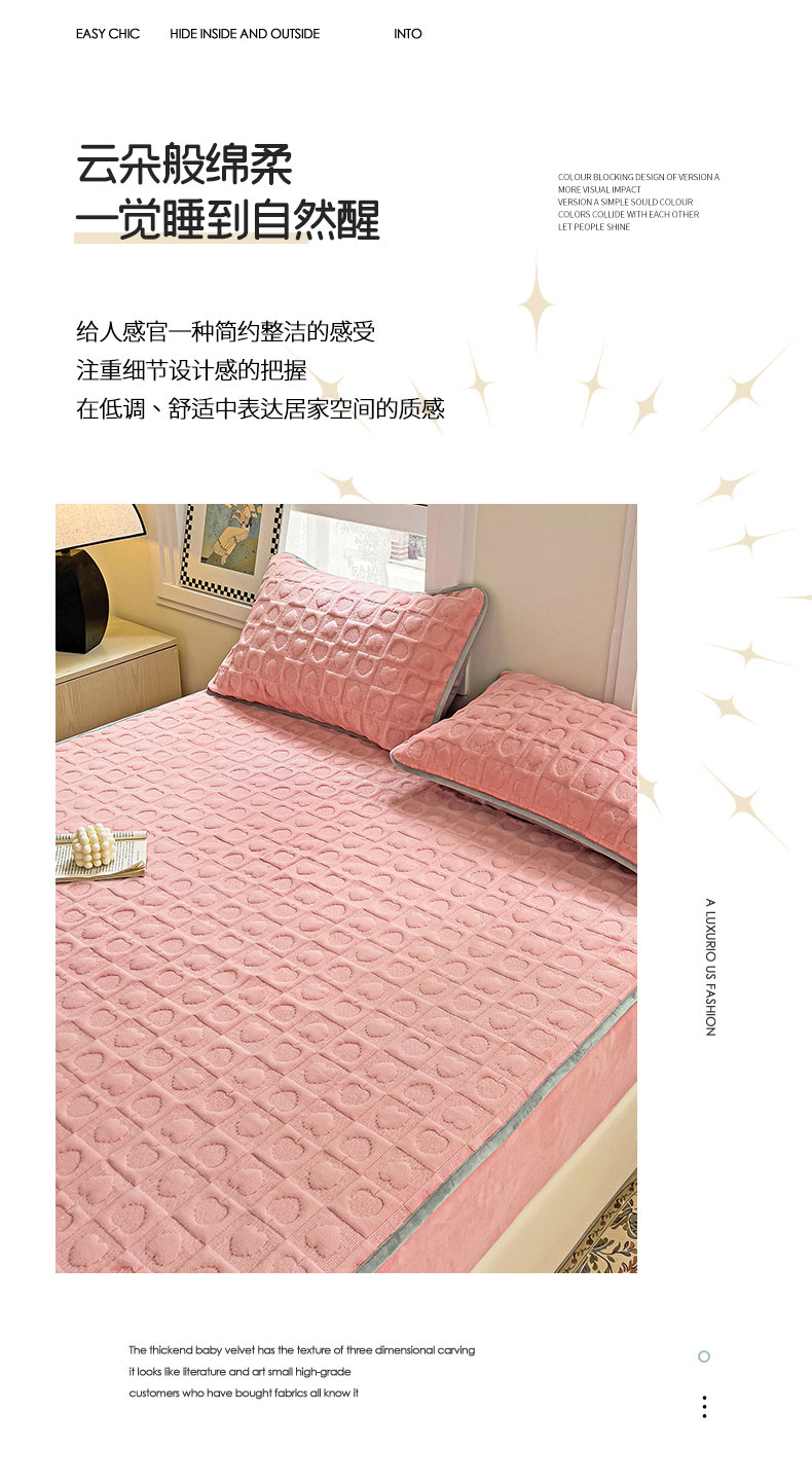 • 91家纺网 家纺一手货源 找家纺 法澳 2024新款爱心牛奶绒夹棉床笠可搭配被套 藕粉