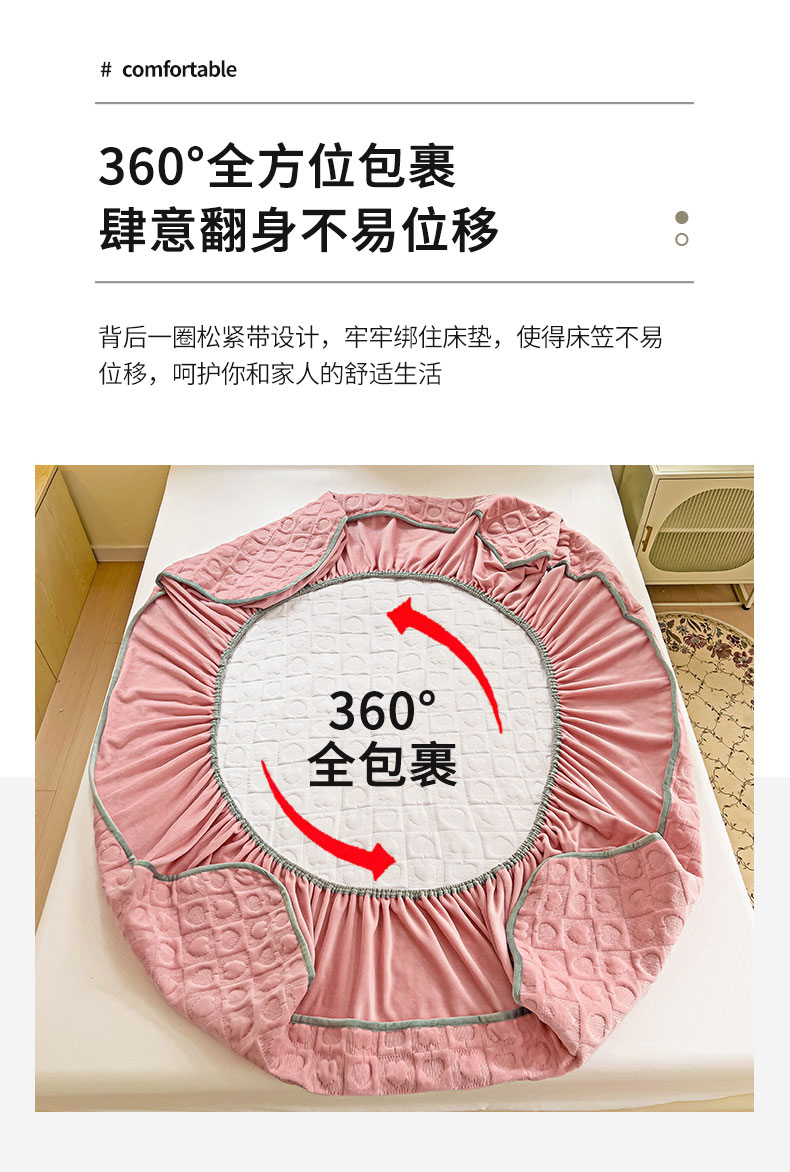 法澳 2024新款爱心牛奶绒夹棉床笠可搭配被套 藕粉