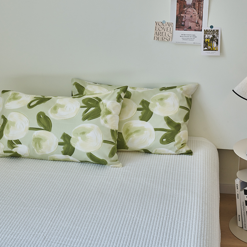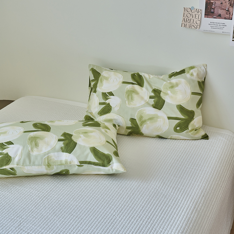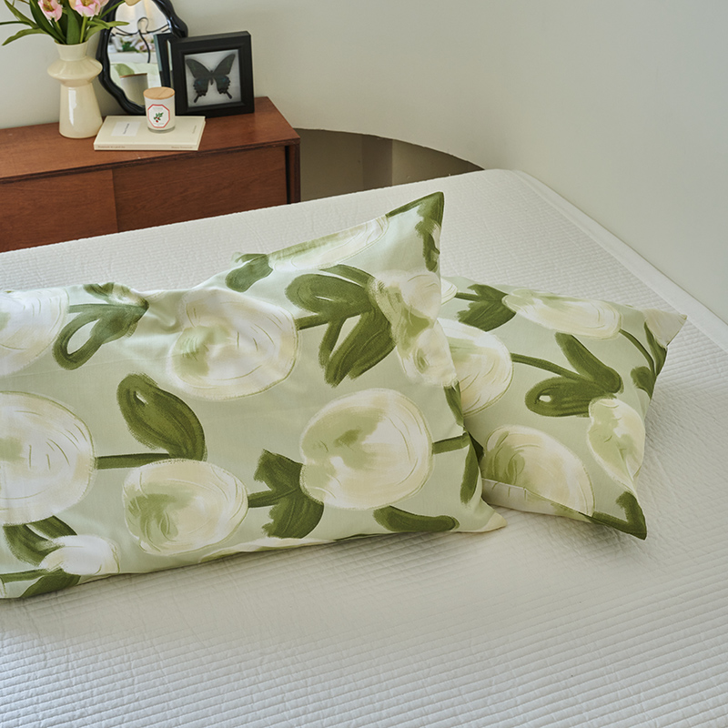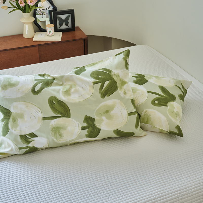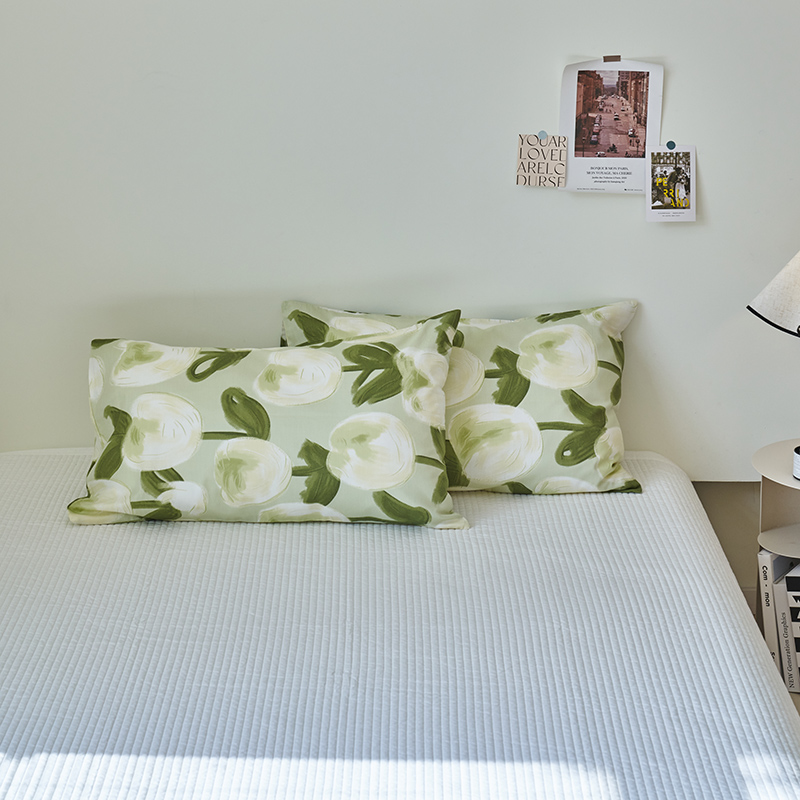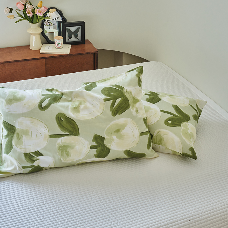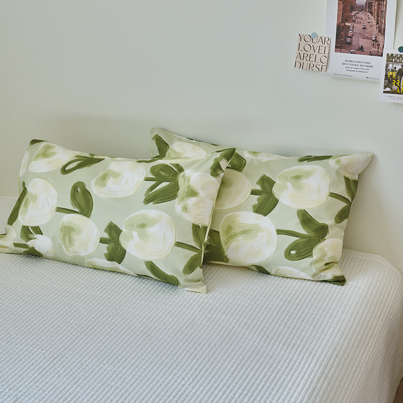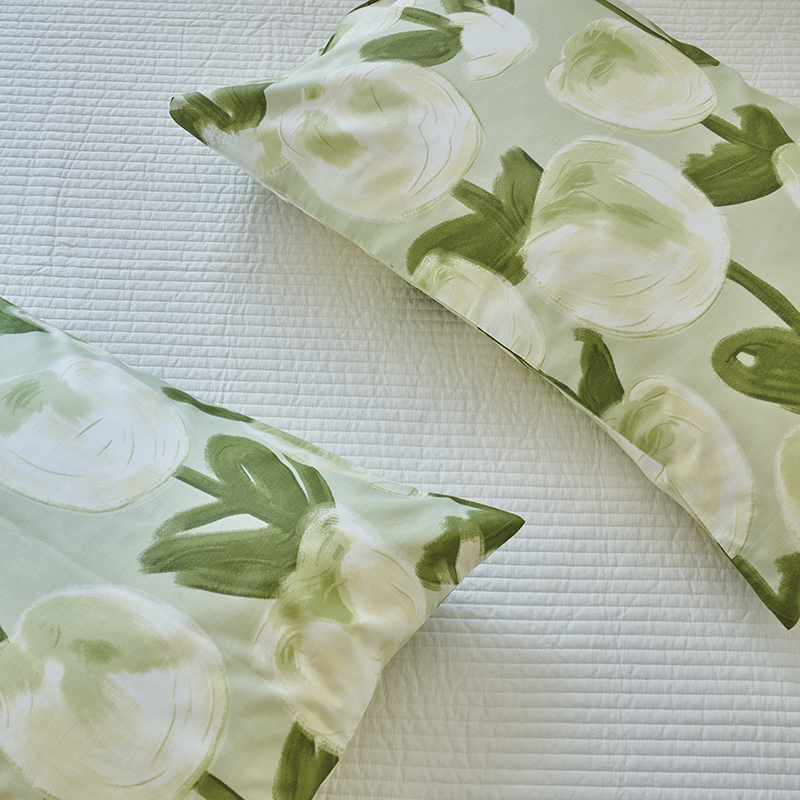 窝米2023新品13370全棉印花单品系列枕套 梨涡绿枕套
