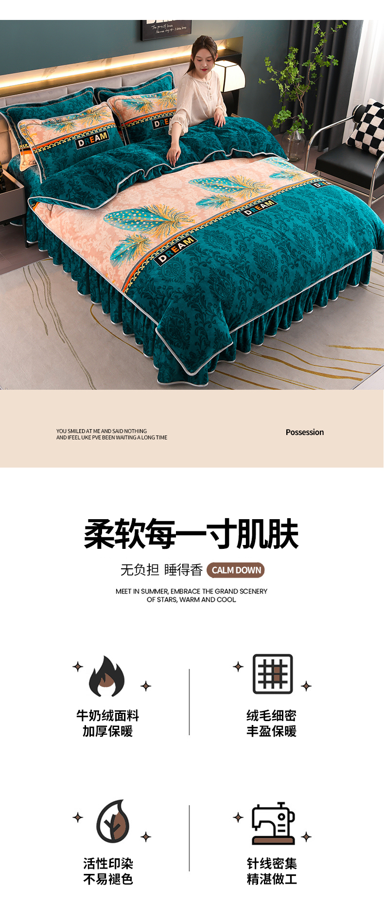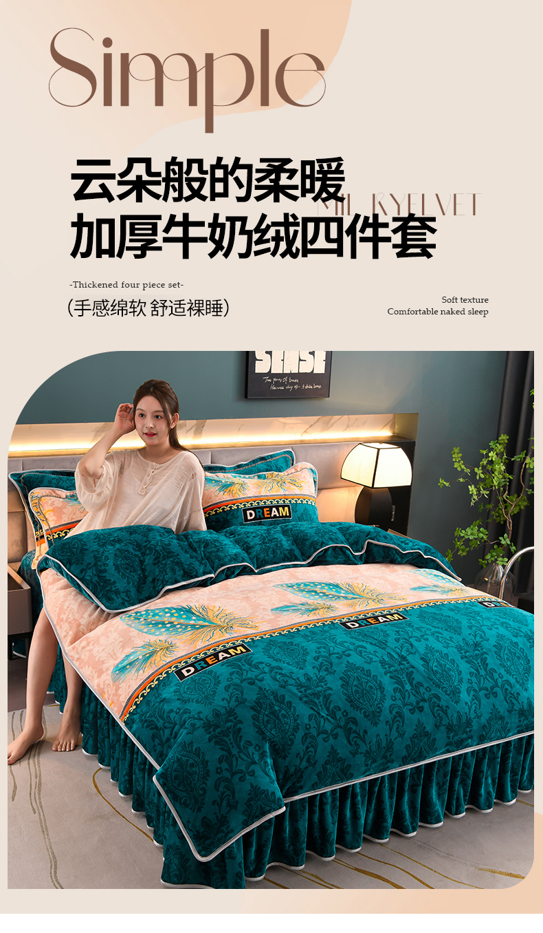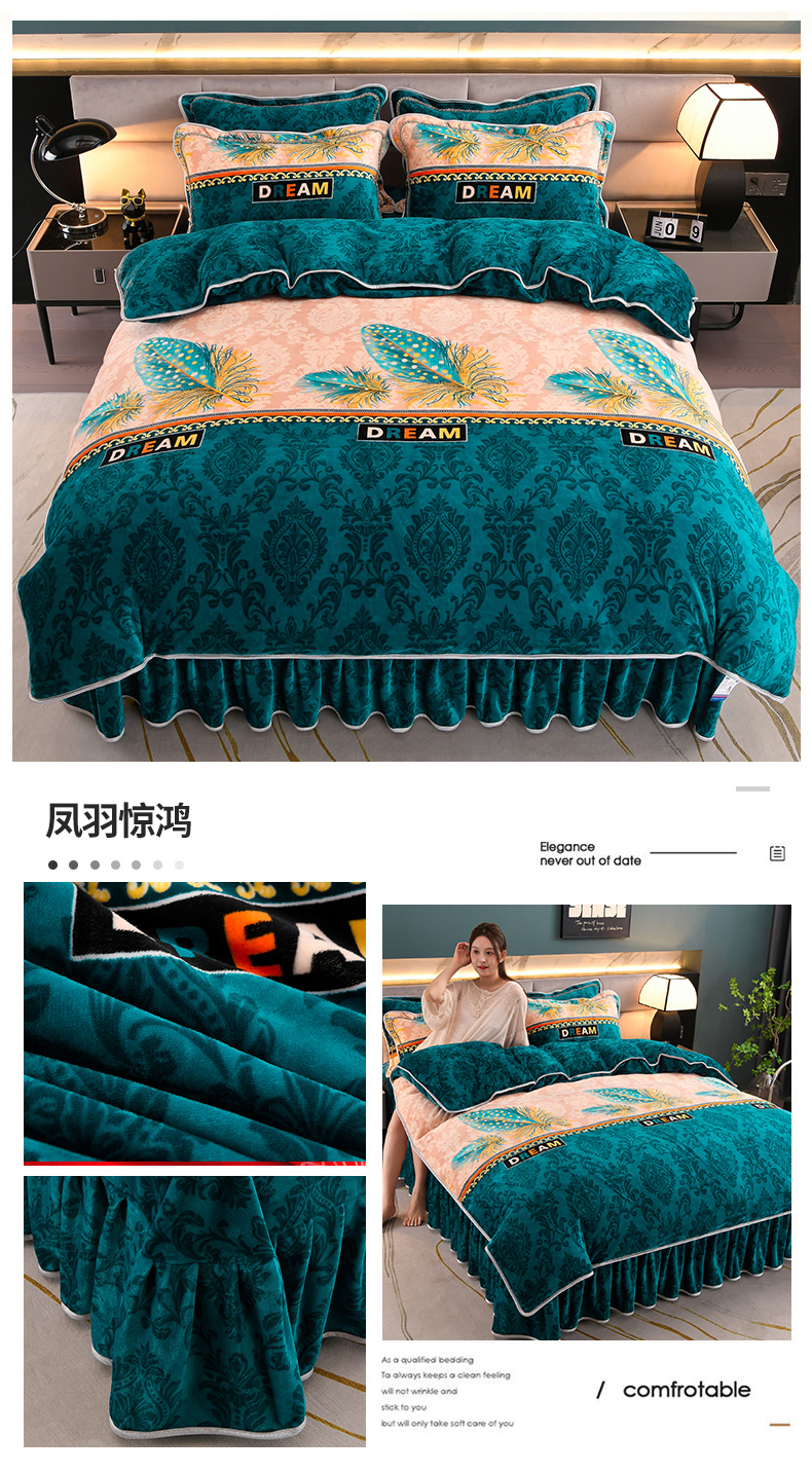 商品名称:金柚子 2024新款加厚牛奶绒四件套 凤羽惊鸿