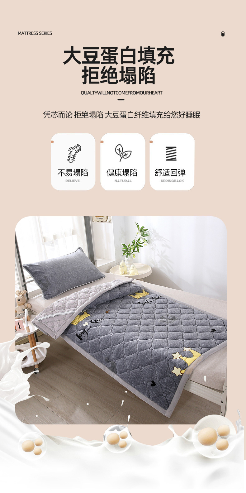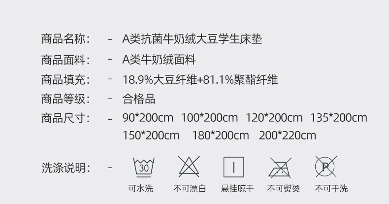 当前位置: 91家纺网 > 商品网购 > 床垫/床褥 > 普通床垫 > 东宇床垫 2025新款A类抗菌牛奶绒加厚大豆学生床垫 皇冠
