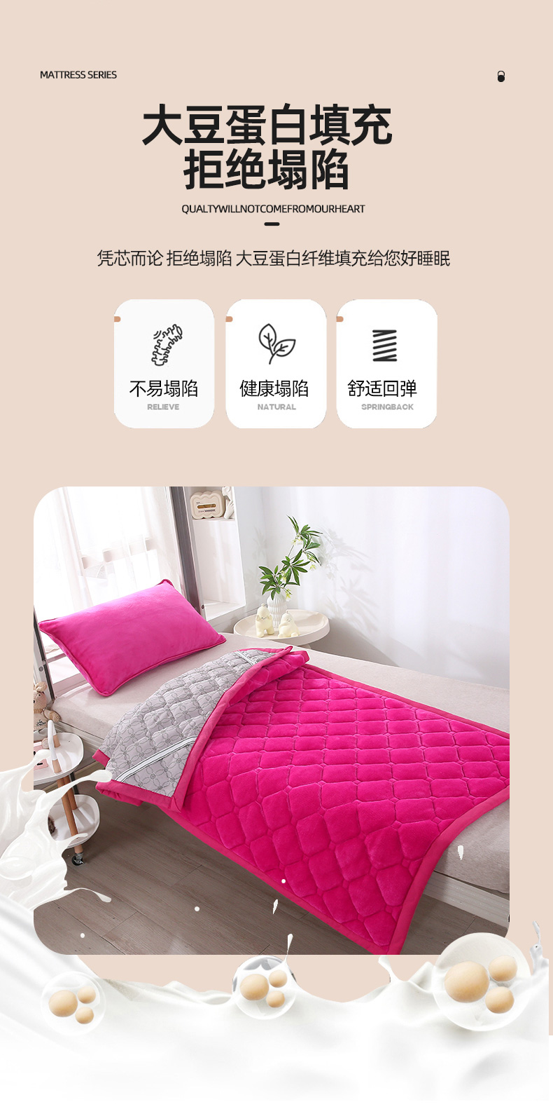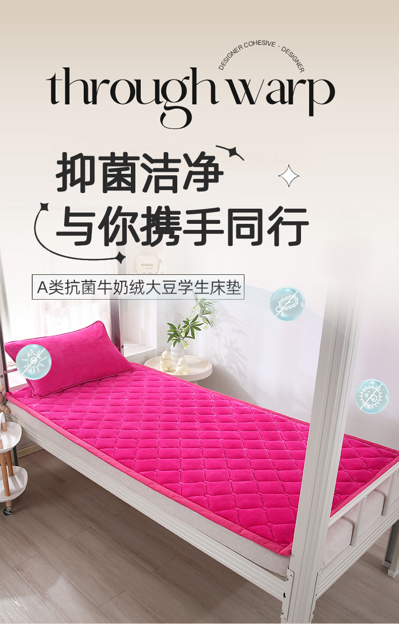 当前位置: 91家纺网 > 商品网购 > 床垫/床褥 > 普通床垫 > 东宇床垫 2025新款A类抗菌牛奶绒加厚大豆学生床垫 玫红