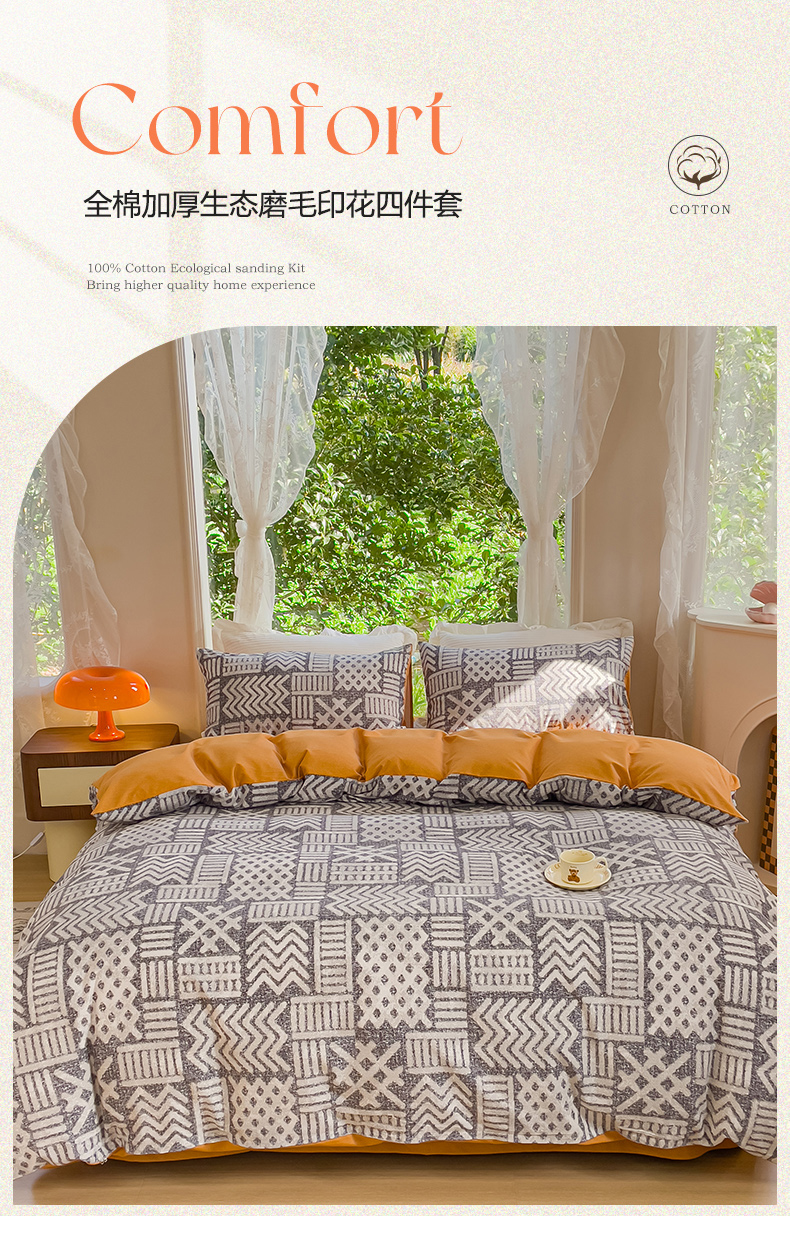 (总)感遇家纺 2021新款春夏新品全棉四件套纯棉三件套,AB熊,小情调-灰,小情调-桔,小情调-蓝,英伦熊-灰,律动,迷你熊