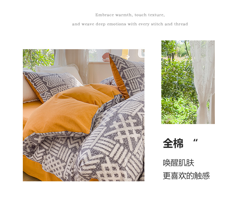 商品名称:感遇家纺 2023新款印花系列全棉生态磨毛加厚四件套 梵高黄