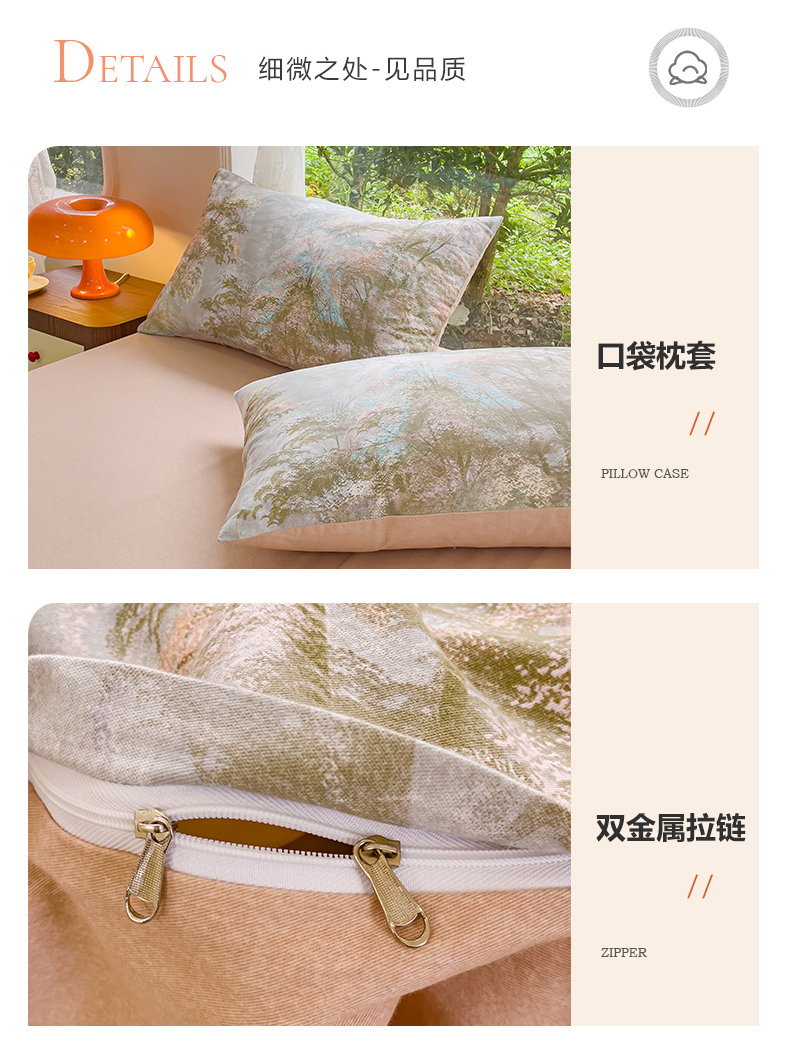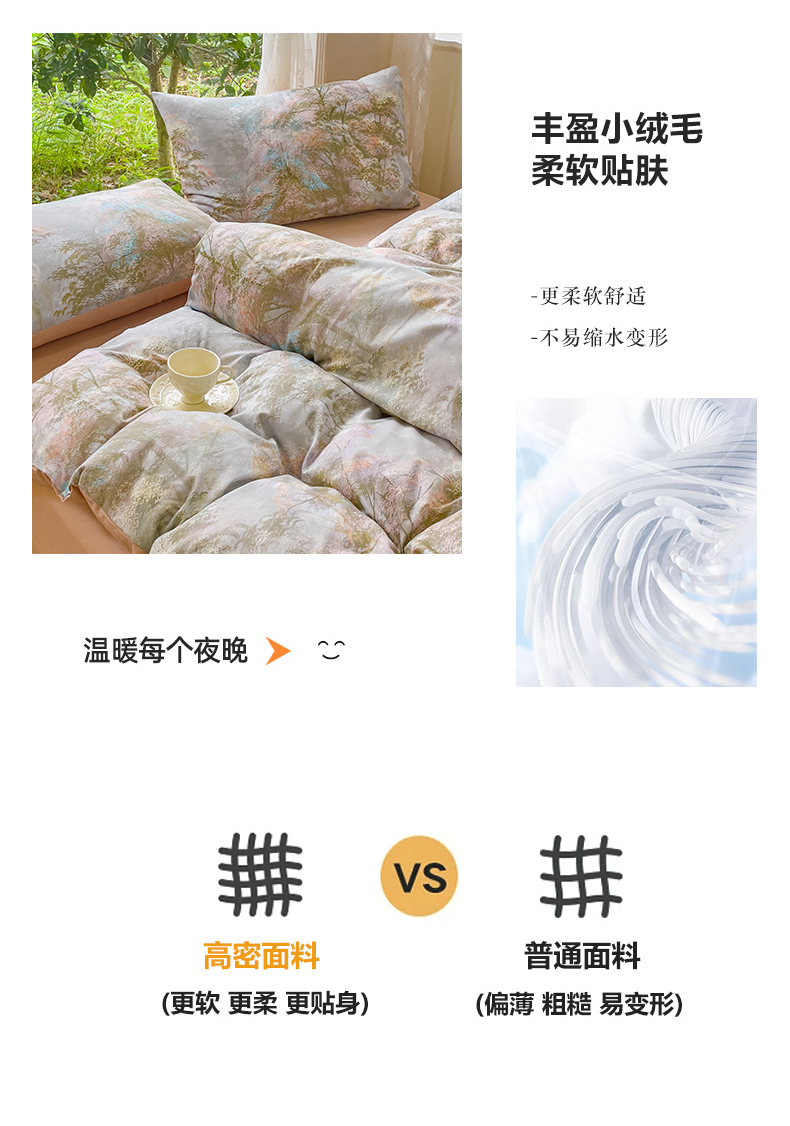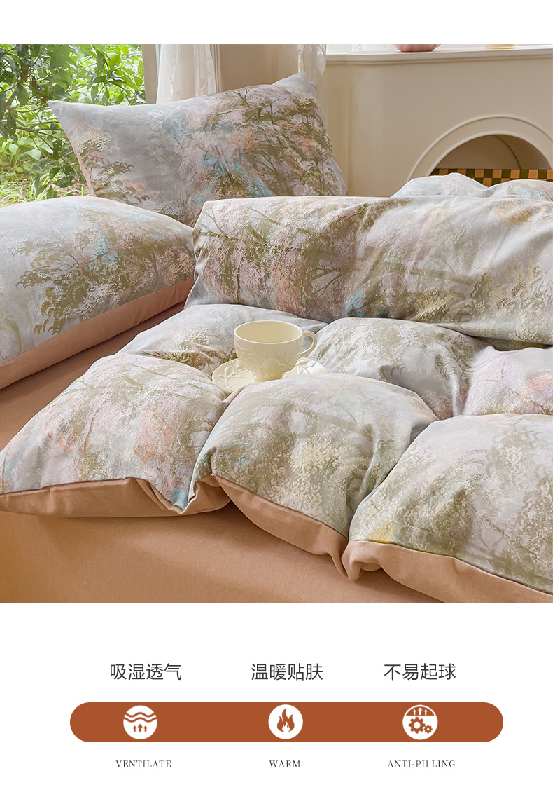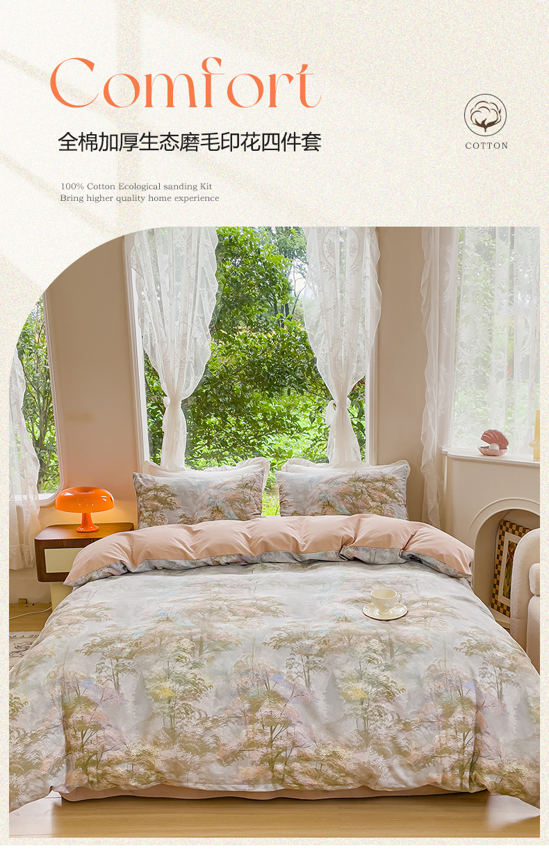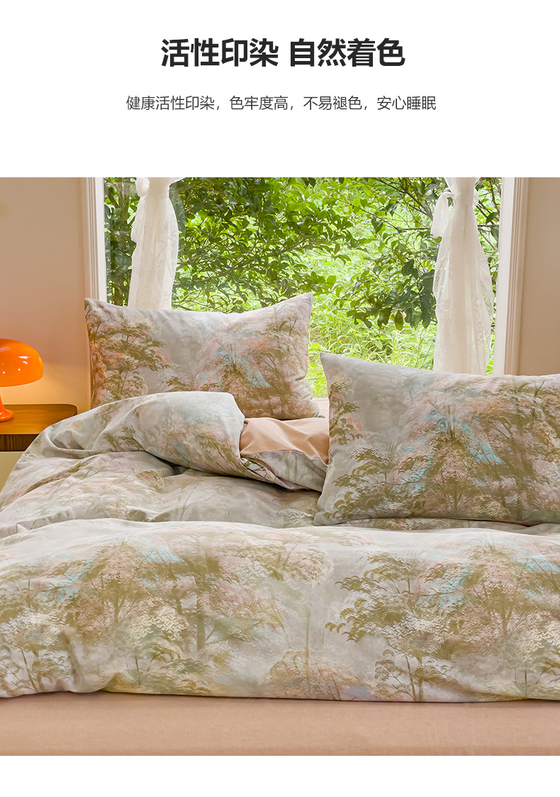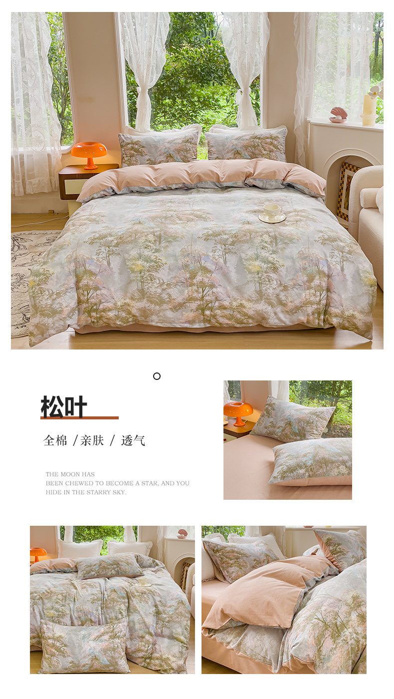 商品名称:感遇家纺 2023新款印花系列全棉生态磨毛加厚四件套 松叶