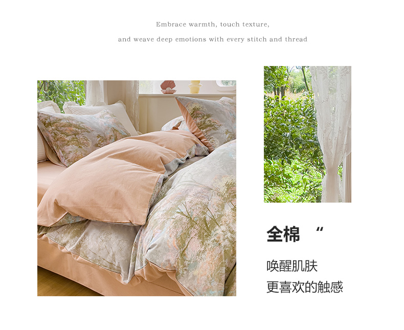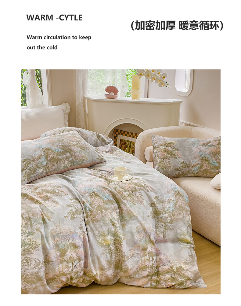 感遇家纺 2023新款印花系列全棉生态磨毛加厚四件套 松叶