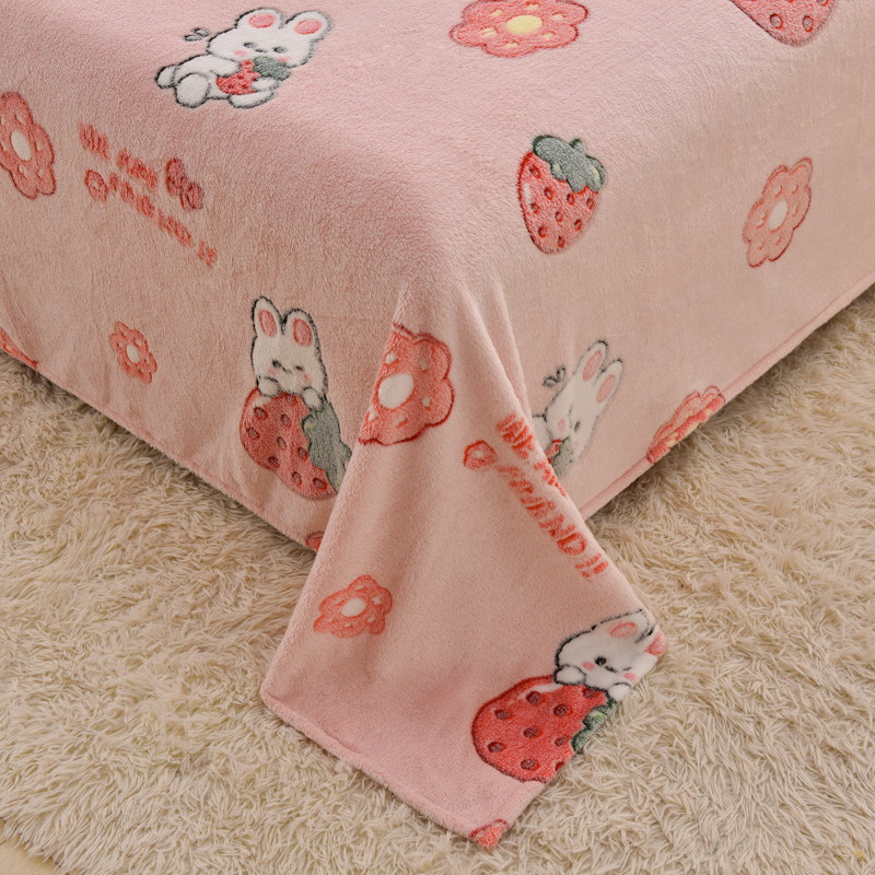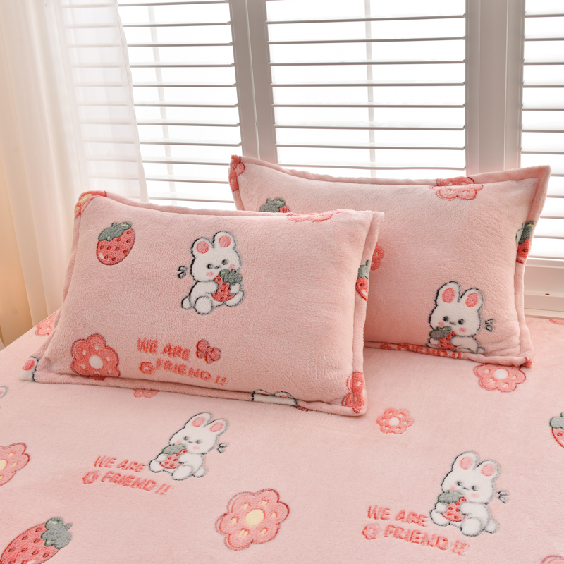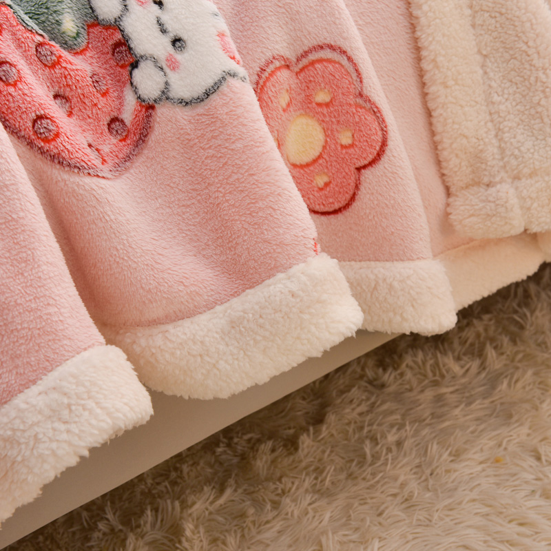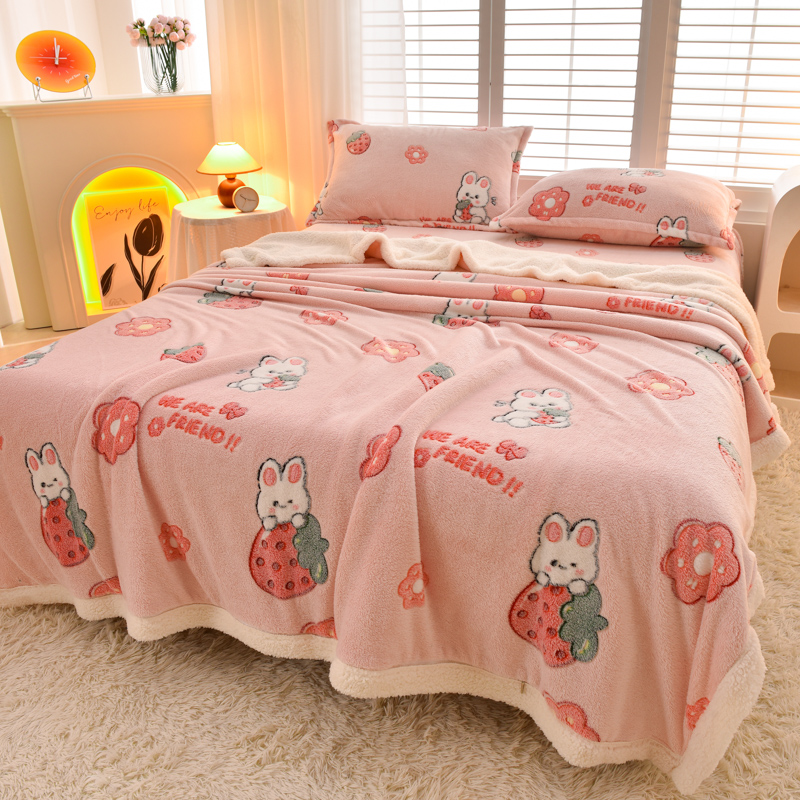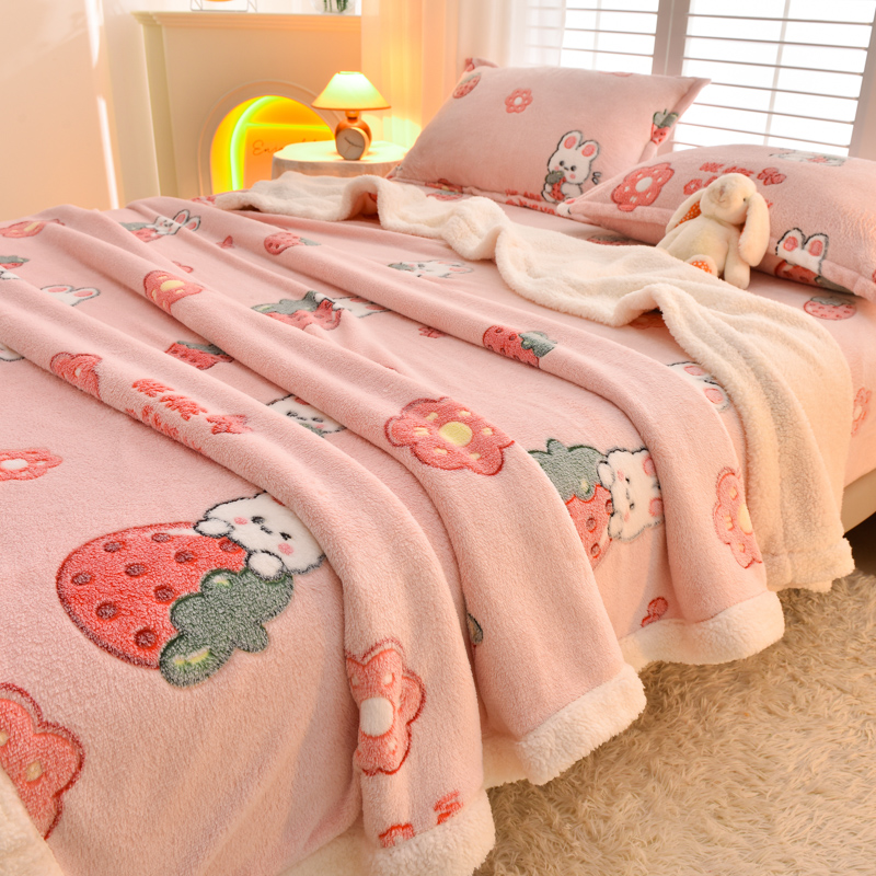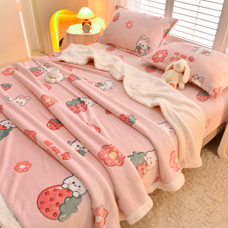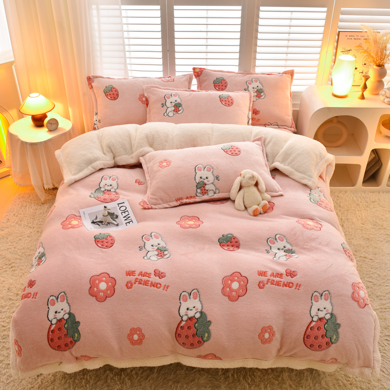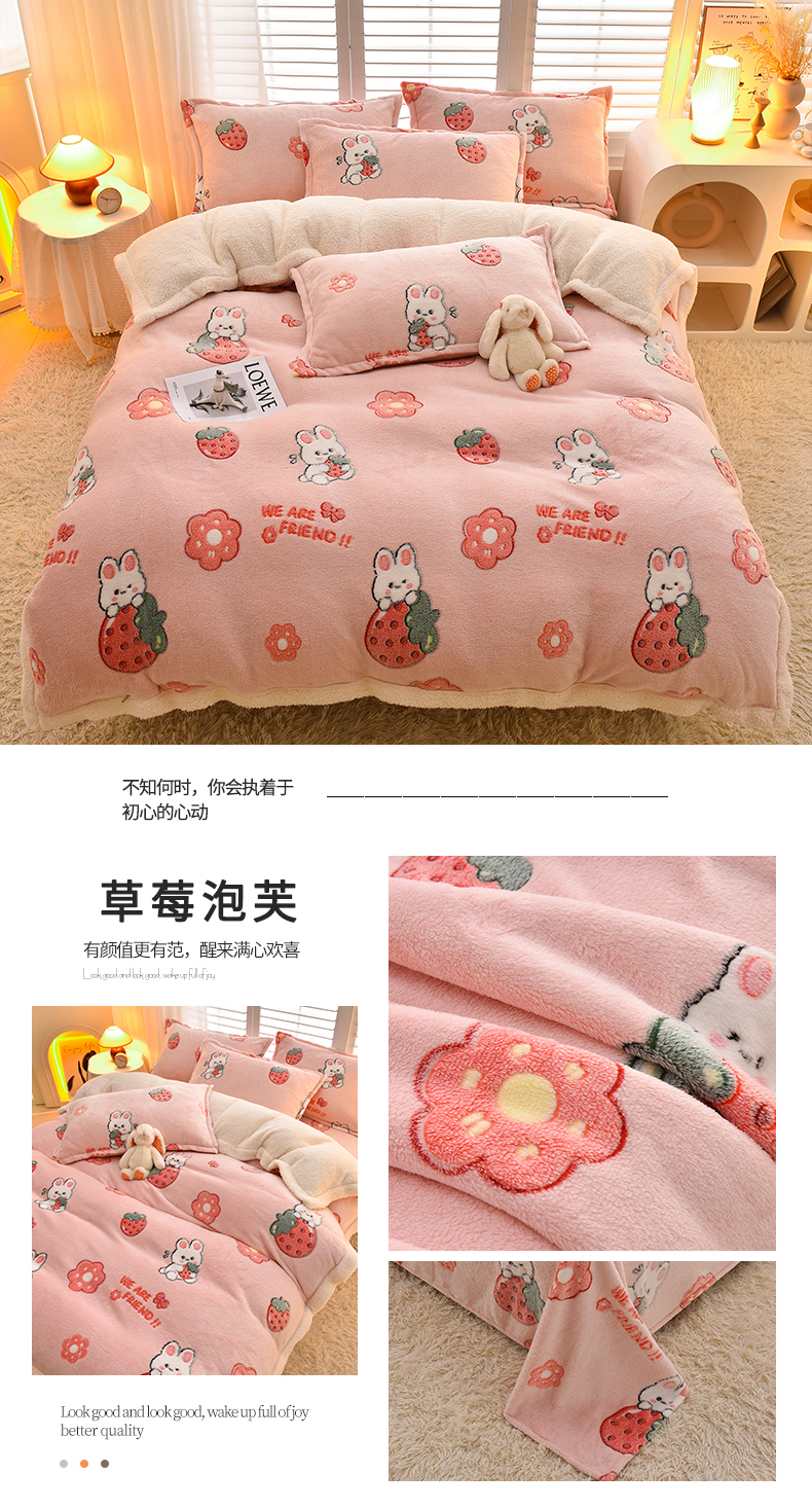 商品名称:同田家纺 2023年新款雪花绒&羊羔绒四件套 草莓泡芙