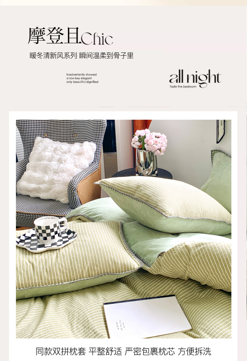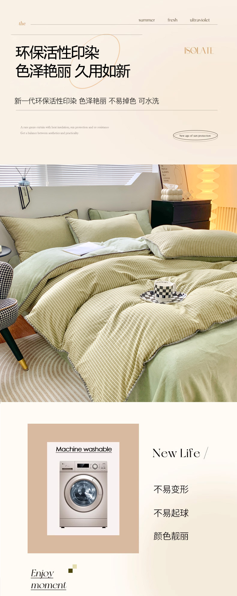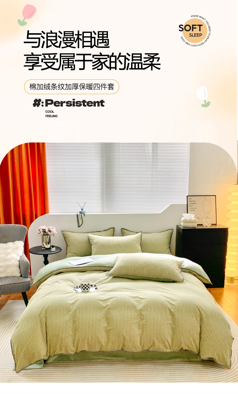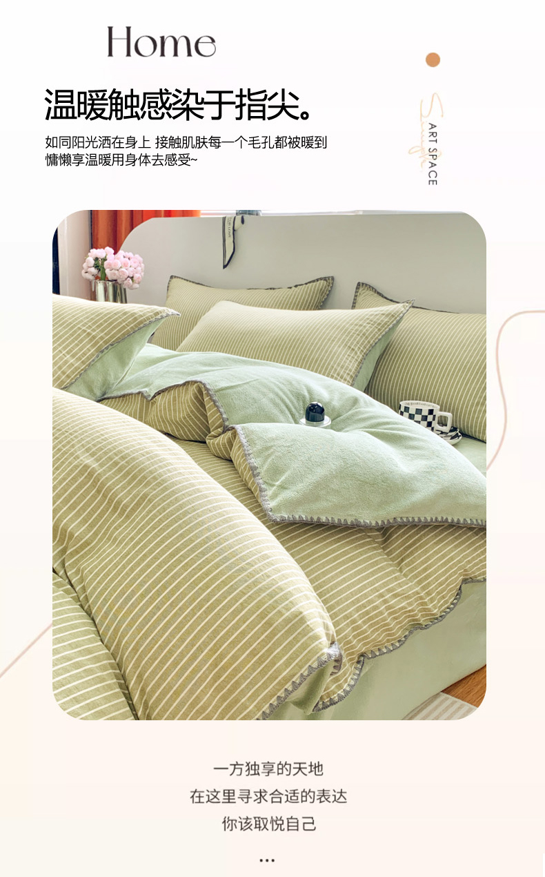 当前位置: 91家纺网 > 商品网购 > 床品套件 > 四件套 > 牛奶绒四件套 > 柠馨 2023贝壳边全棉水洗棉牛奶绒四件套含买家秀 贝壳棉绒绿条纹