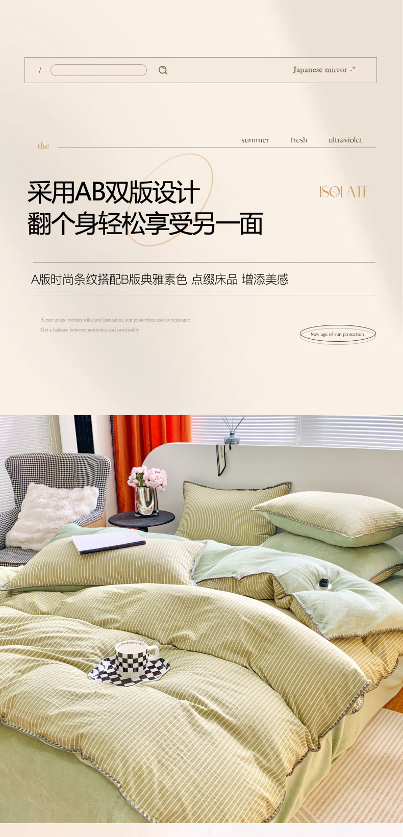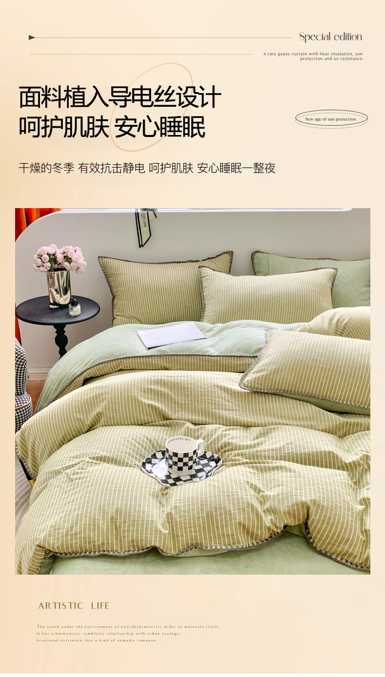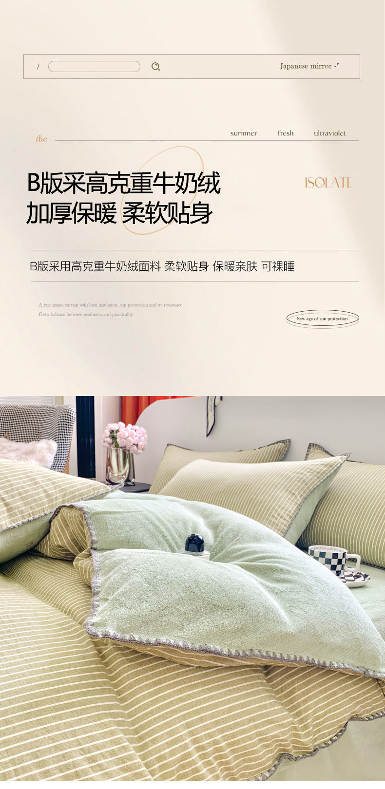 当前位置: 91家纺网 > 商品网购 > 床品套件 > 四件套 > 牛奶绒四件套 > 柠馨 2023贝壳边全棉水洗棉牛奶绒四件套含买家秀 贝壳棉绒绿条纹