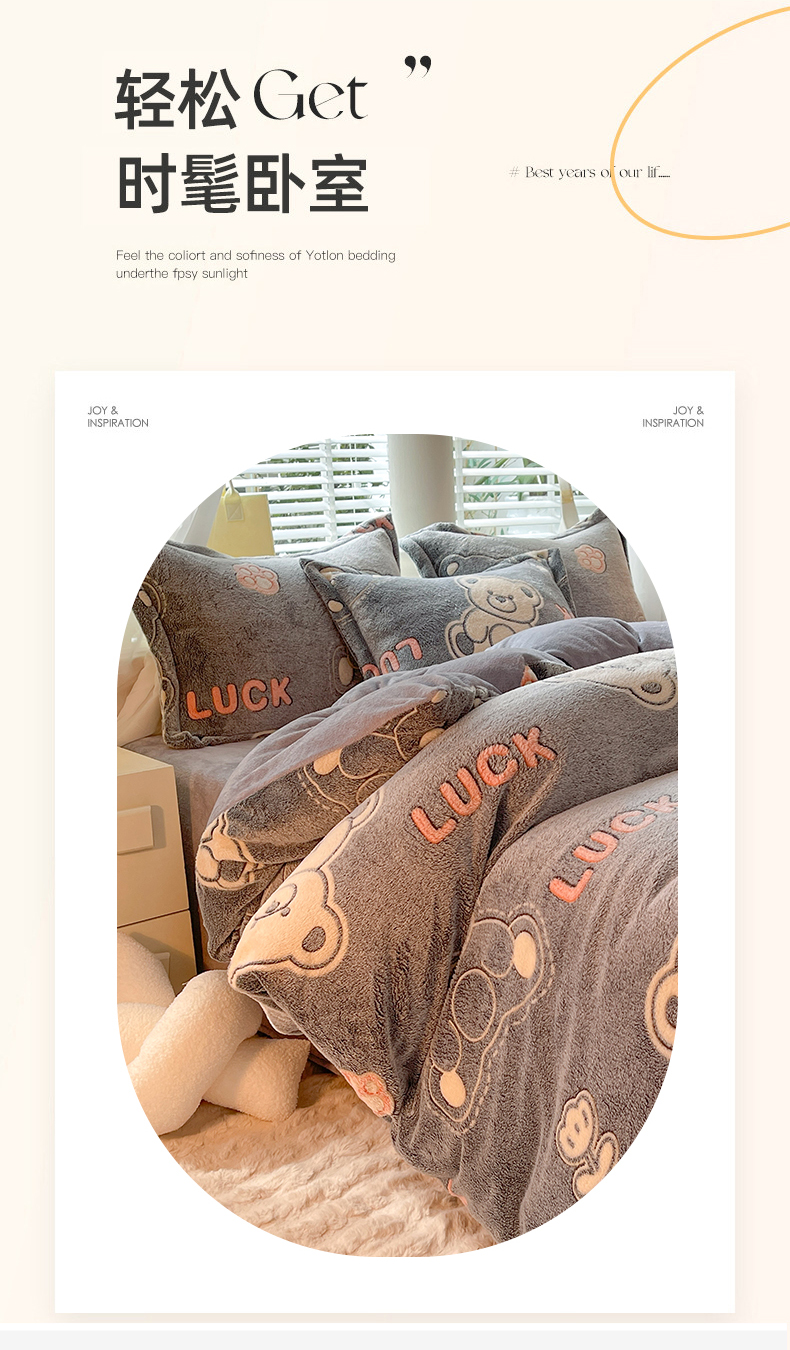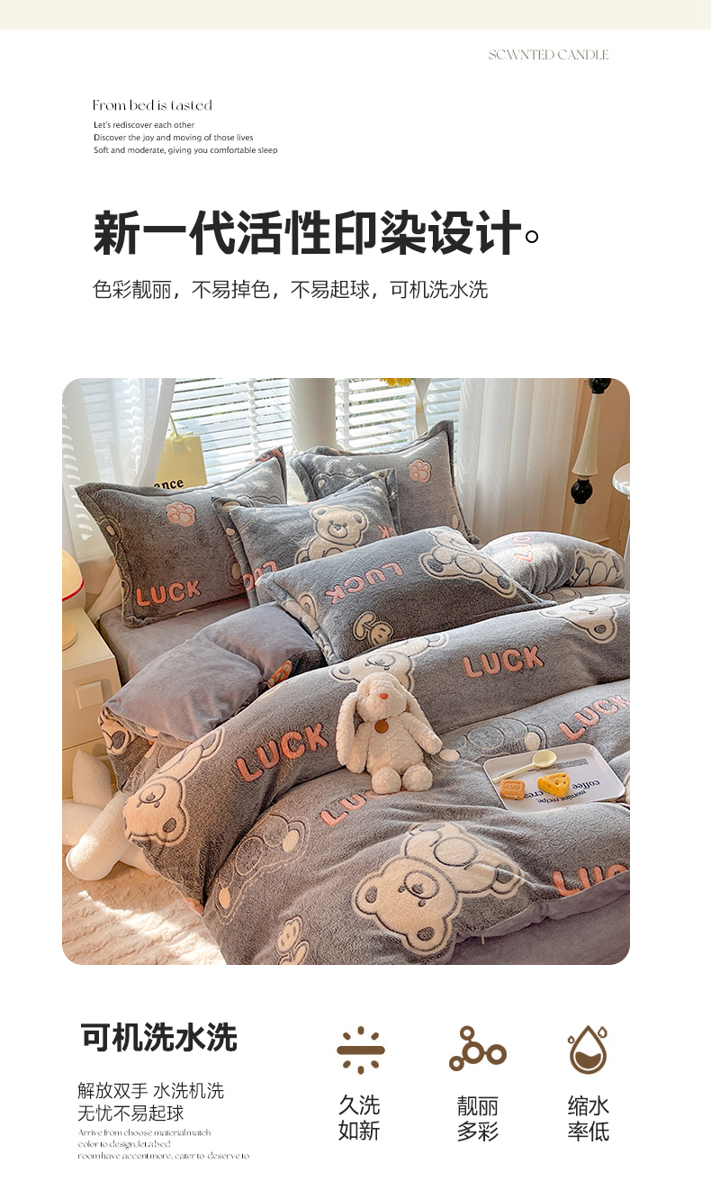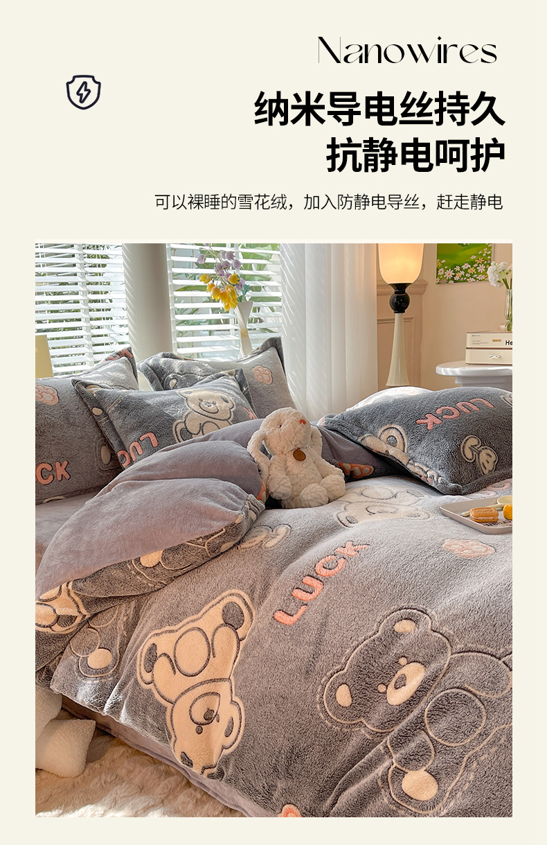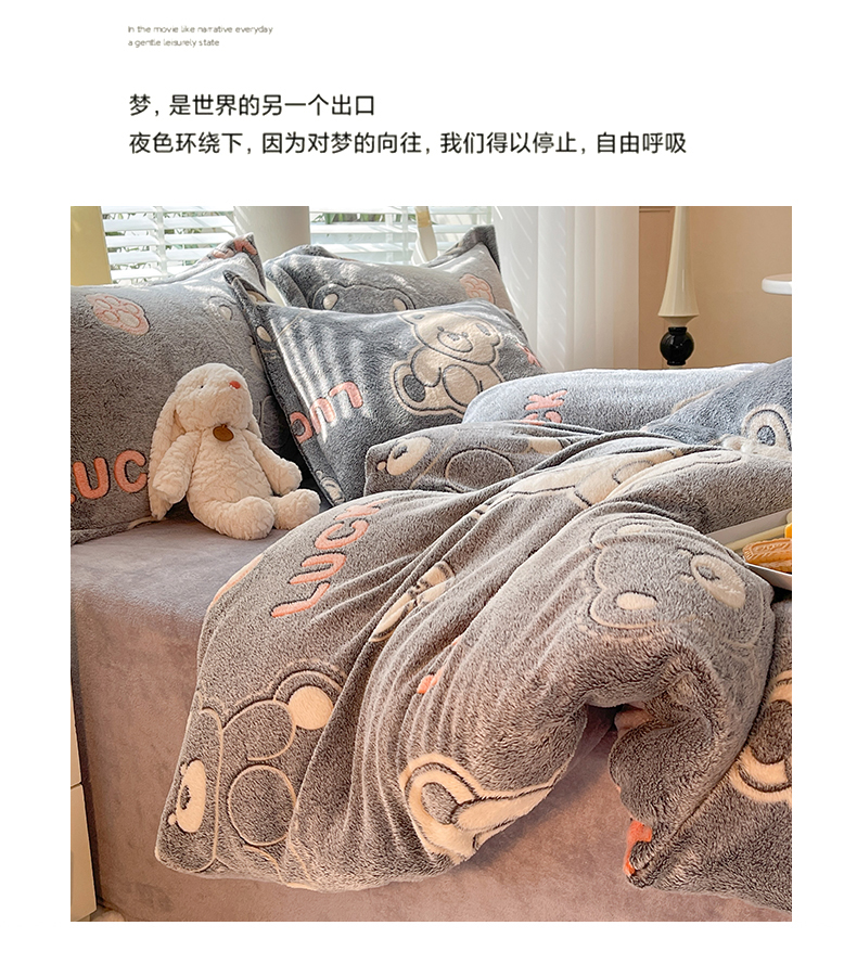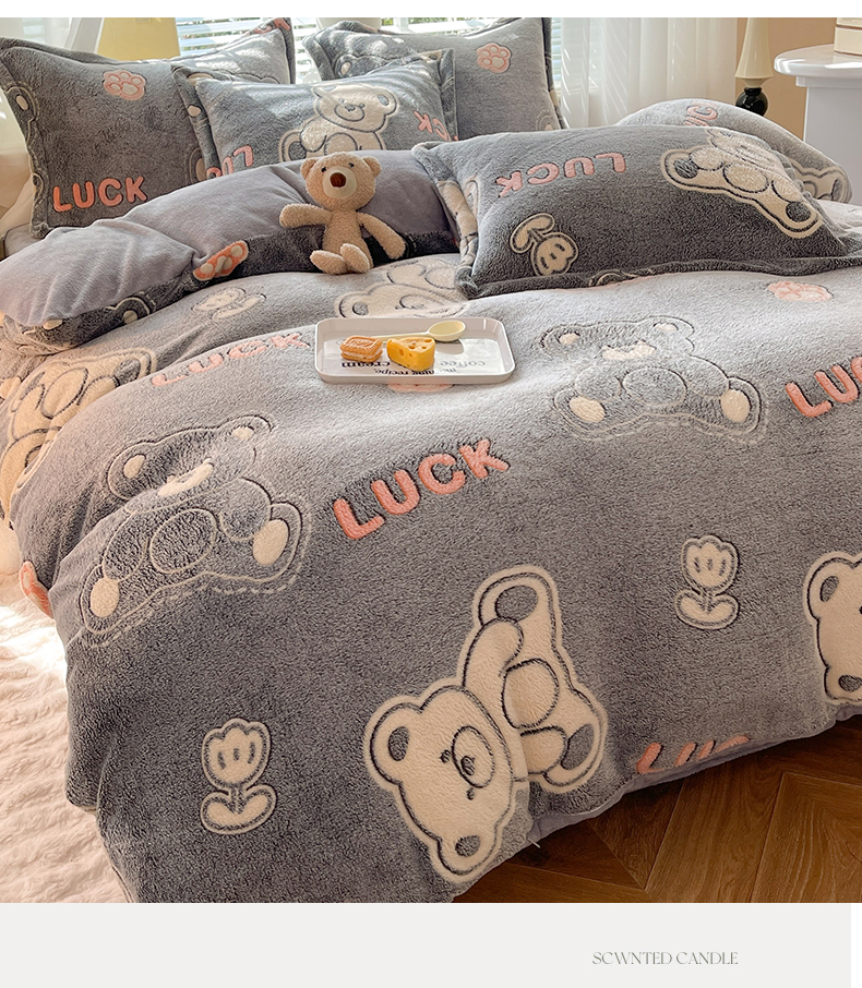 当前位置: 91家纺网 > 商品网购 > 床品套件 > 四件套 > 全棉普通四件套 > 妖妖家纺 2023新款妖妖雪花绒单品三四件套 幸运熊