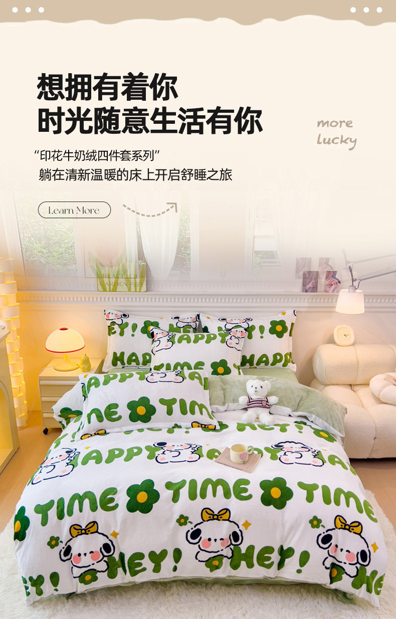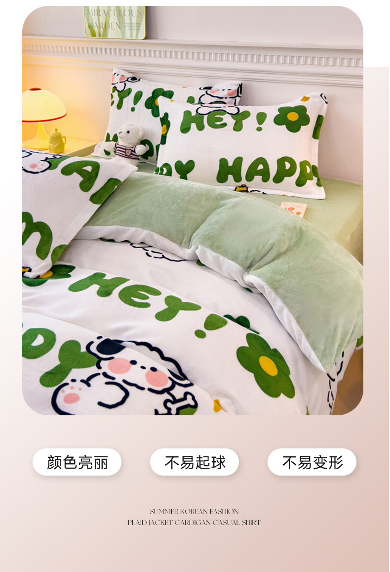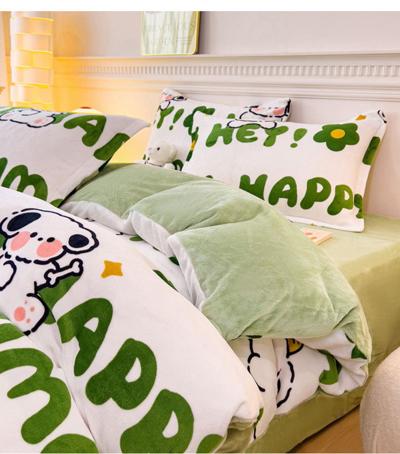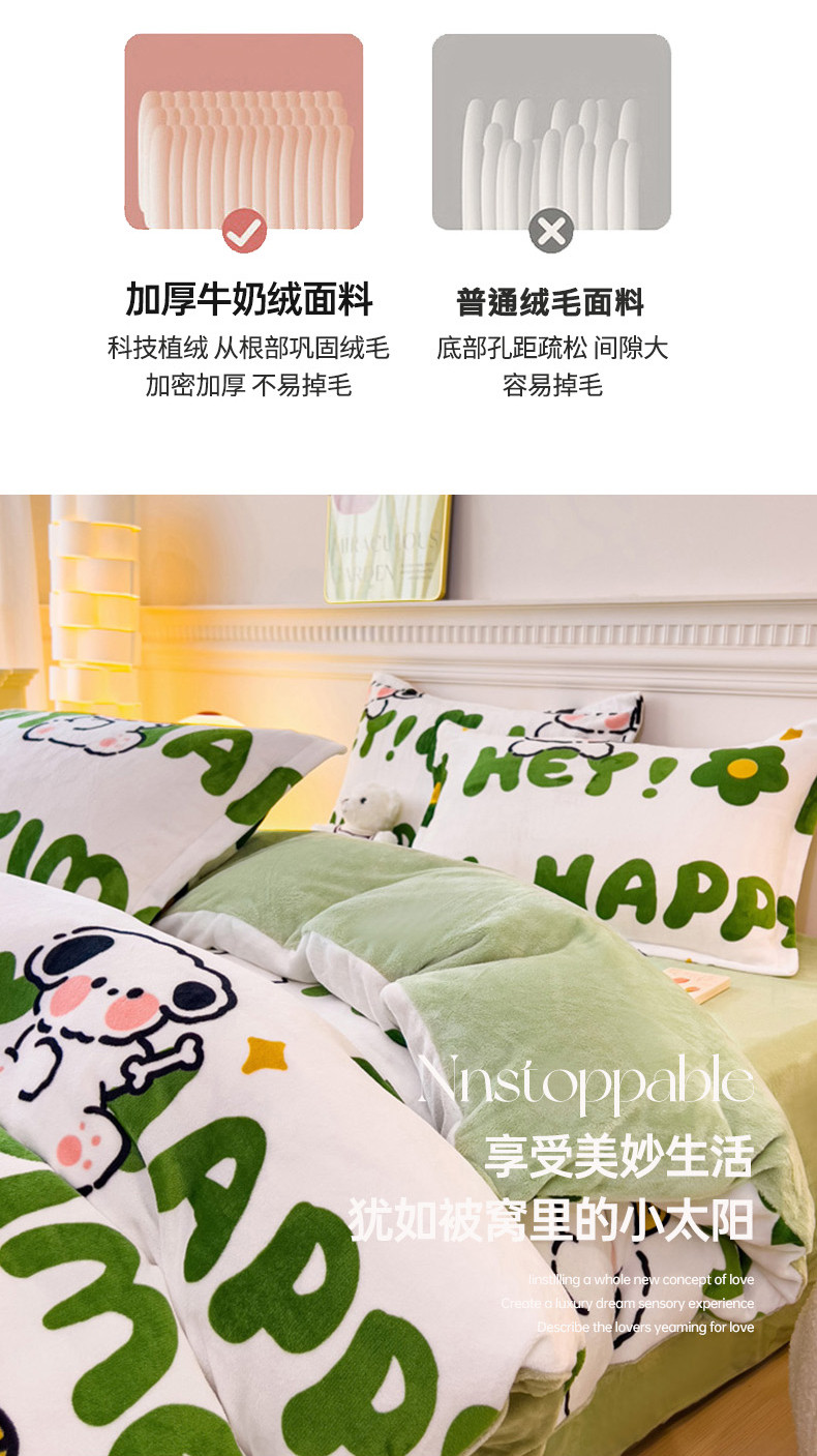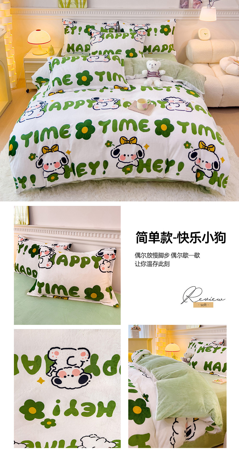 商品名称:宜家坊 2023新款小清新加厚印花牛奶绒四件套 简单款-快乐小狗