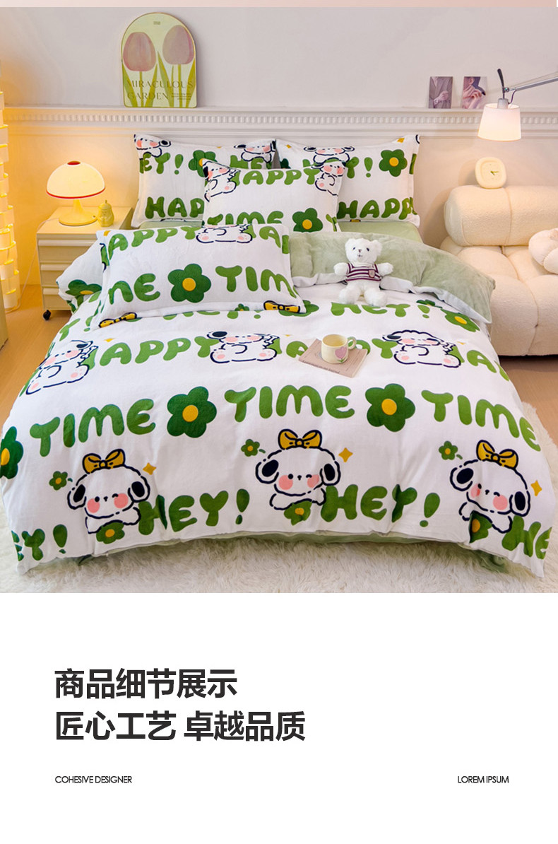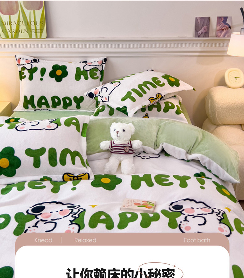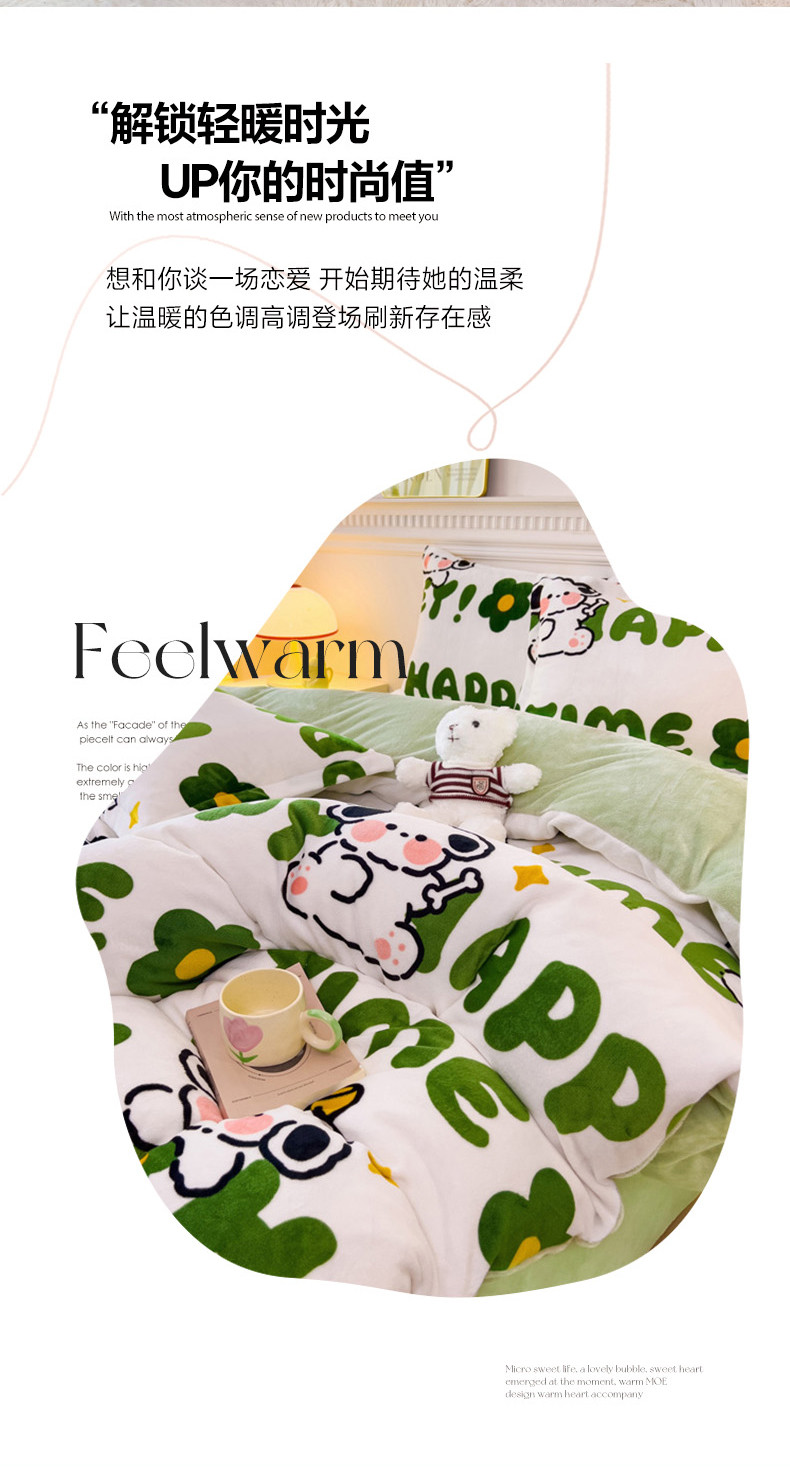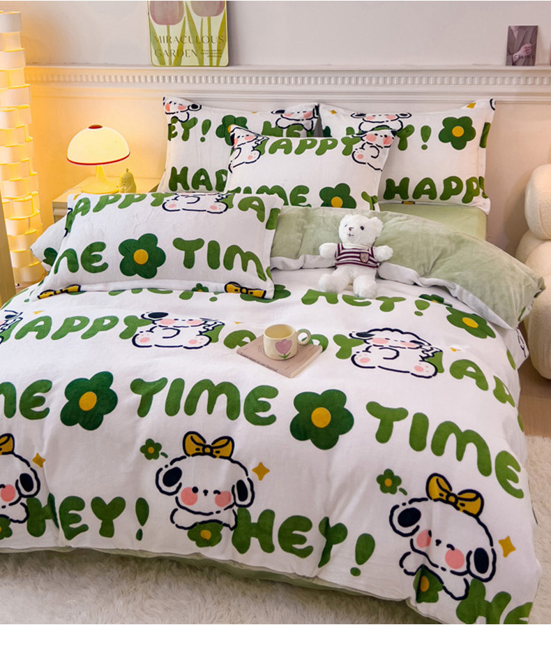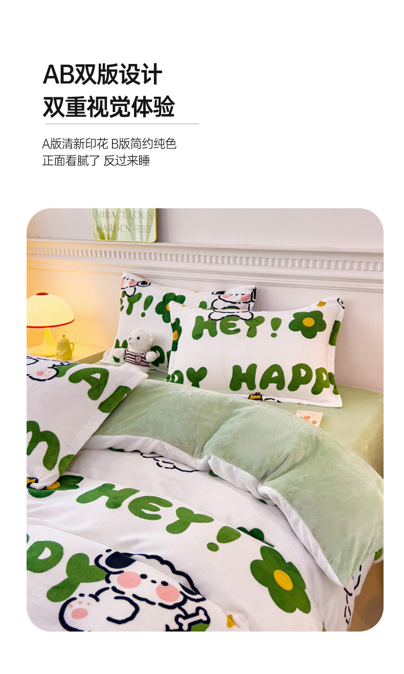 商品名称:宜家坊 2023新款小清新加厚印花牛奶绒四件套 简单款-快乐小狗