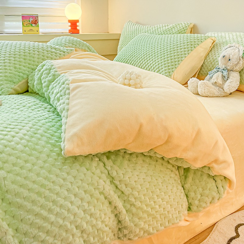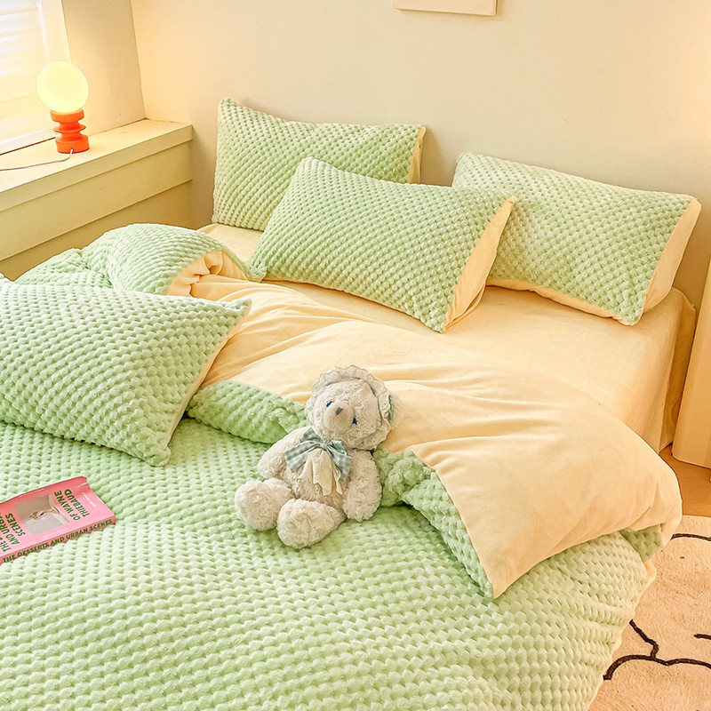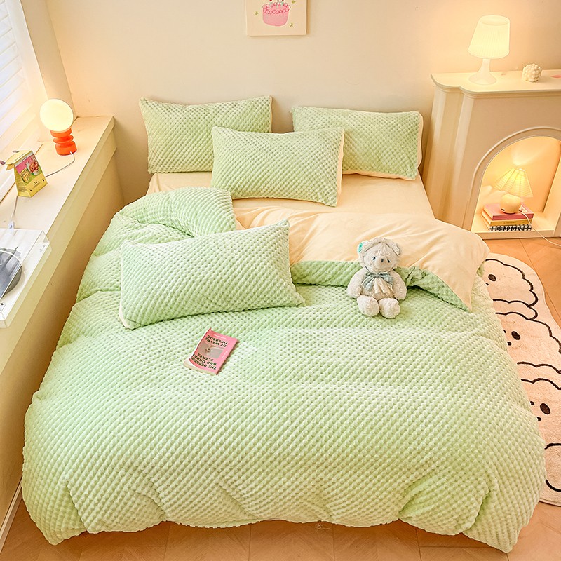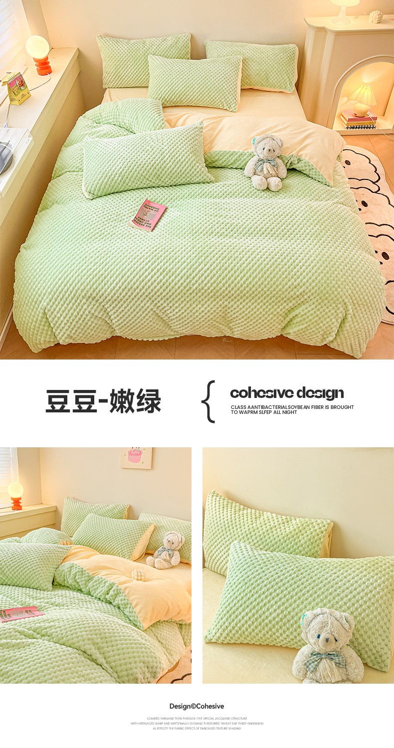 澳梵家居 2023新款印花豆豆绒牛奶绒四件套 豆豆-嫩绿