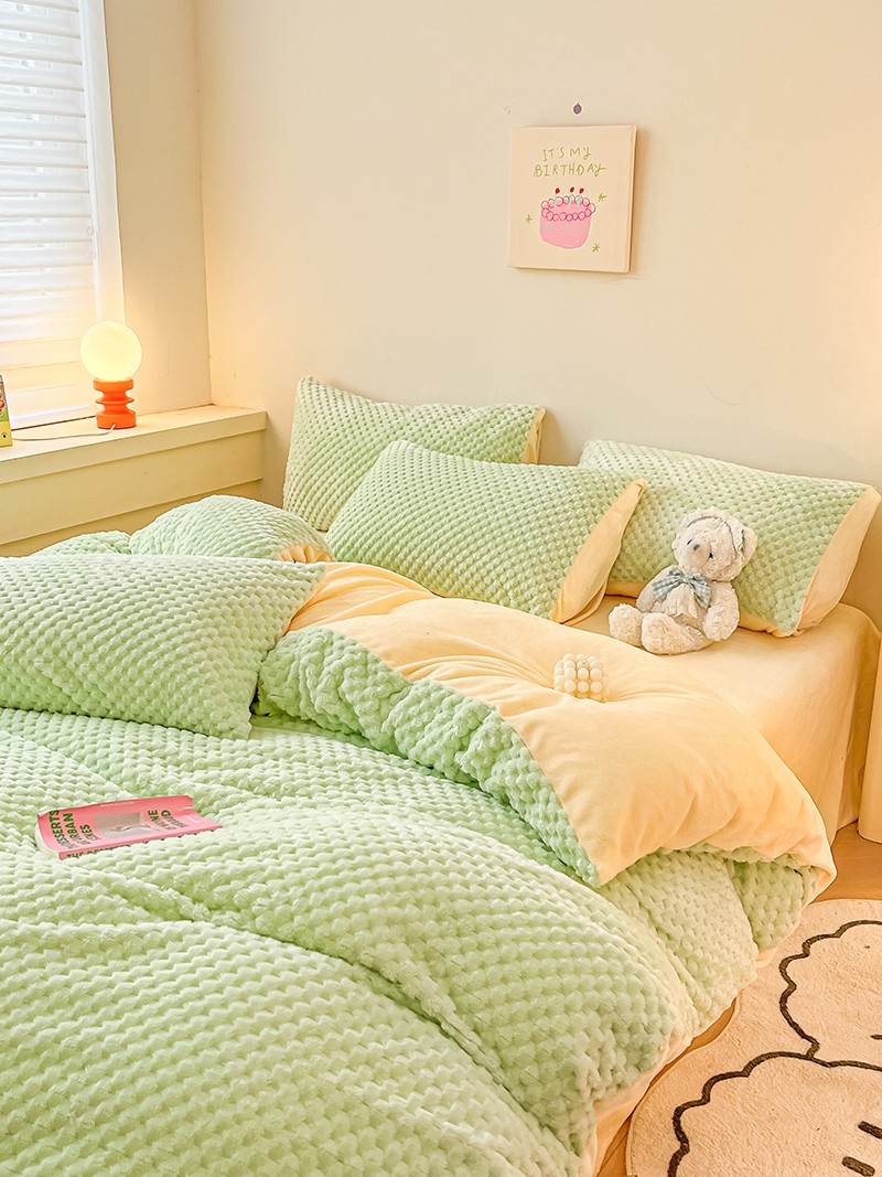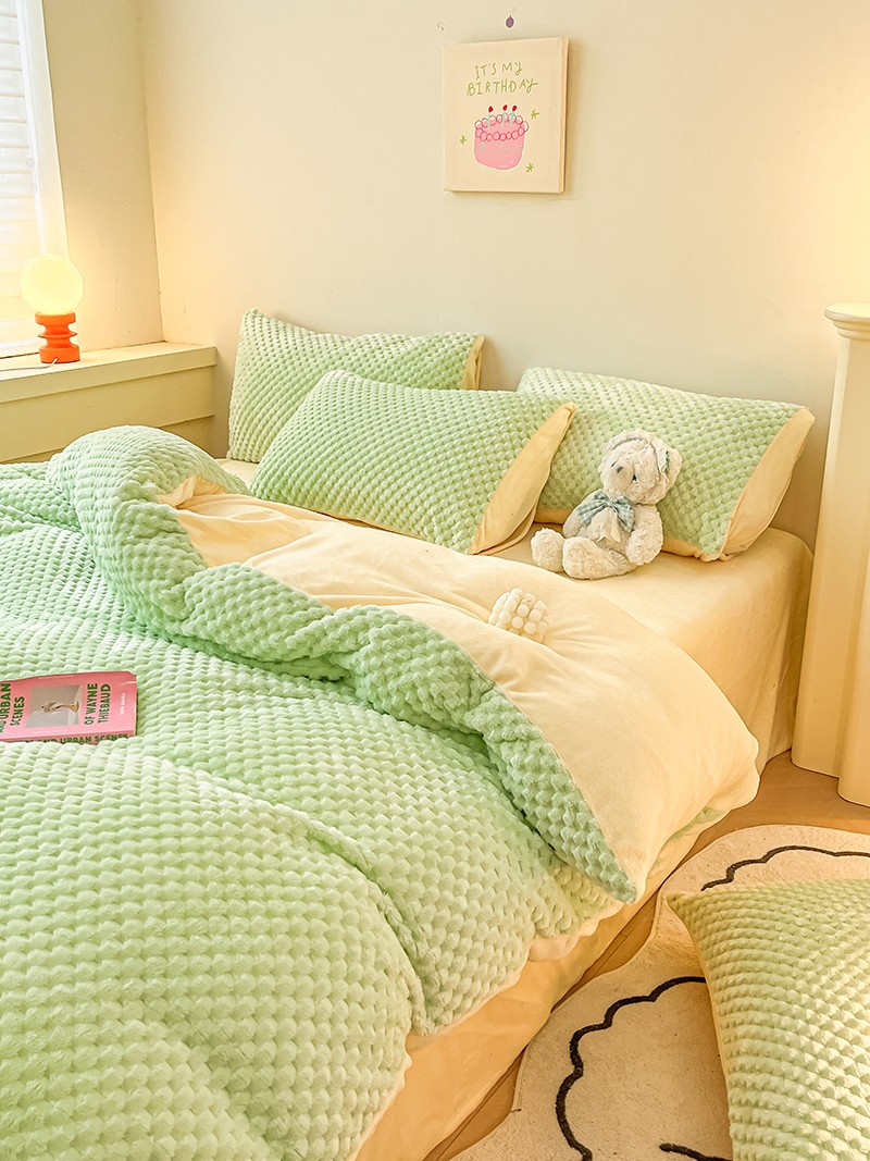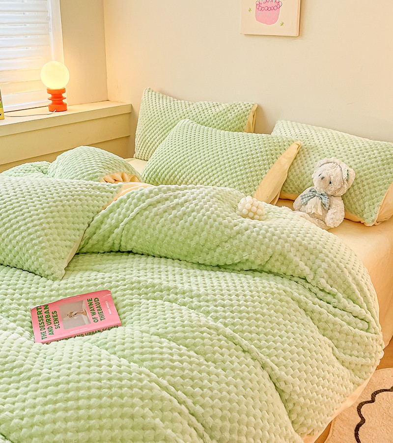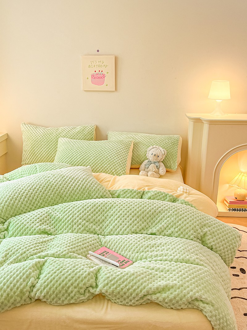 澳梵家居 2023新款印花豆豆绒牛奶绒四件套 豆豆-嫩绿