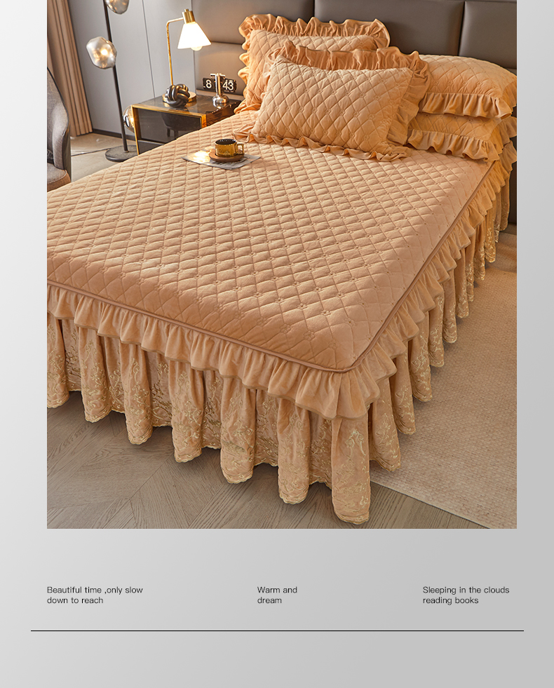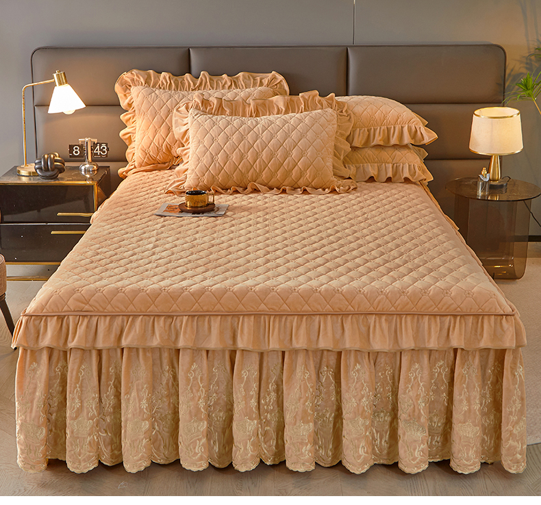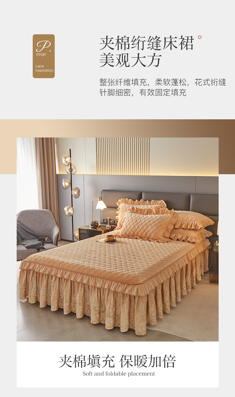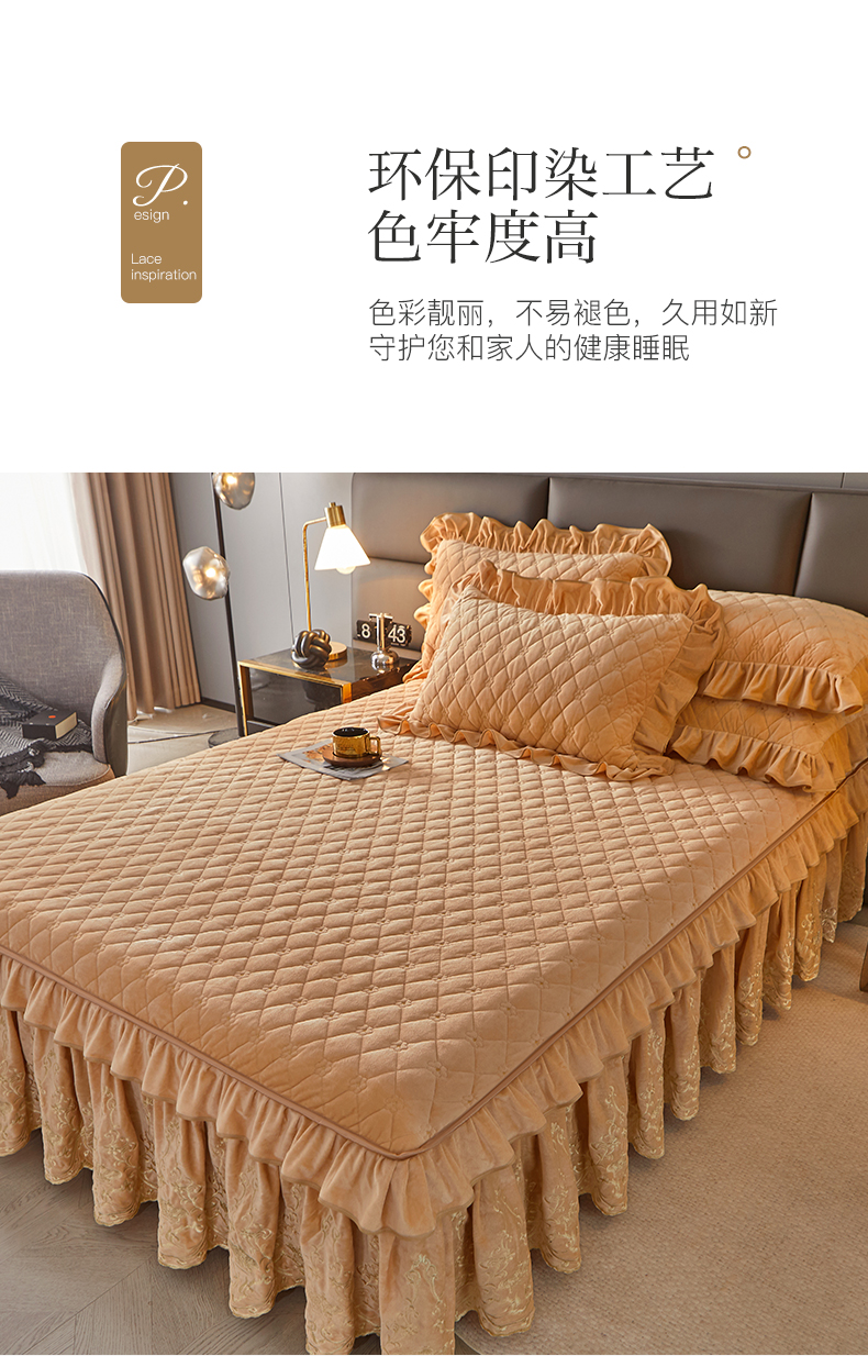当前位置: 91家纺网 > 商品网购 > 床品套件 > 三件套 > 罗艺轩 2024新款欧洲风情宝宝绒可拆卸夹棉床裙三件套 香槟金