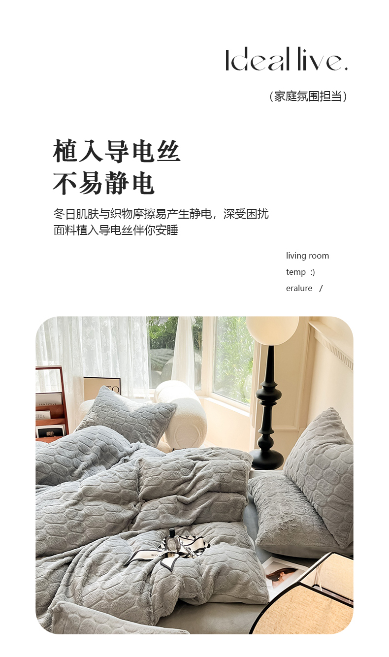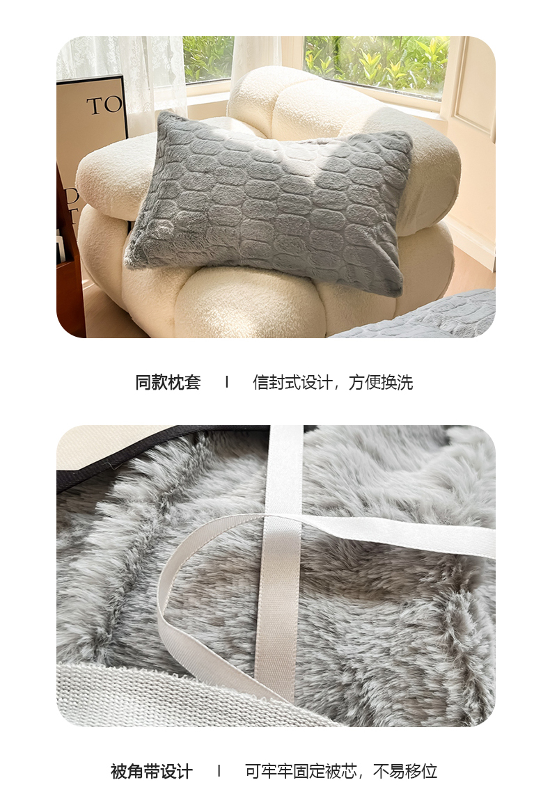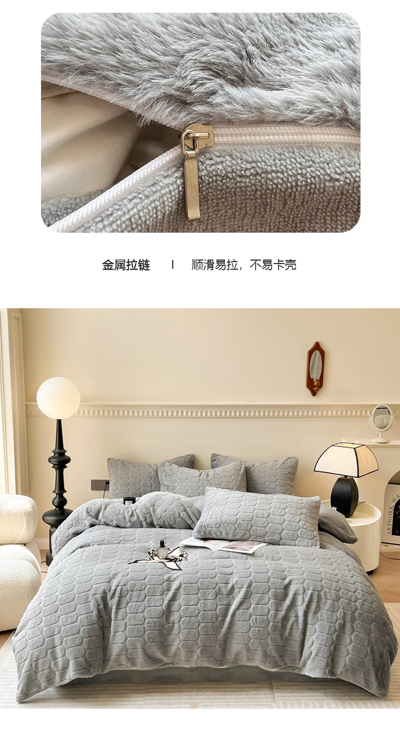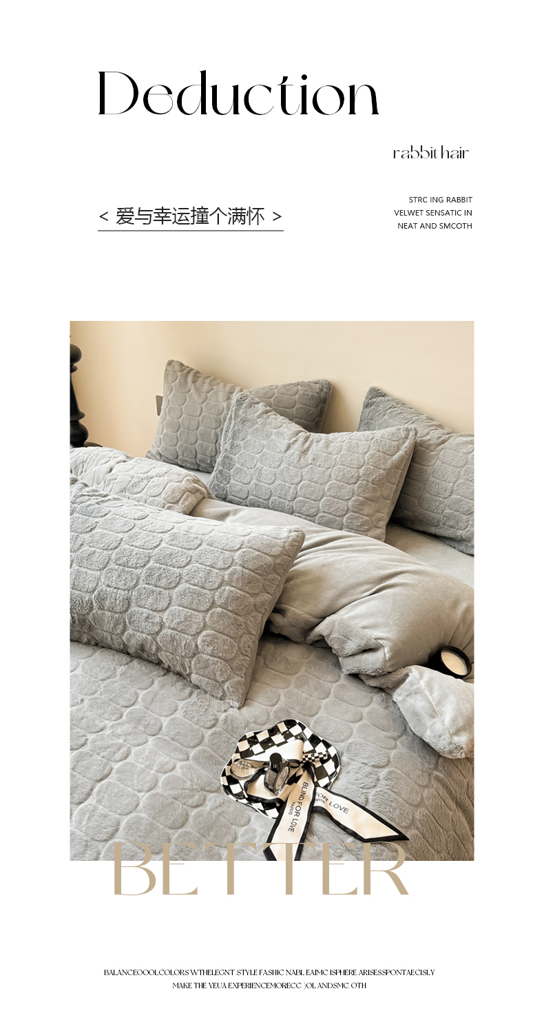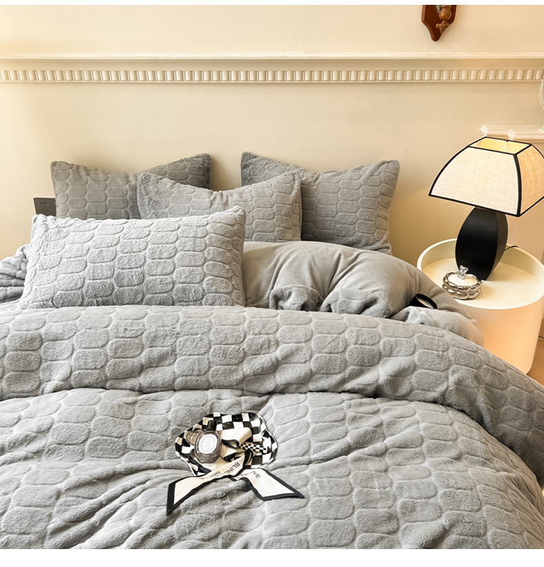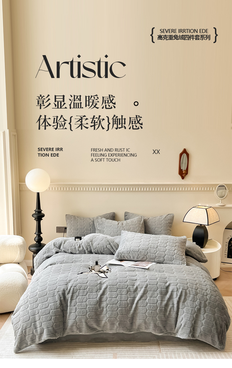商品名称:慕尚家纺 2025新款280g兔毛绒四件套-洛卡 洛卡银灰