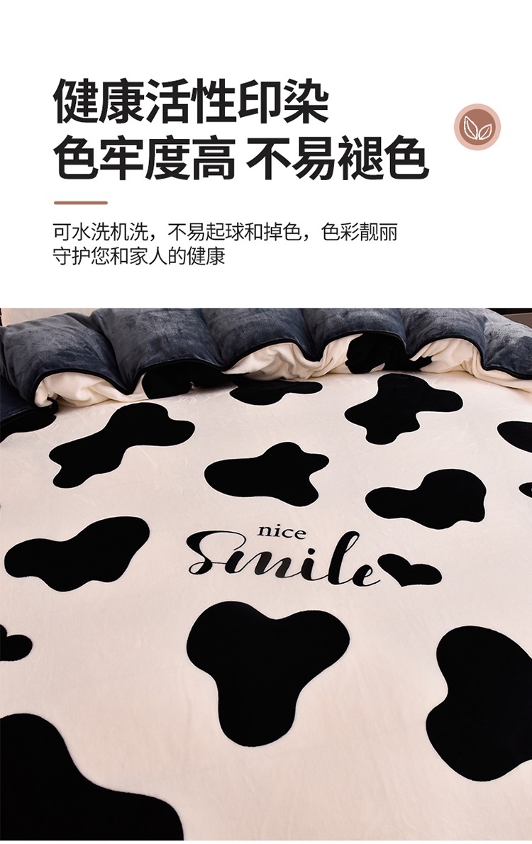盈超2023新款A类高克重印花牛奶绒金貂绒床裙款保暖绒四件套 时尚奶牛